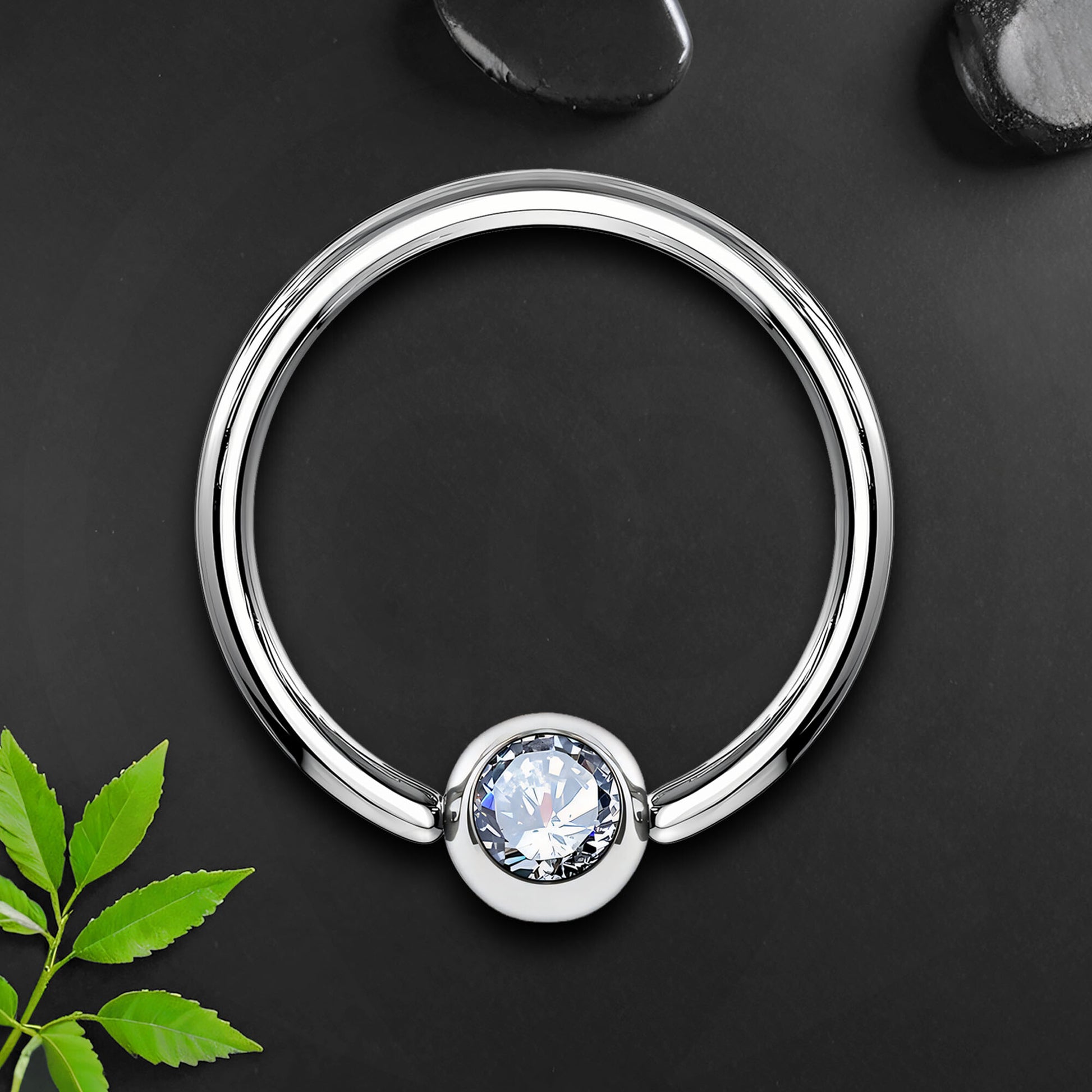 Titanium Captive Bead Ring in Classic Style with Zirconia