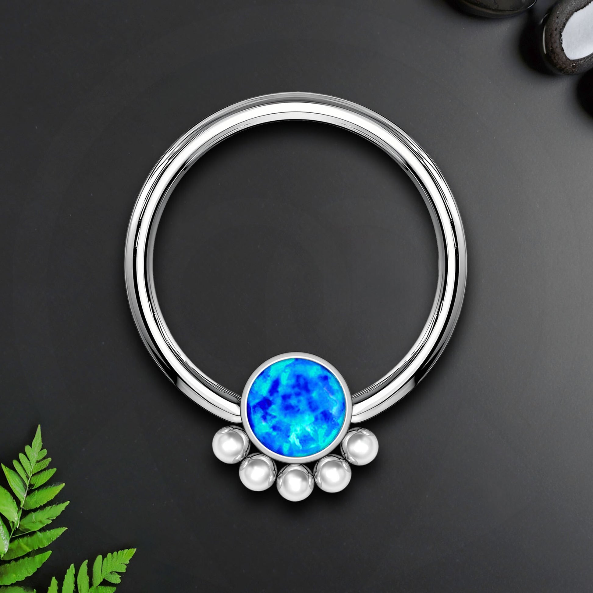 Premium materials like titanium, surgical steel, gold and platinum plating, Swarovski crystals, cubic zirconias, and natural opals.