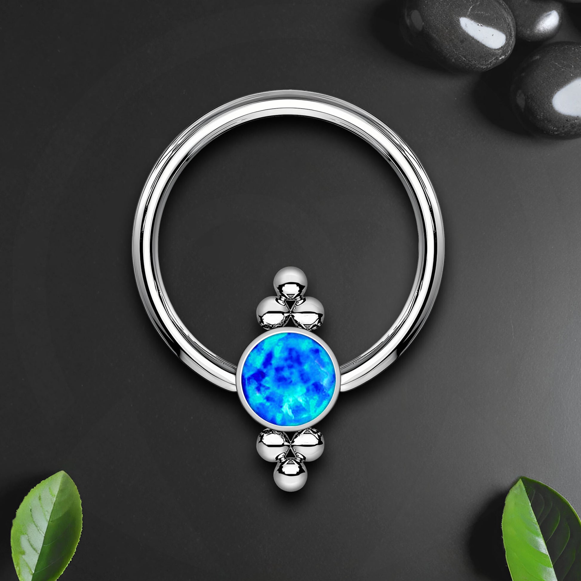 Titanium Captive Bead Ring with Blue Opal and Six Beads