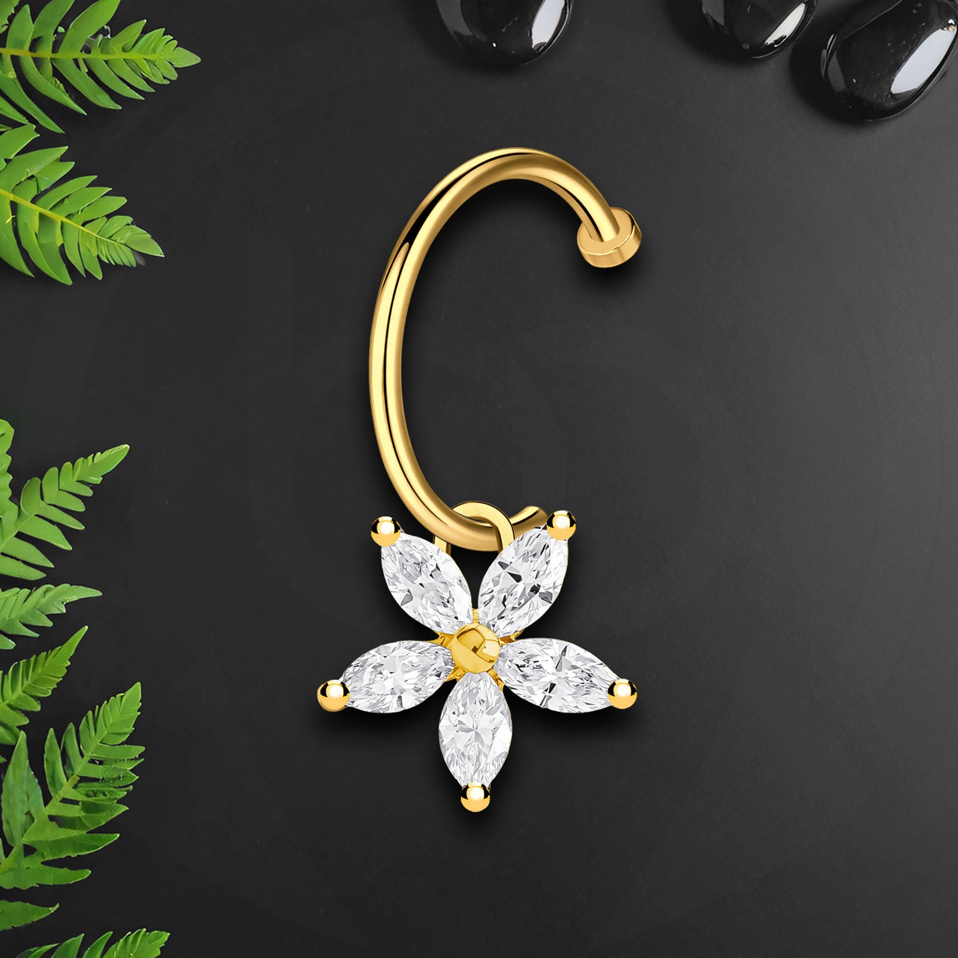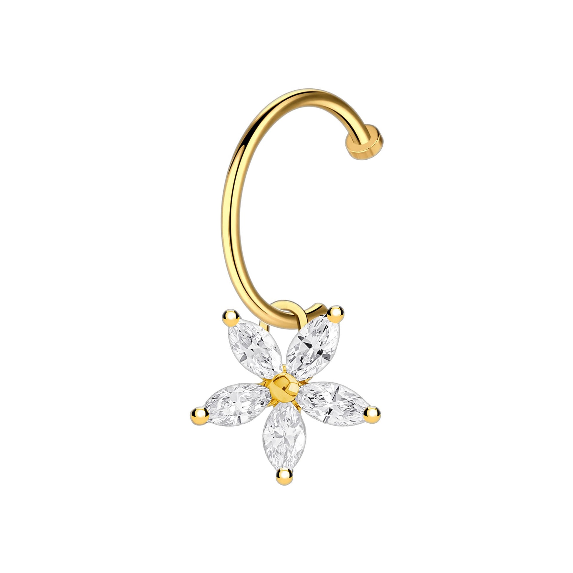 Surgical Steel Fake Lip Ring with Flower Dangle and CZ