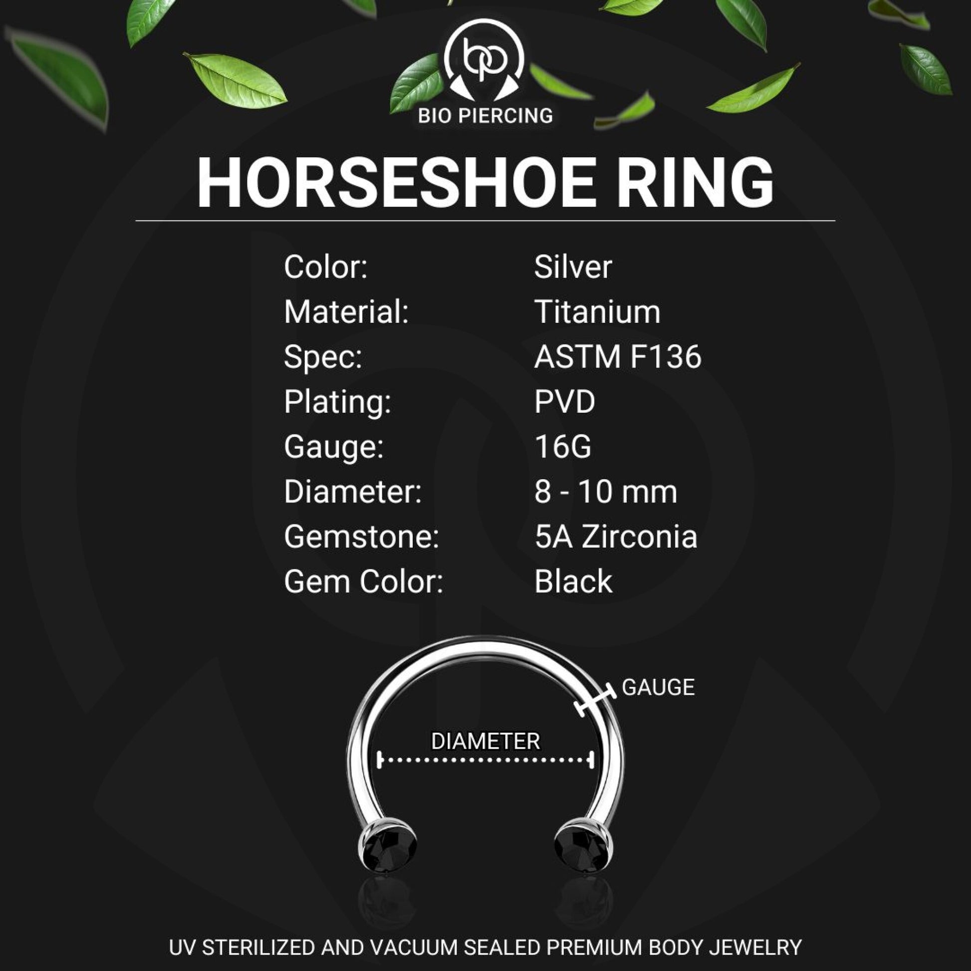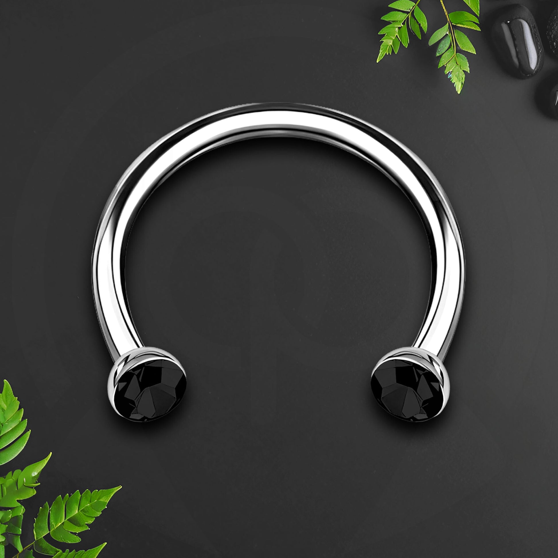 Titanium Horseshoe Ring with Black Crystals