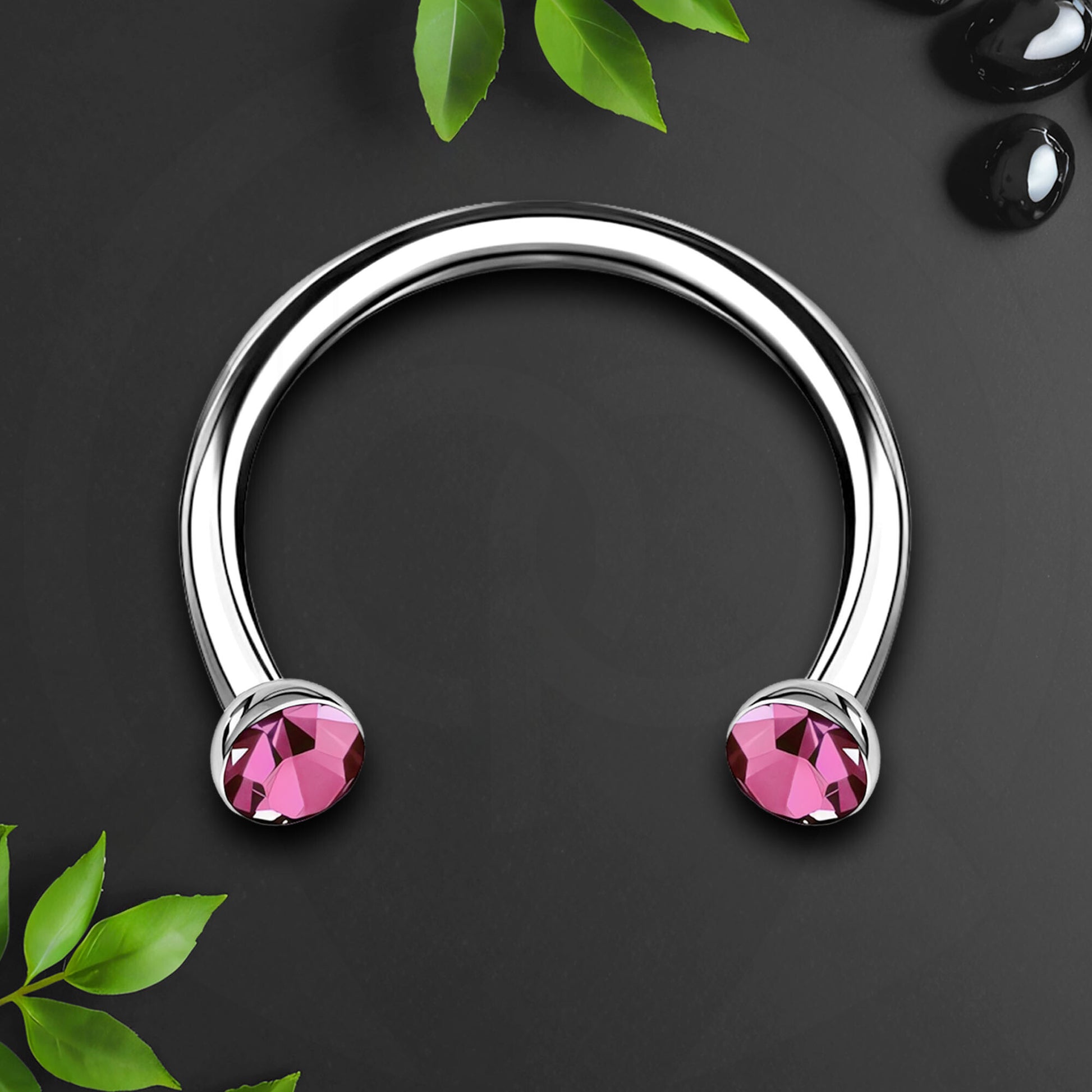 Premium materials like titanium, surgical steel, gold and platinum plating, Swarovski crystals, cubic zirconias, and natural opals.