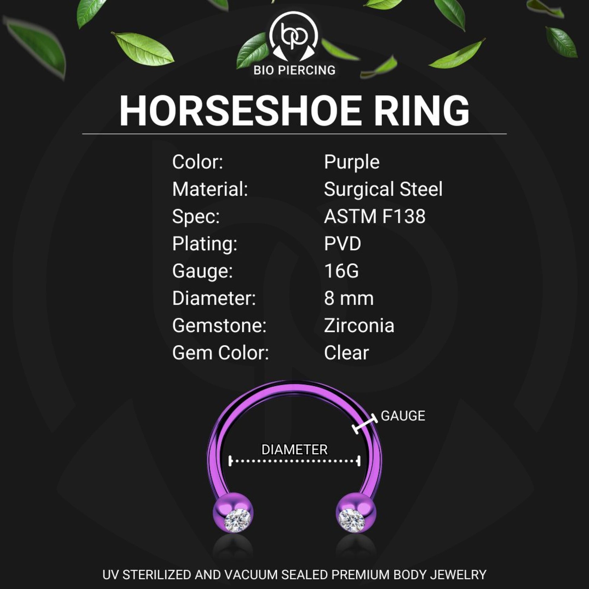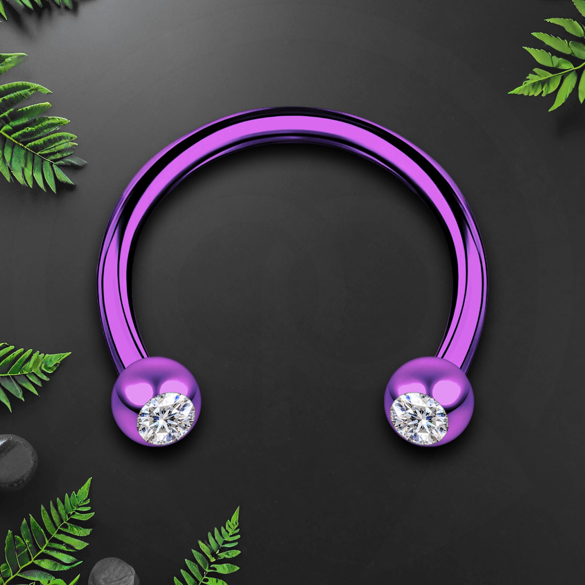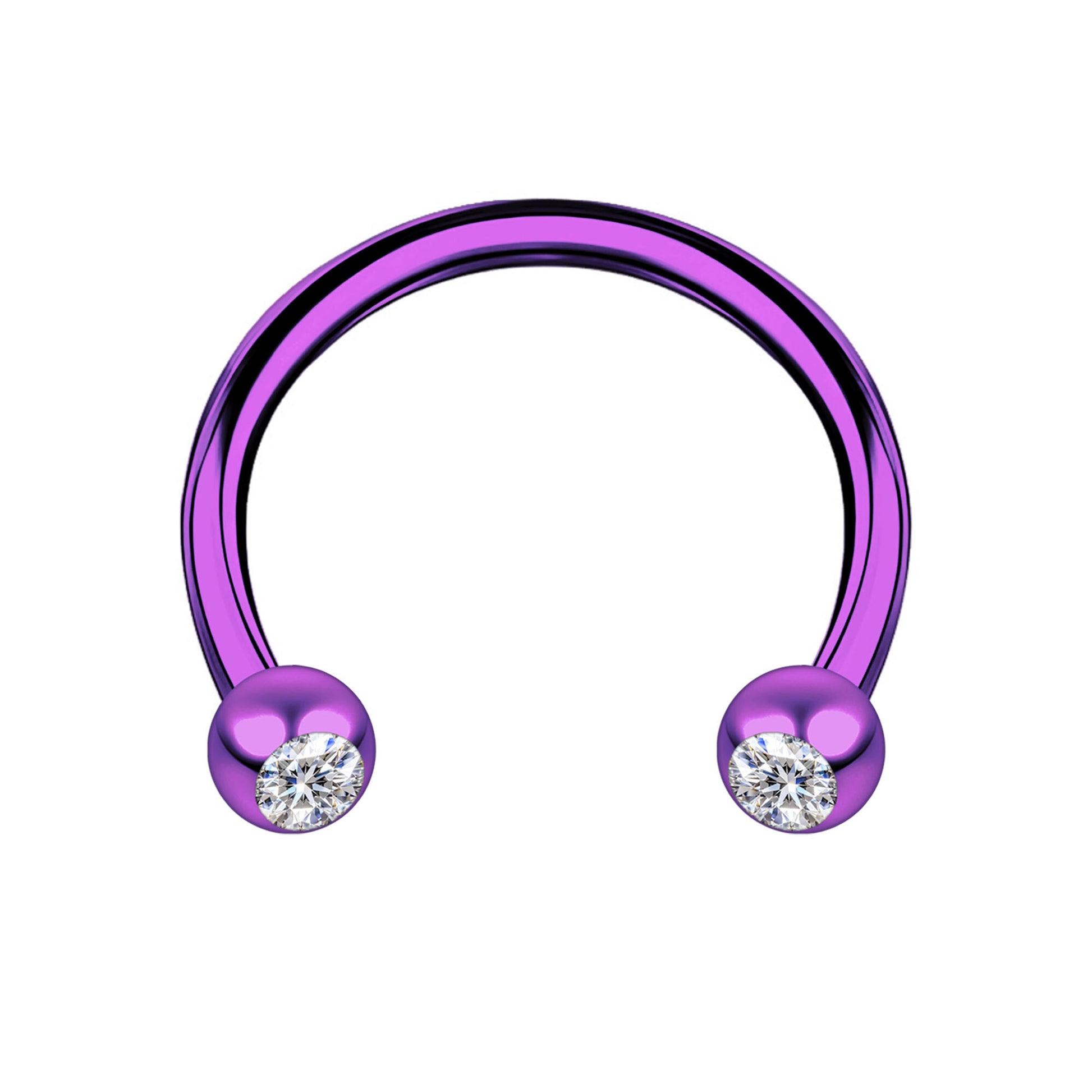 Surgical Steel Horseshoe Ring in Purple with Clear CZ