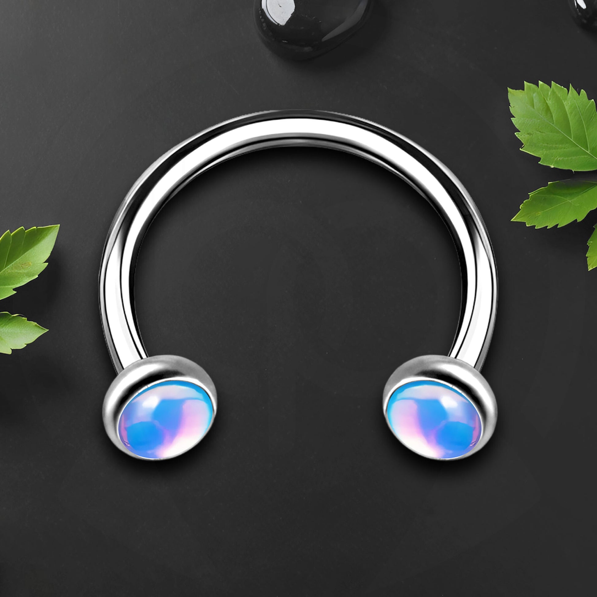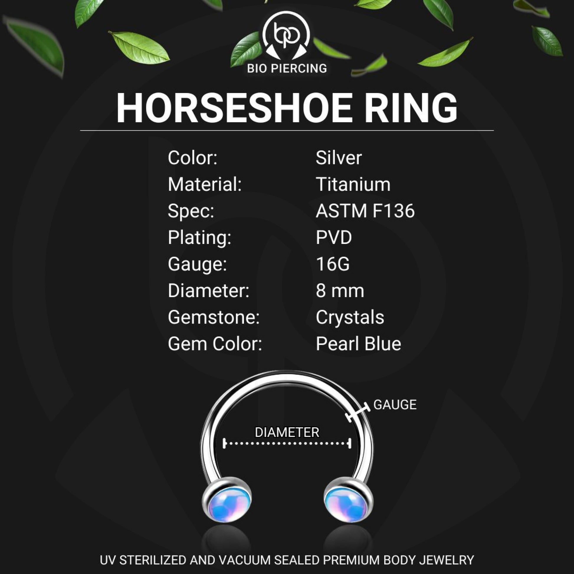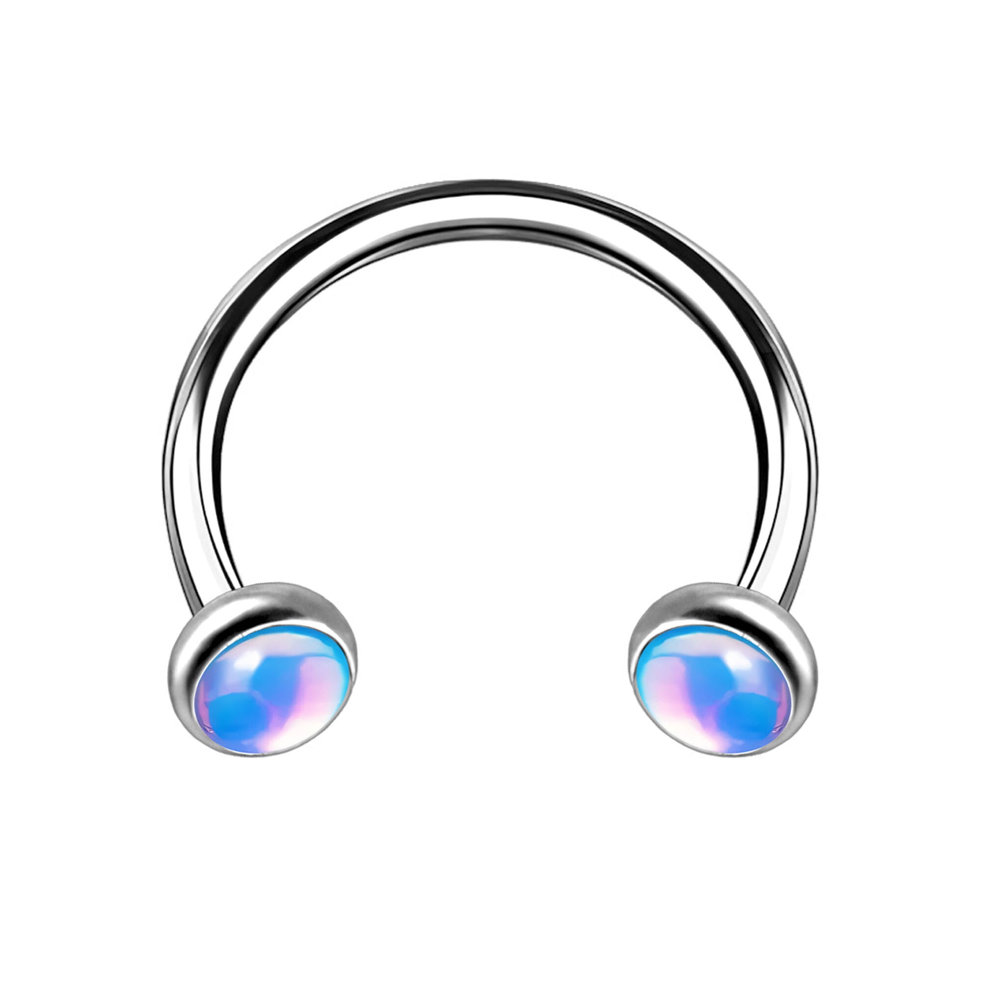 Titanium Horseshoe Ring with Blue Glow Gemstone