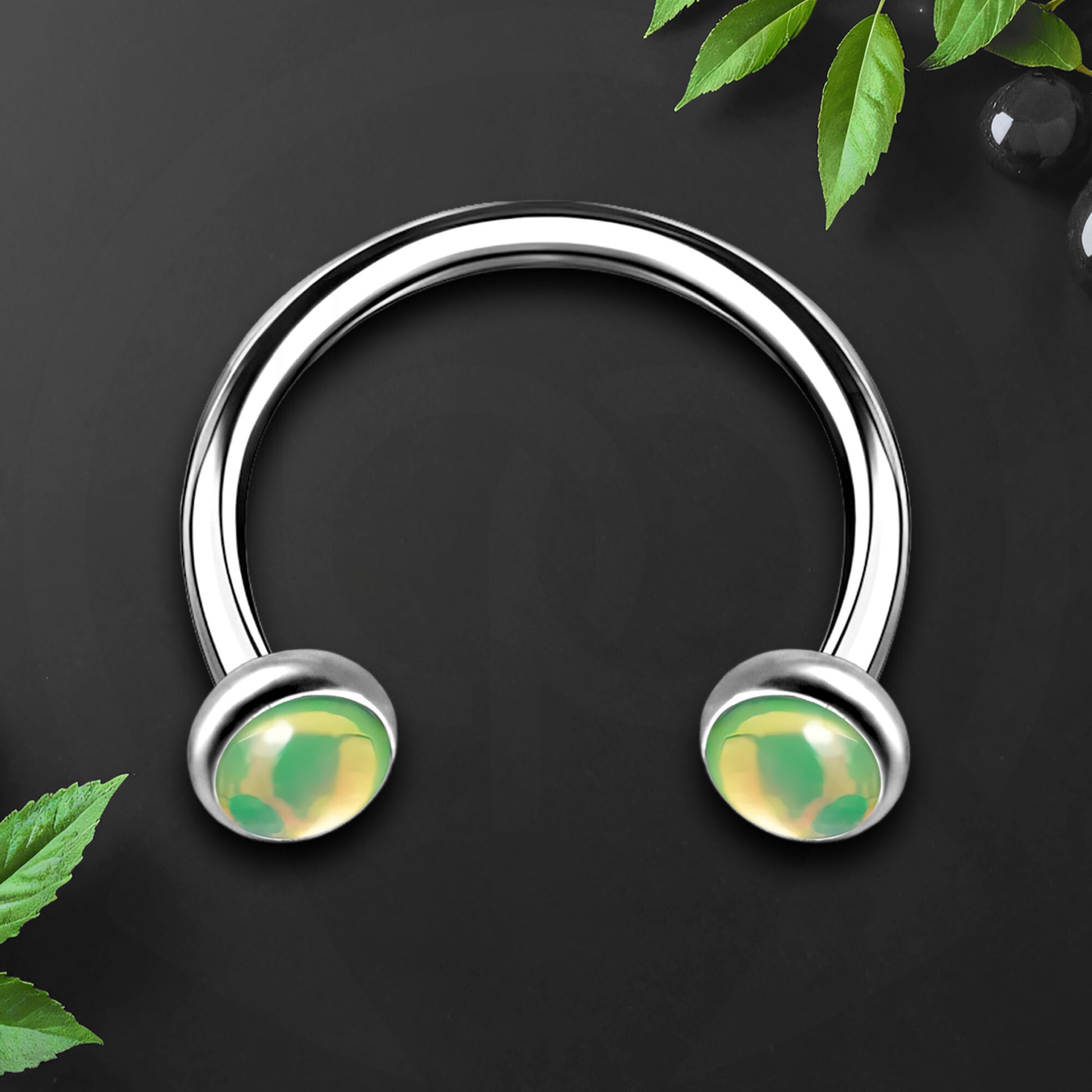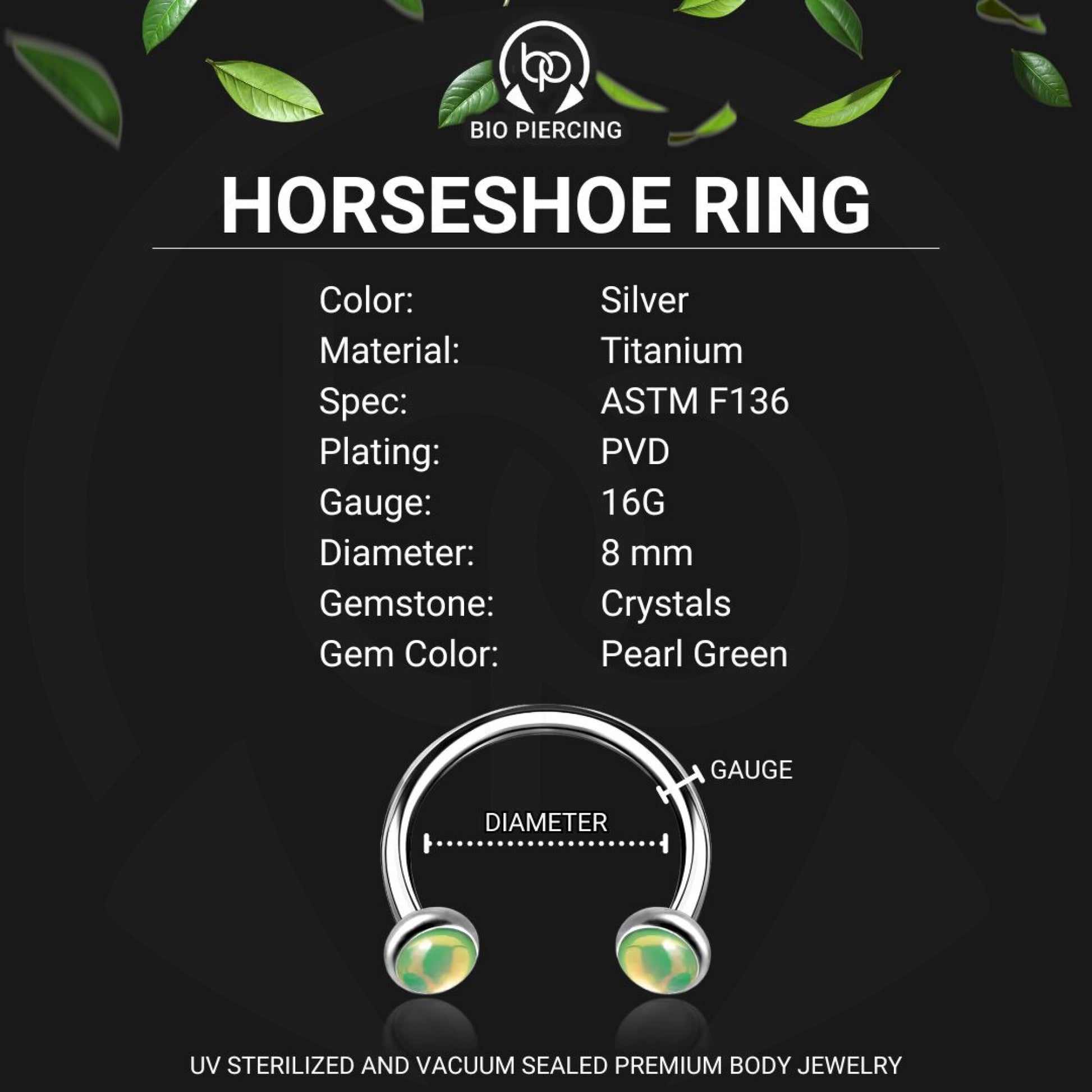 Titanium Horseshoe Ring with Green Glow Gemstone