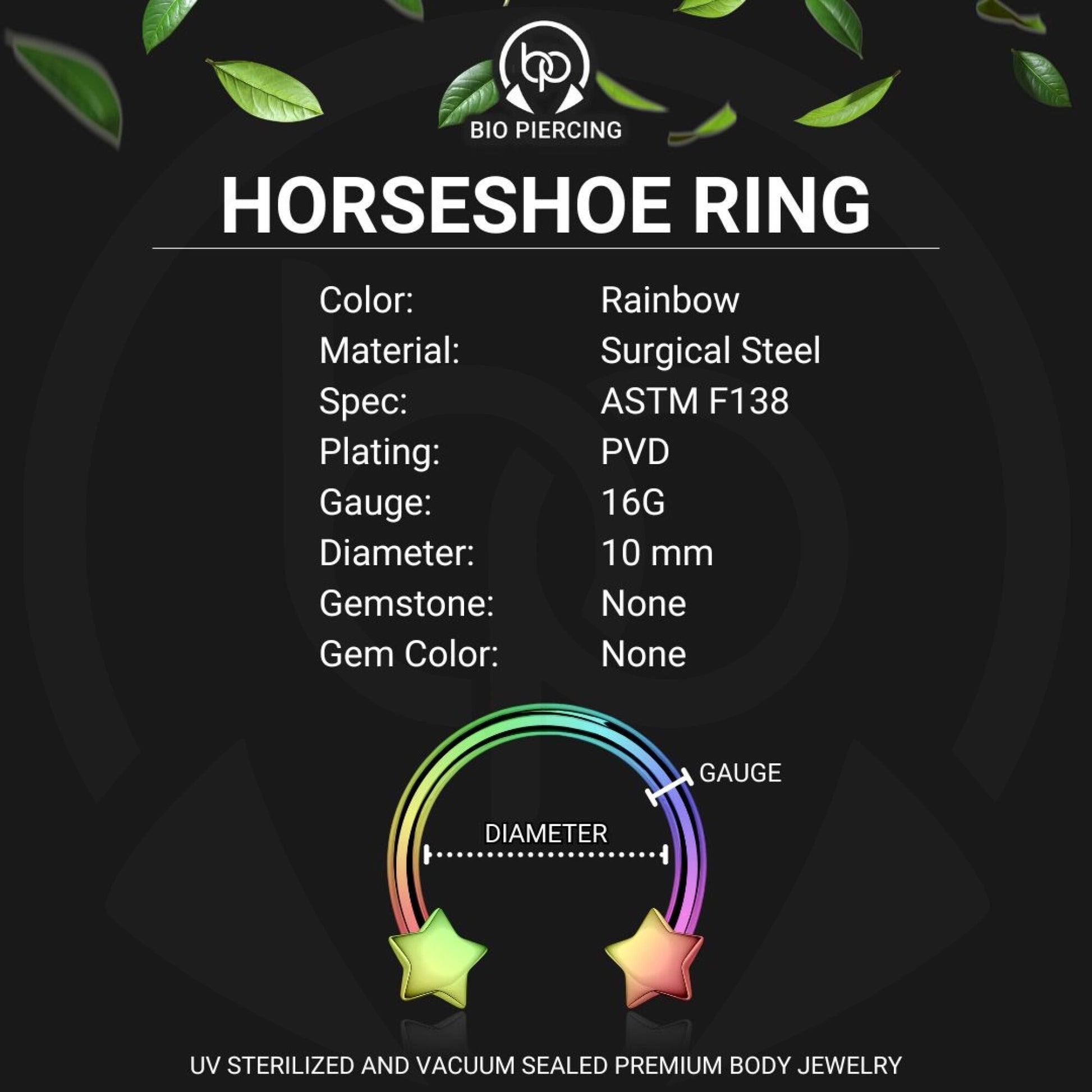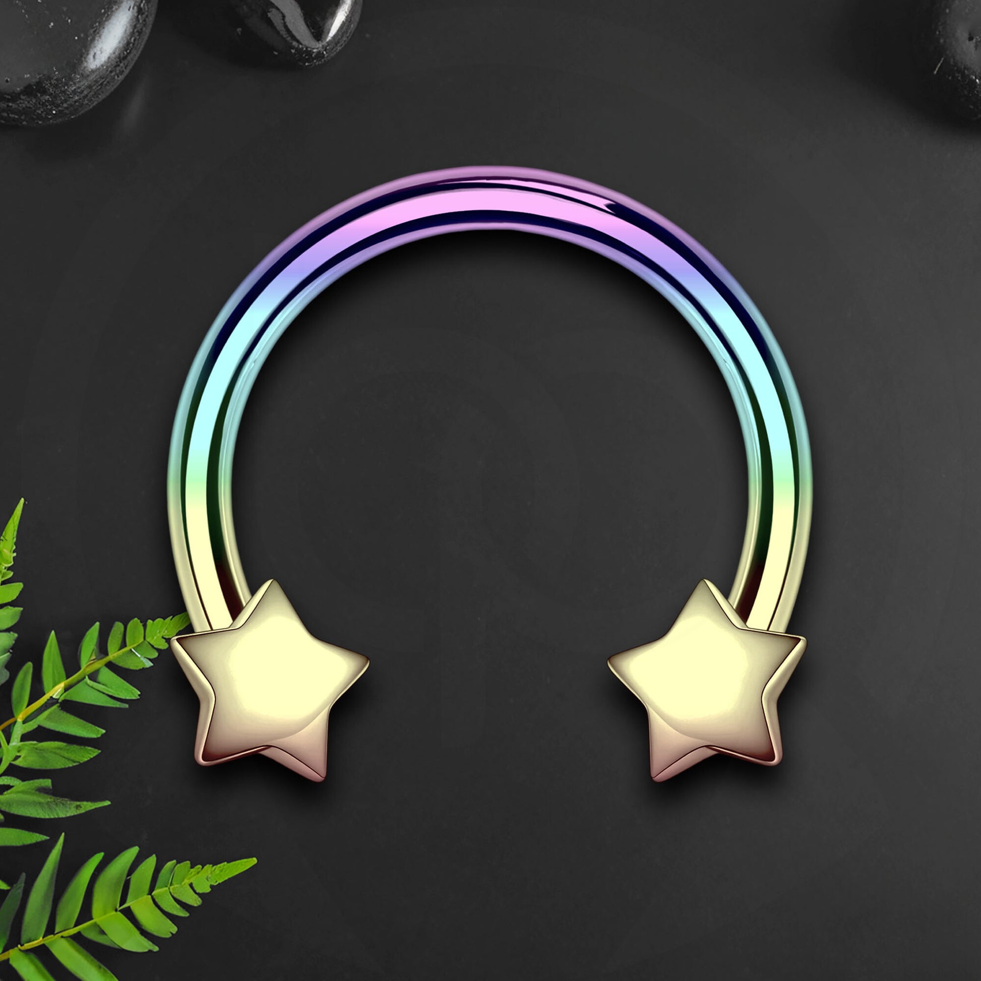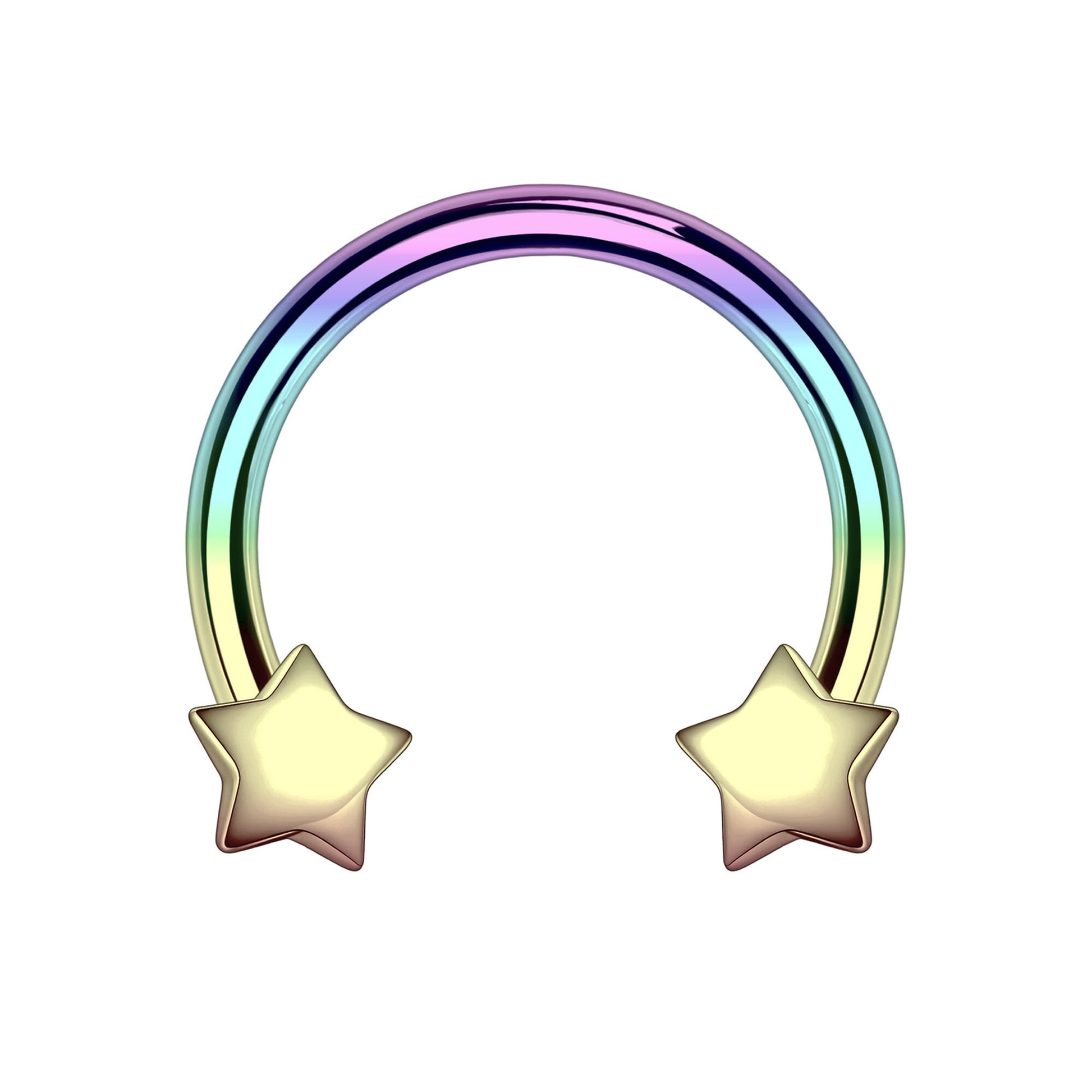 Surgical Steel Horseshoe Ring with Rainbow Stars