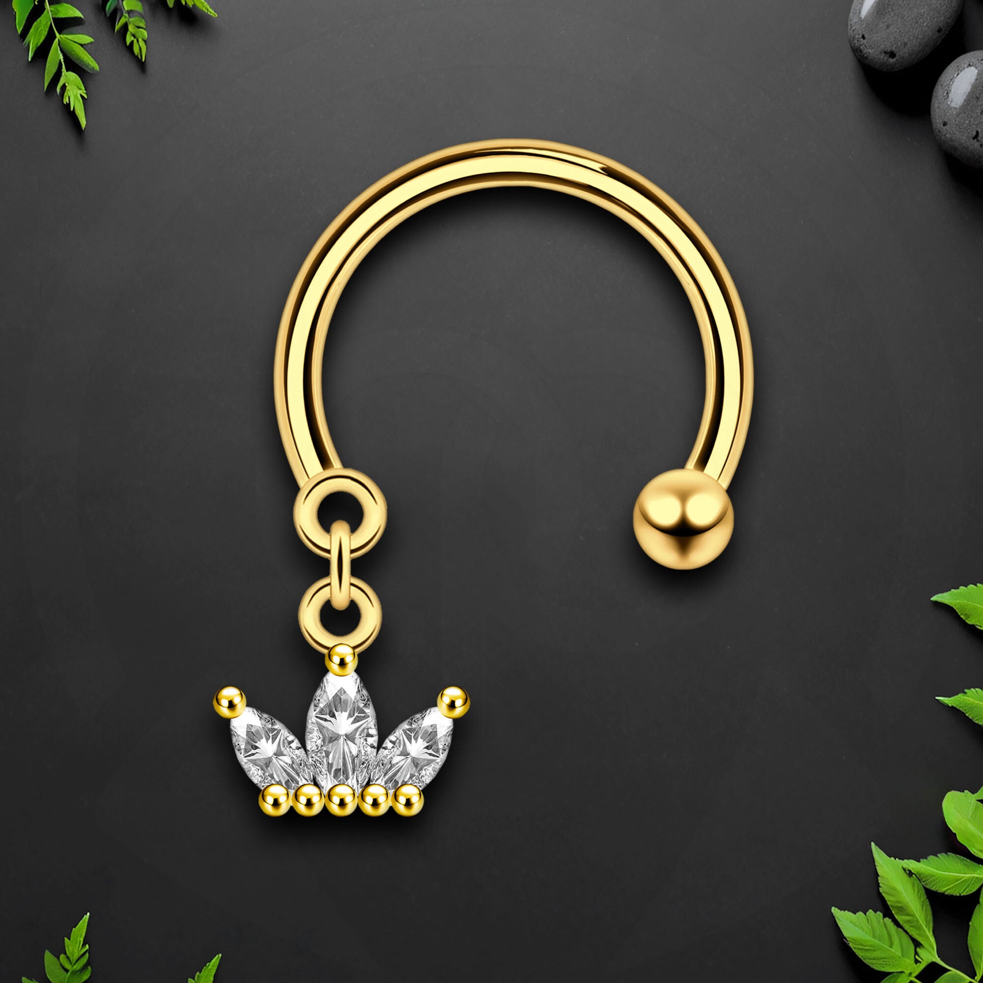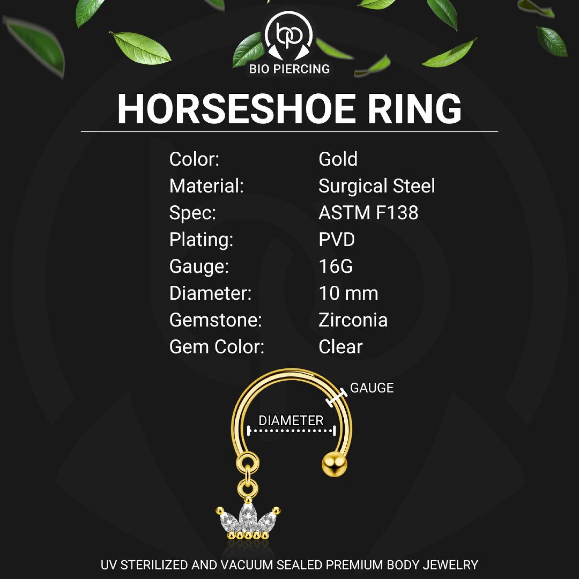 Surgical Steel Horseshoe Ring with Crown Dangle