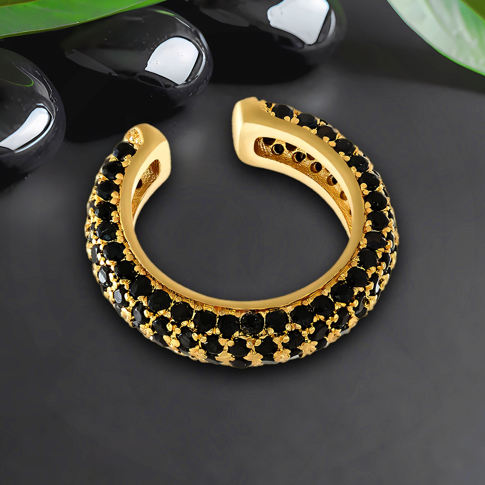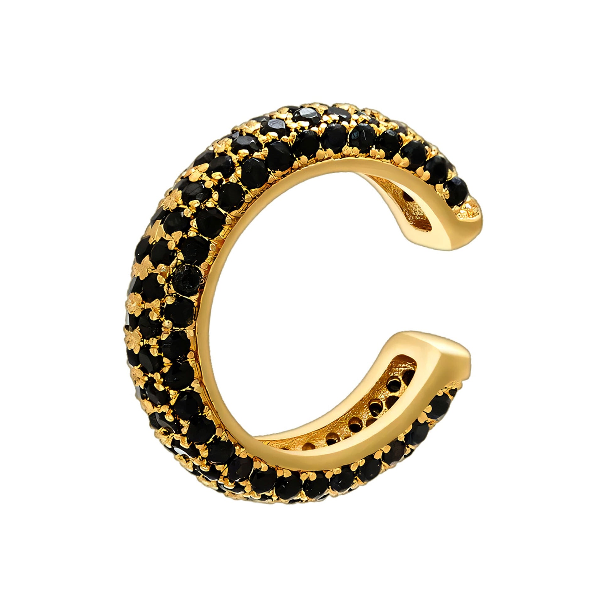 Gold Plated Ear Cuff in Thick Style with Black CZ