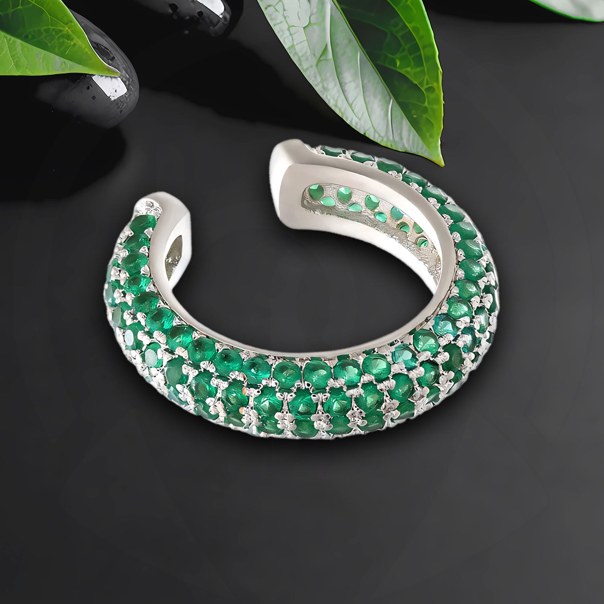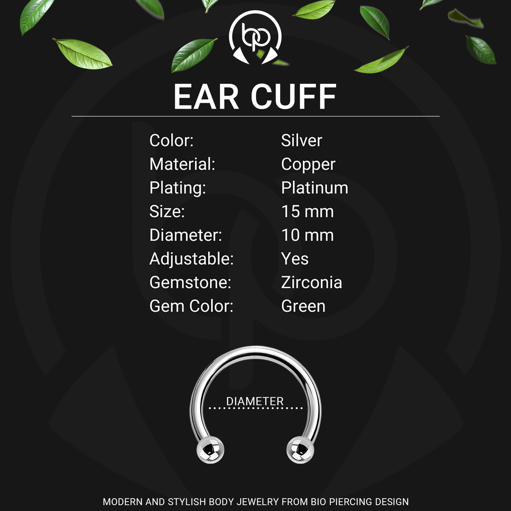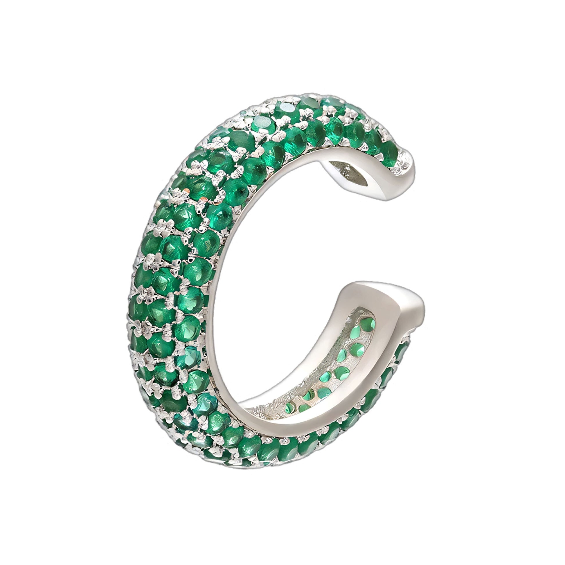 Platinum Plated Ear Cuff in Thick Style with Green CZ