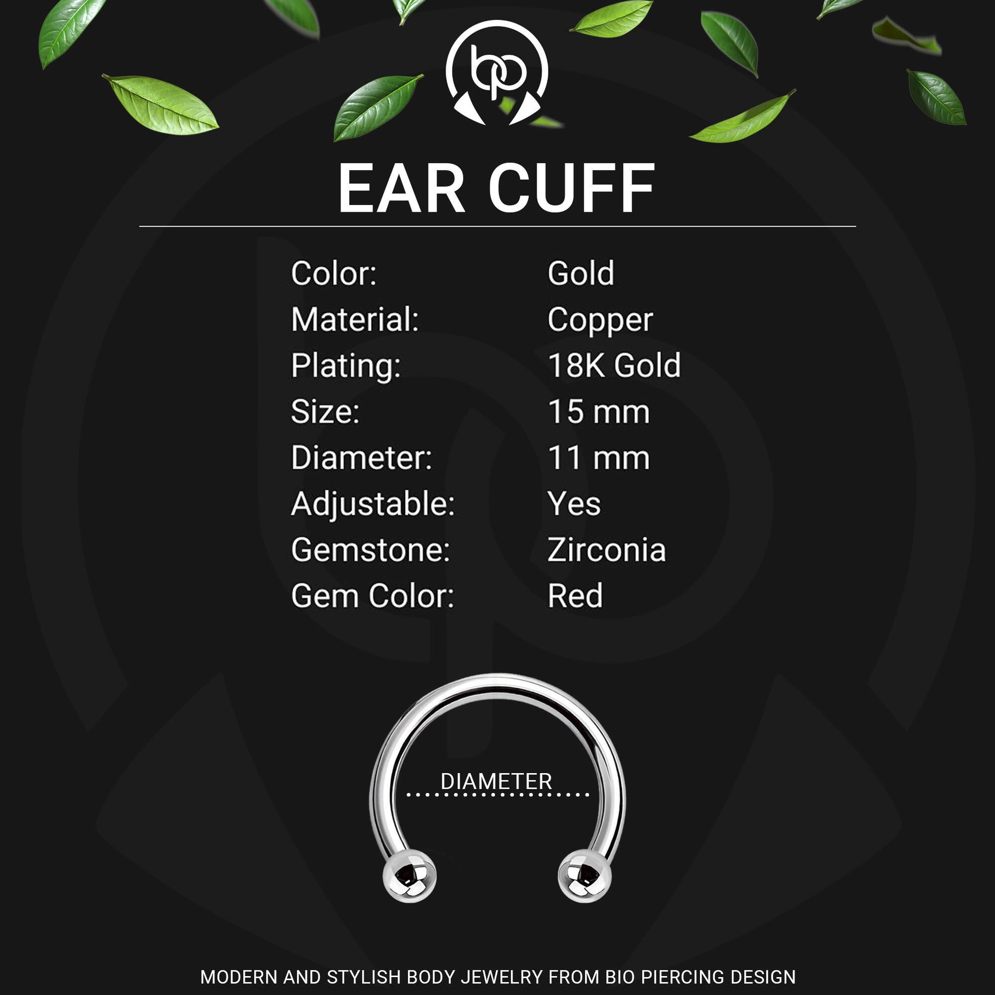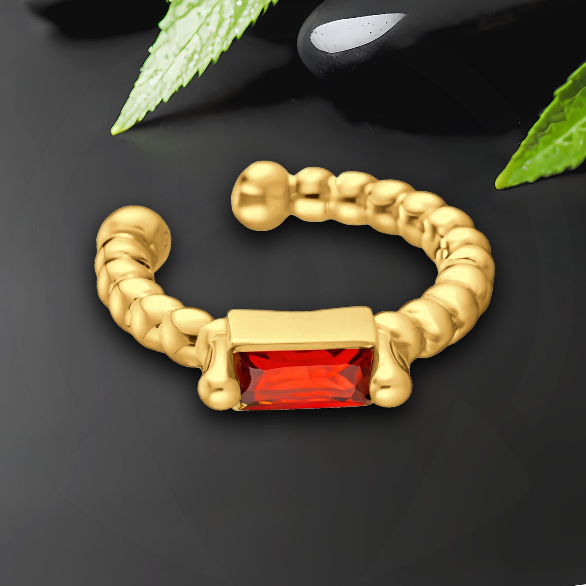 Gold Plated Ear Cuff with Red Zirconia