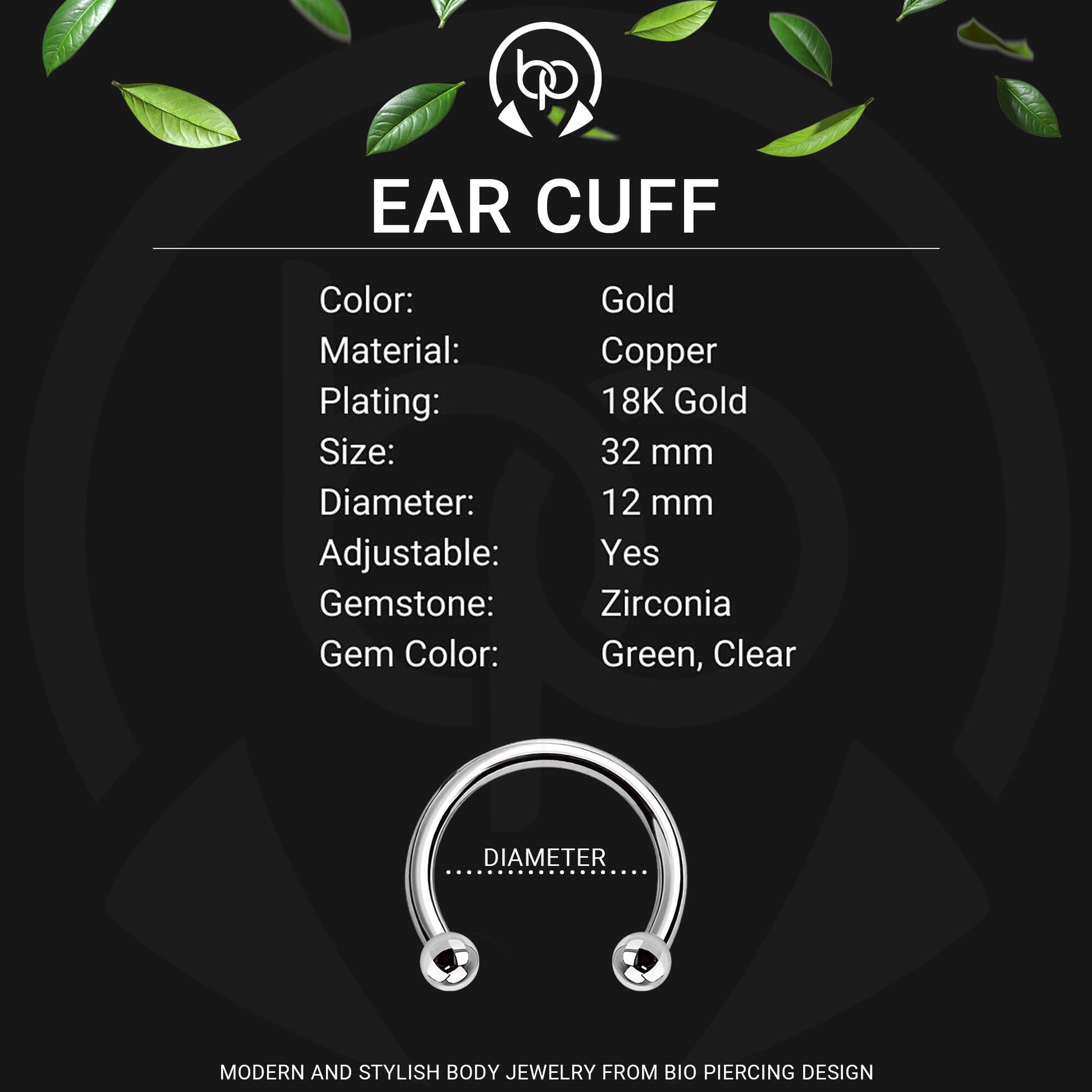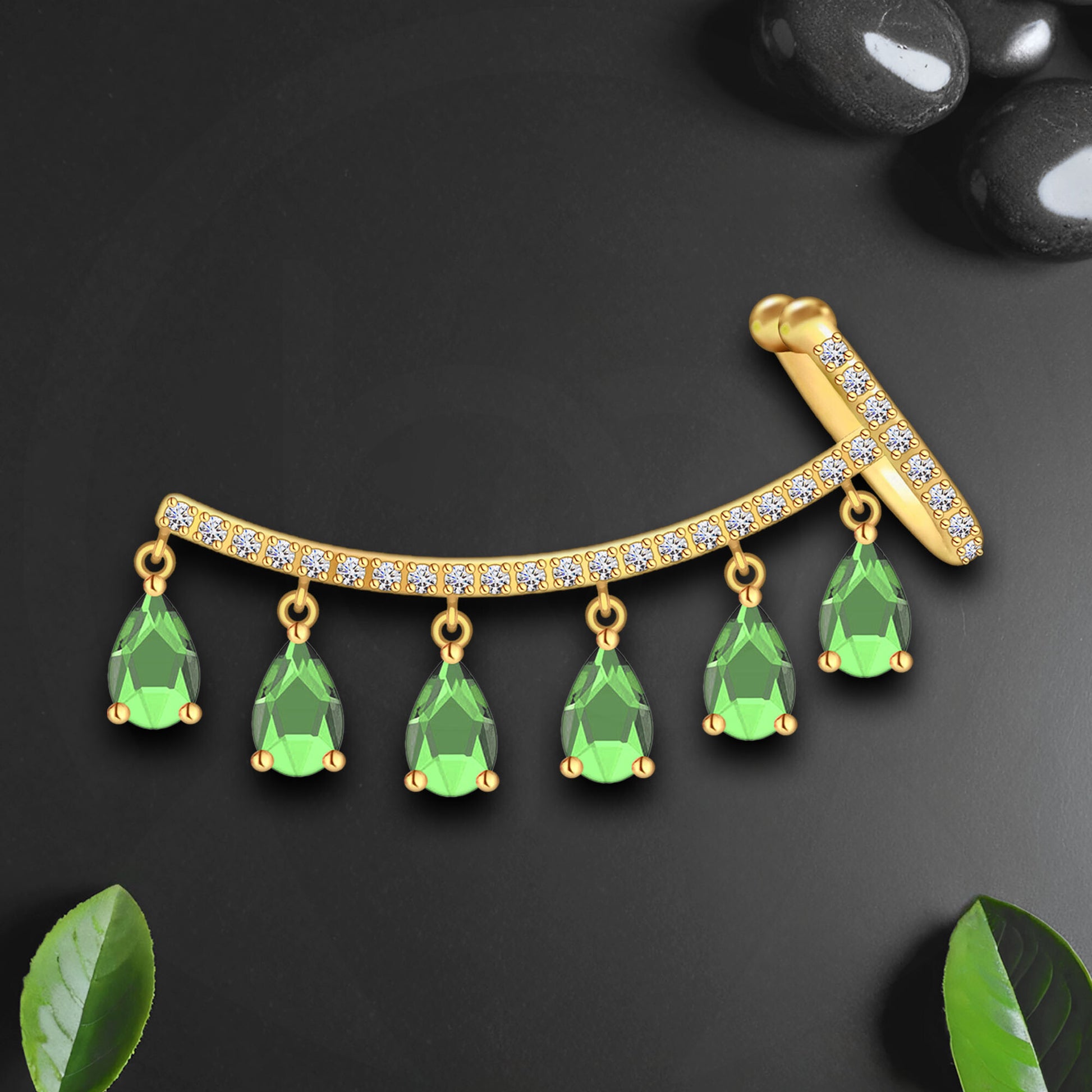 Gold Plated Ear Cuff Ear Crawler with Green CZ