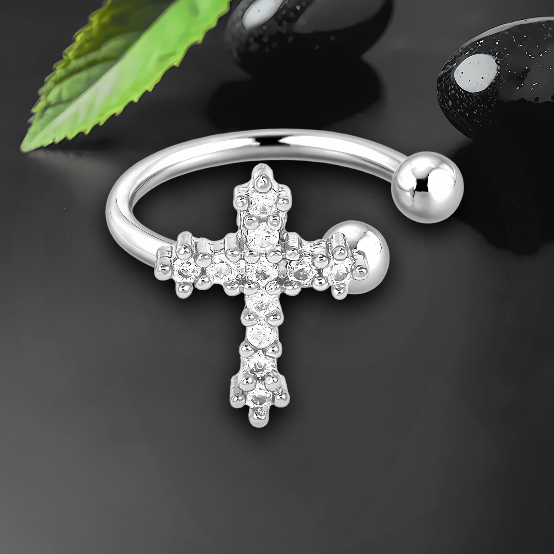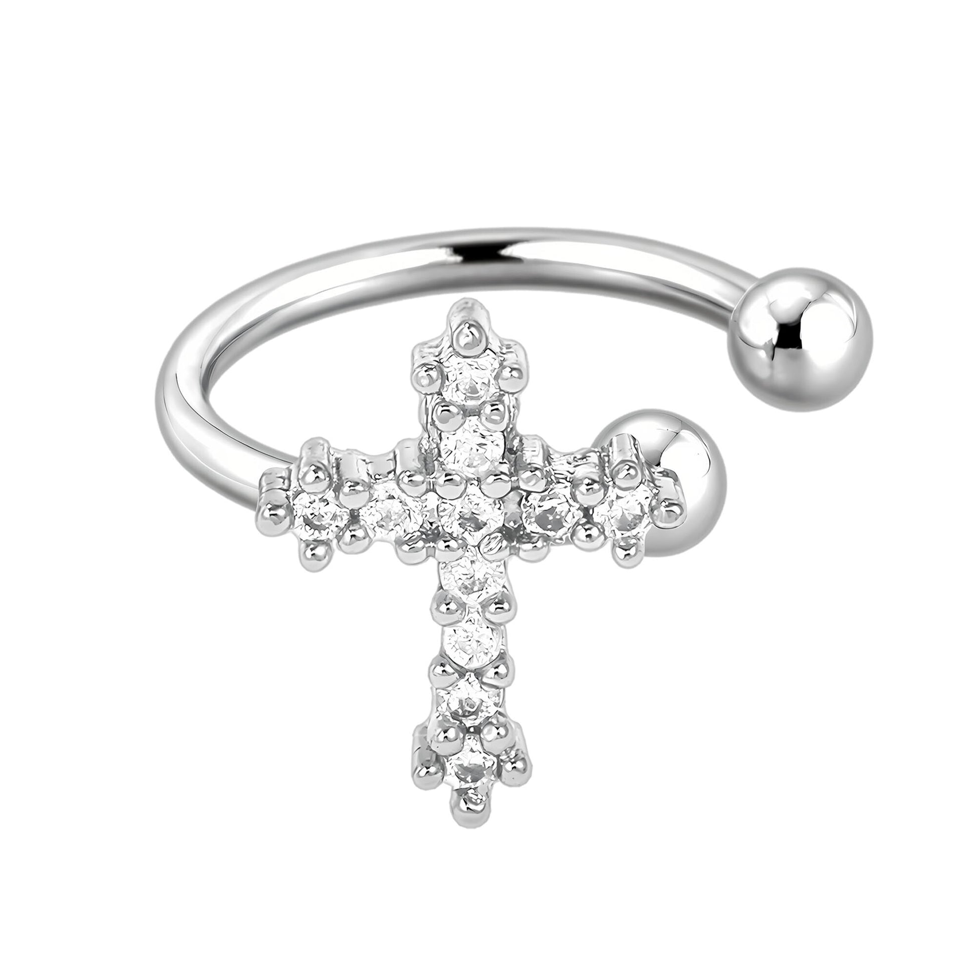 Platinum Plated Ear Cuff with Cross and Clear CZ