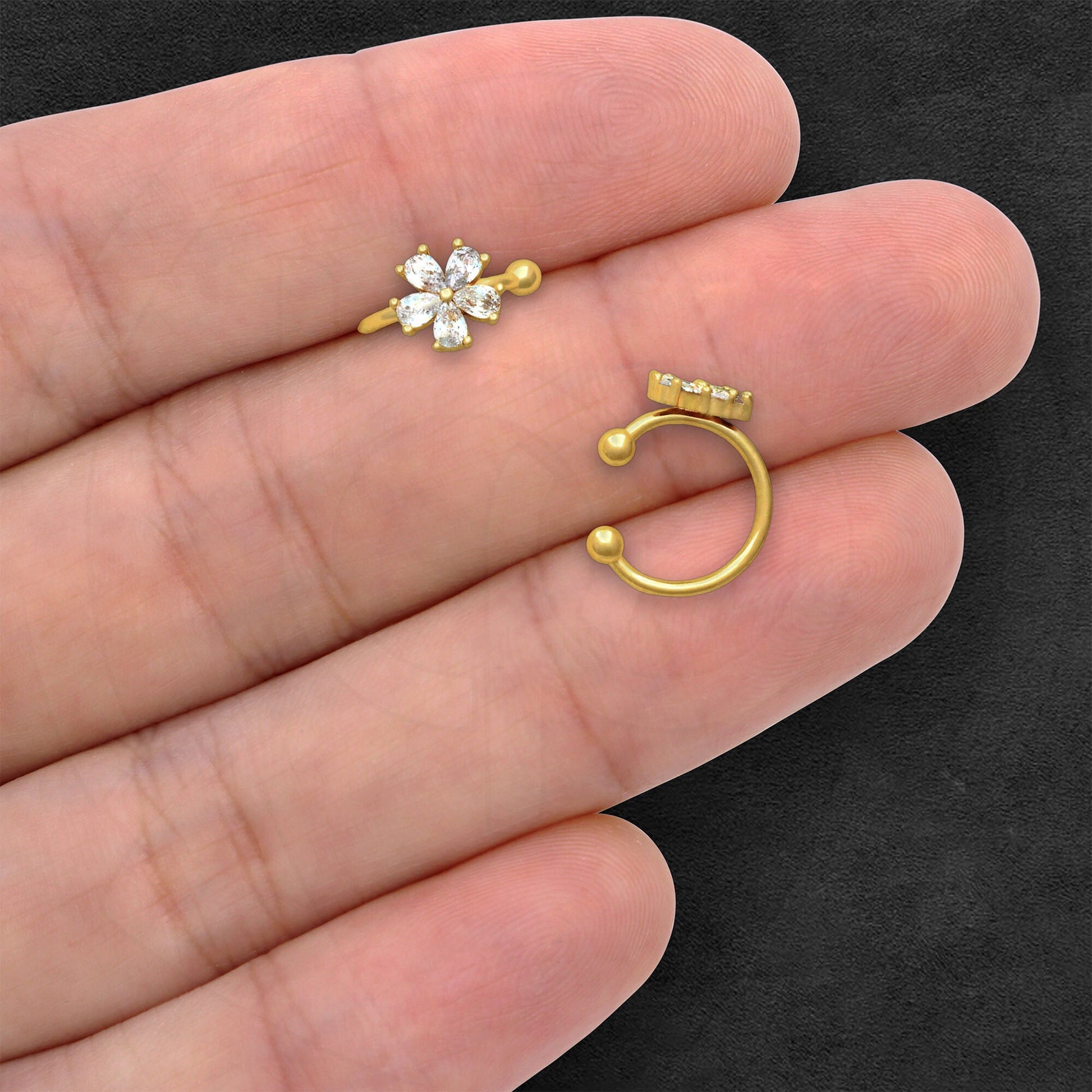 Premium materials like titanium, surgical steel, gold and platinum plating, Swarovski crystals, cubic zirconias, and natural opals.