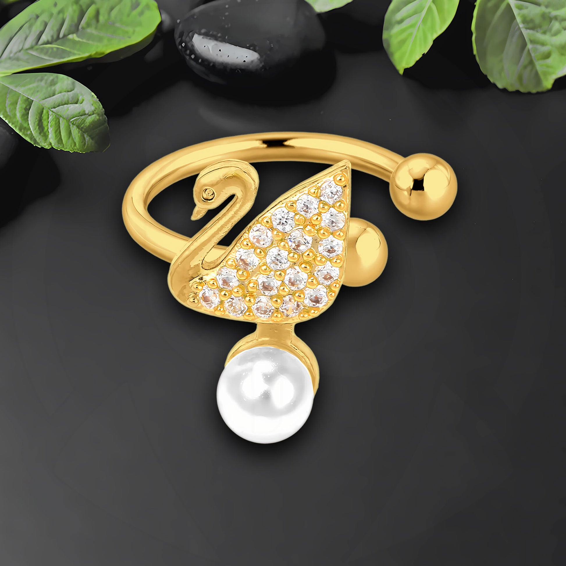 Gold Plated Ear Cuff with Crystal Swan and Pearl