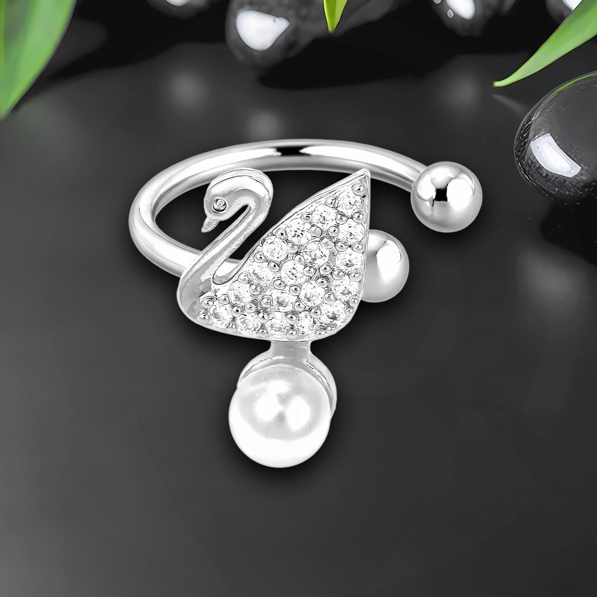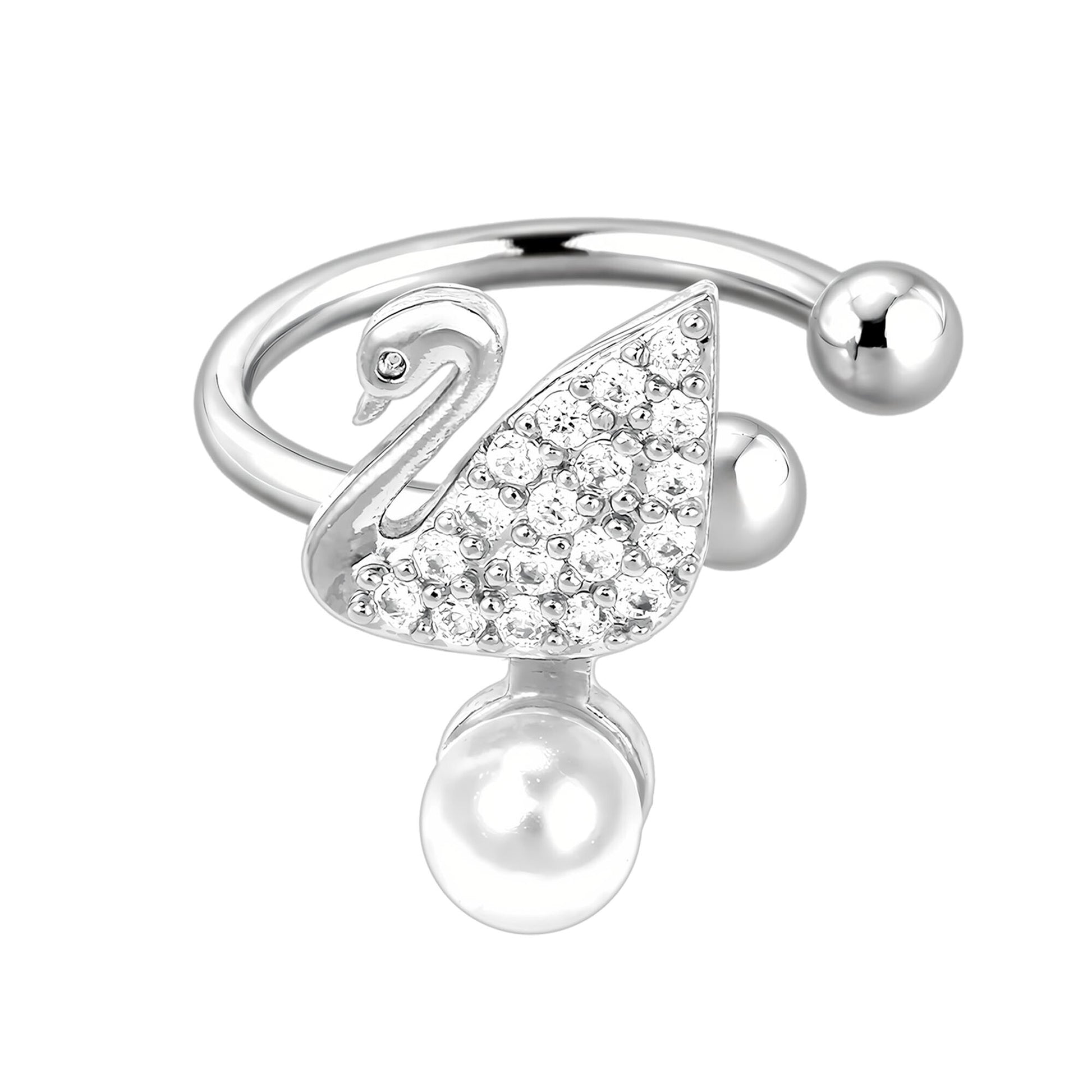 Platinum Plated Ear Cuff with Crystal Swan and Pearl