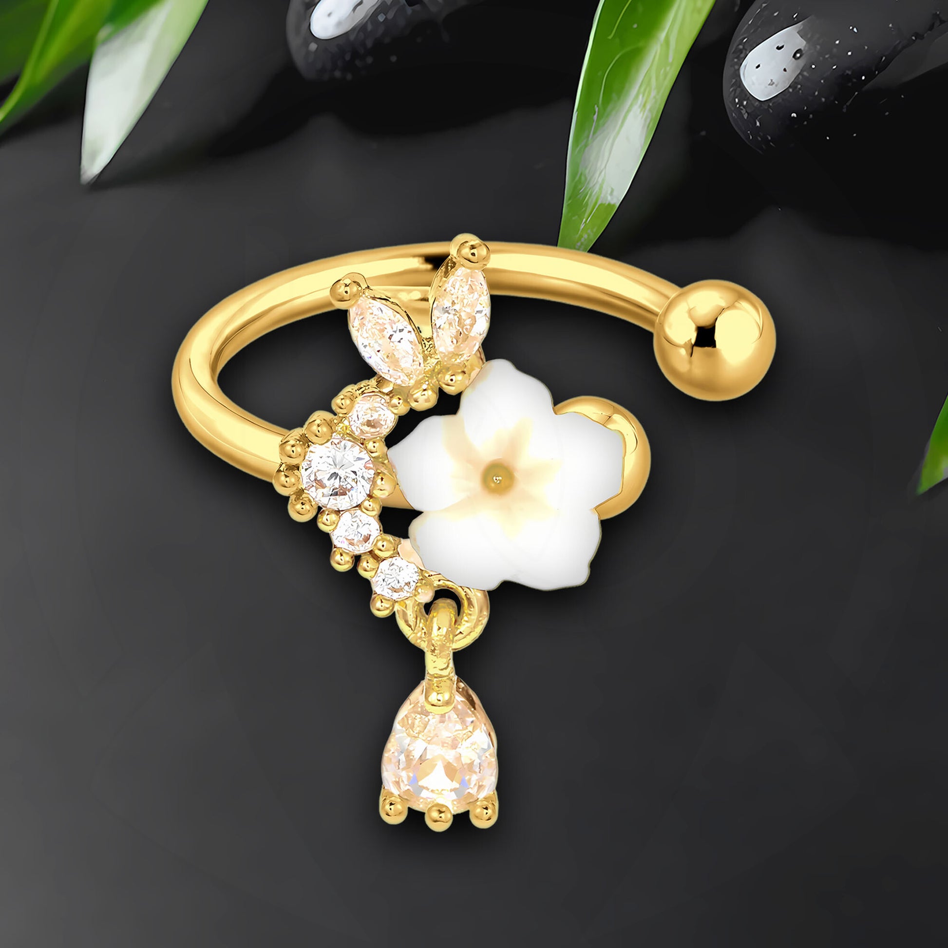 Gold Plated Ear Cuff with Crystal Flower Ornament