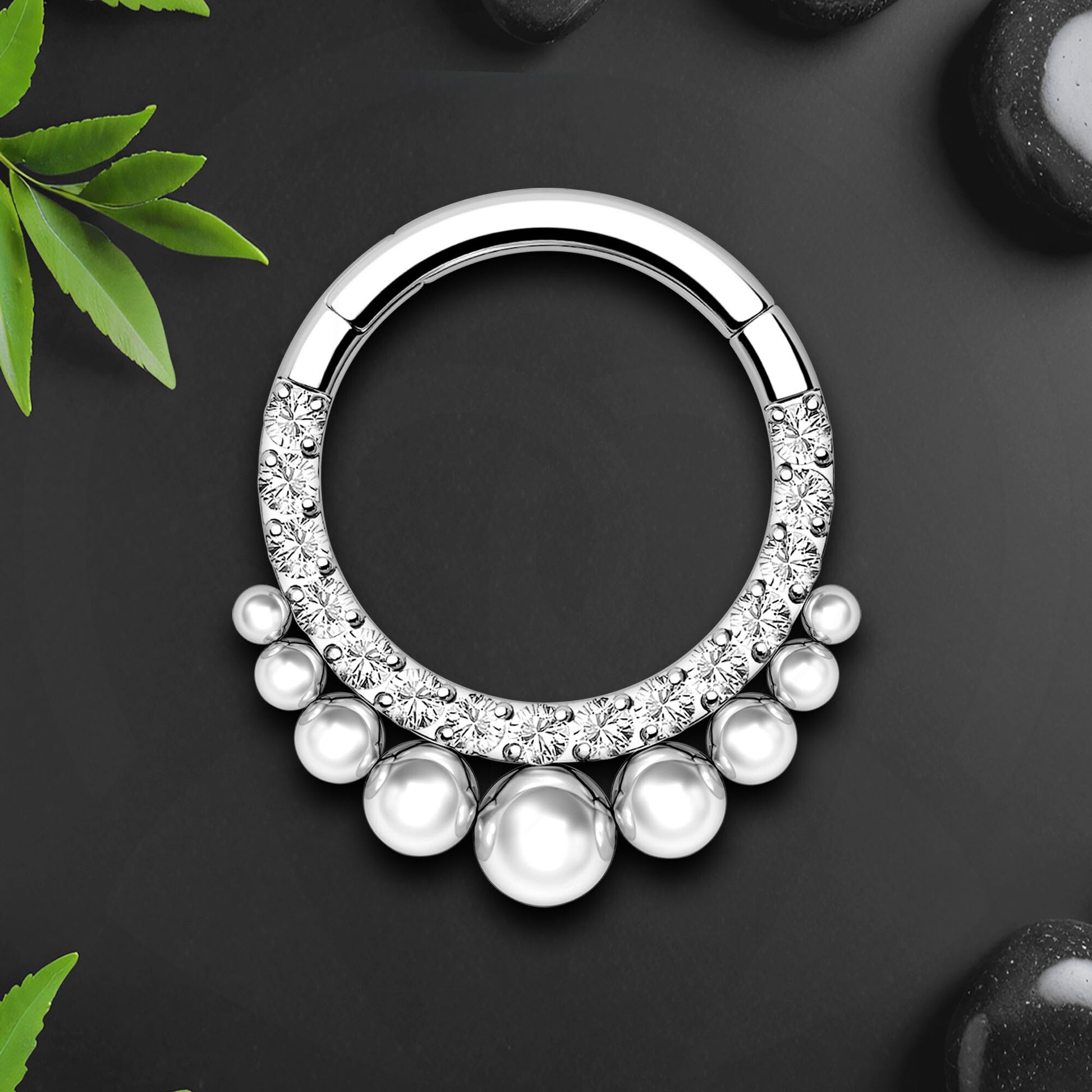 Premium materials like titanium, surgical steel, gold and platinum plating, Swarovski crystals, cubic zirconias, and natural opals.