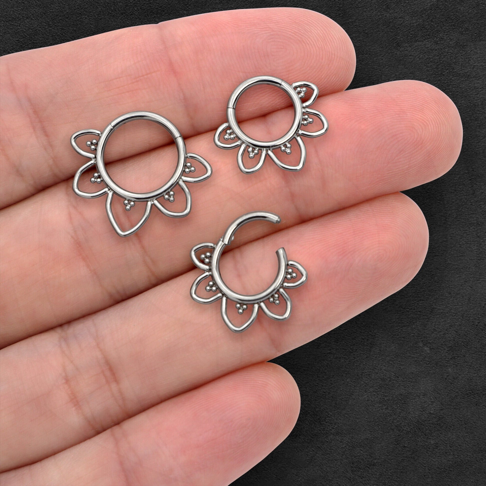 Titanium Clicker Ring with Flower Petals