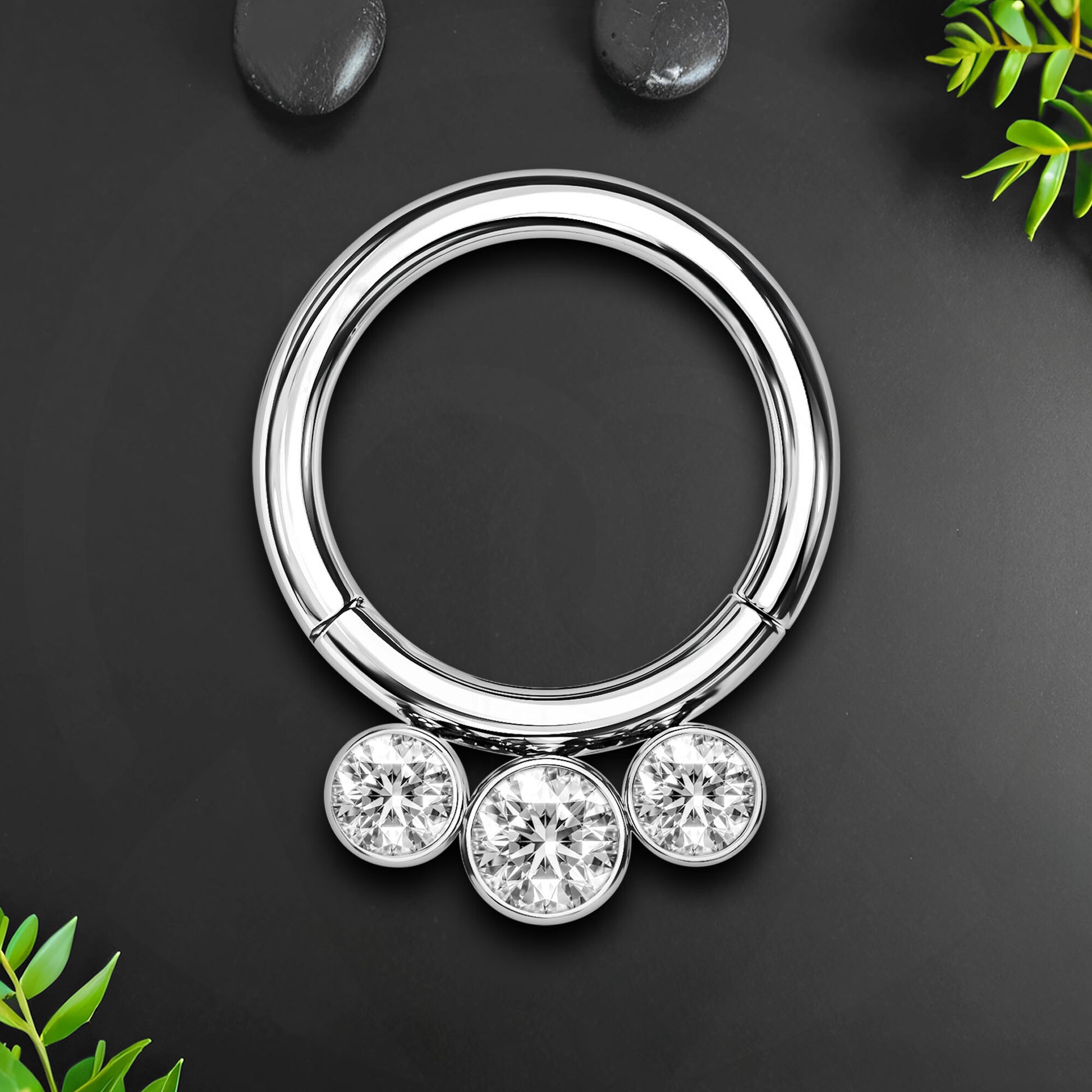 Premium materials like titanium, surgical steel, gold and platinum plating, Swarovski crystals, cubic zirconias, and natural opals.