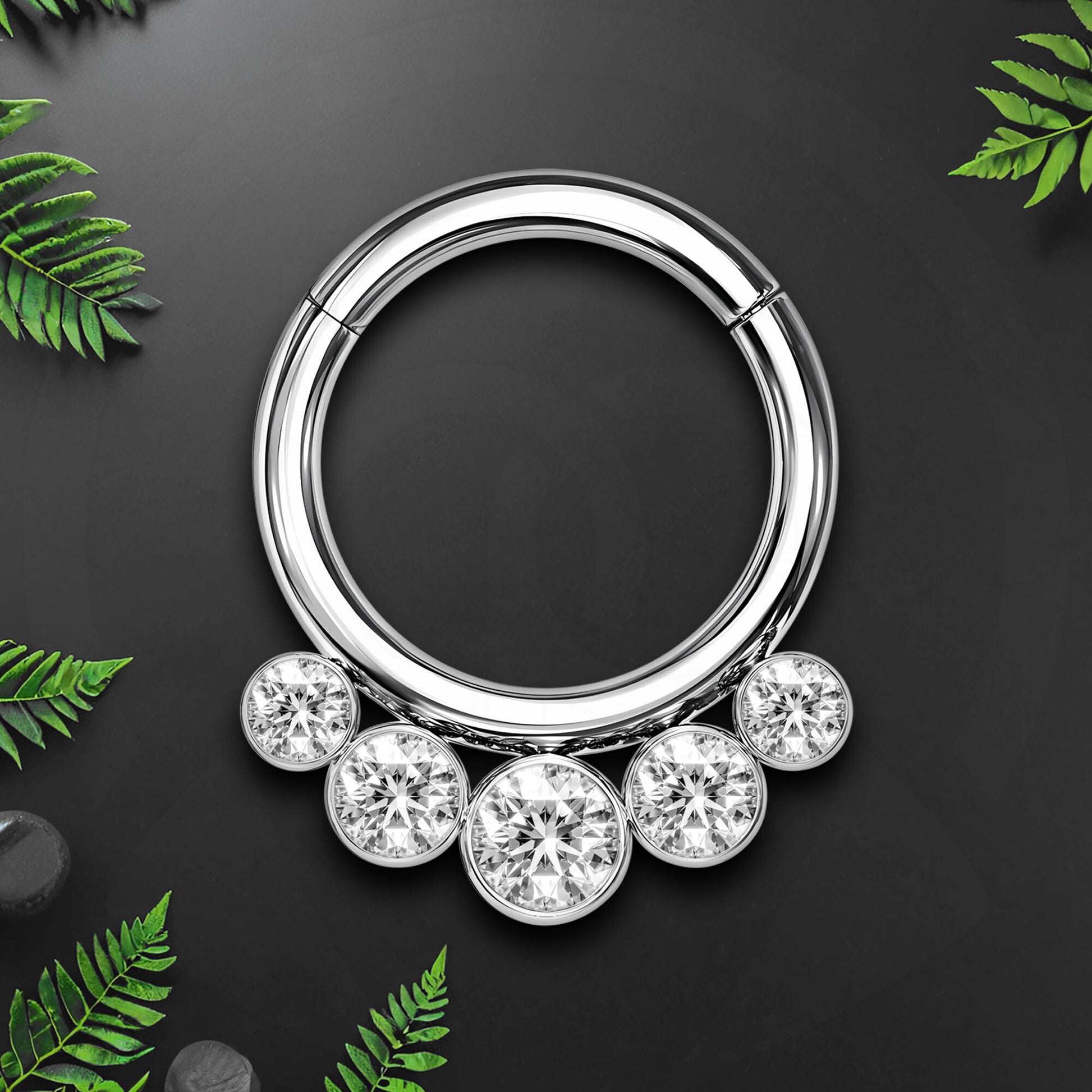 Titanium Clicker Ring with Five Zirconia Bezel Set