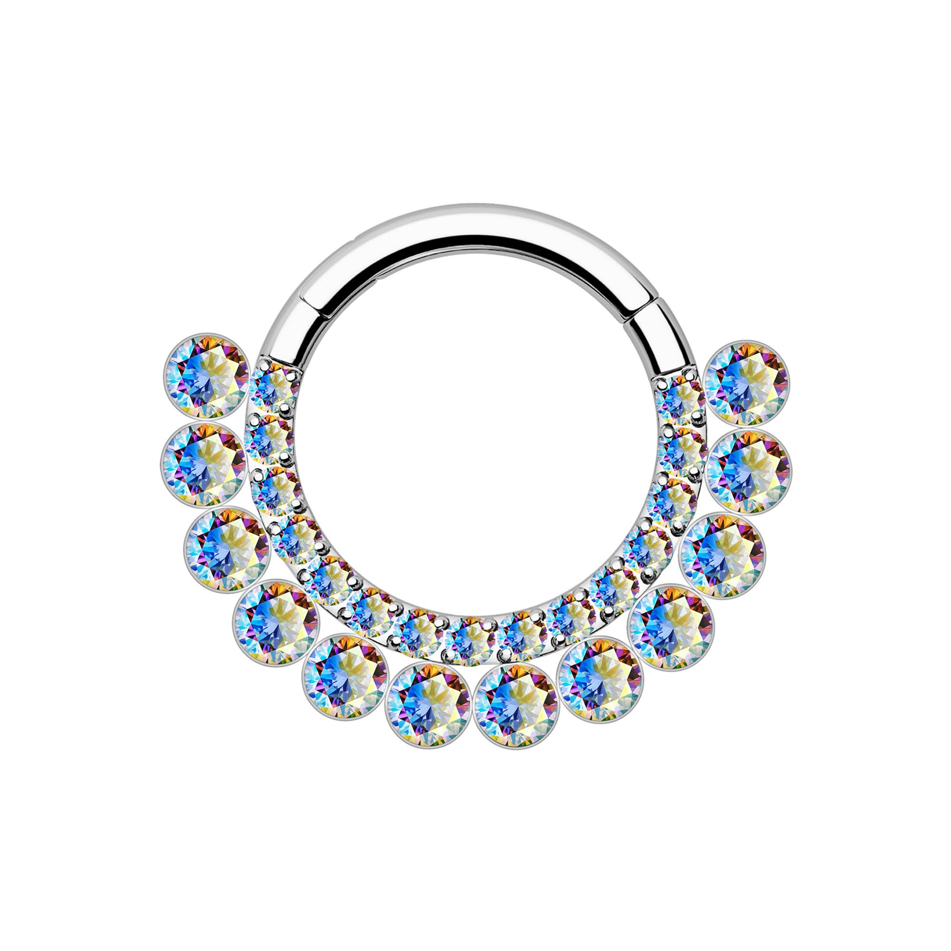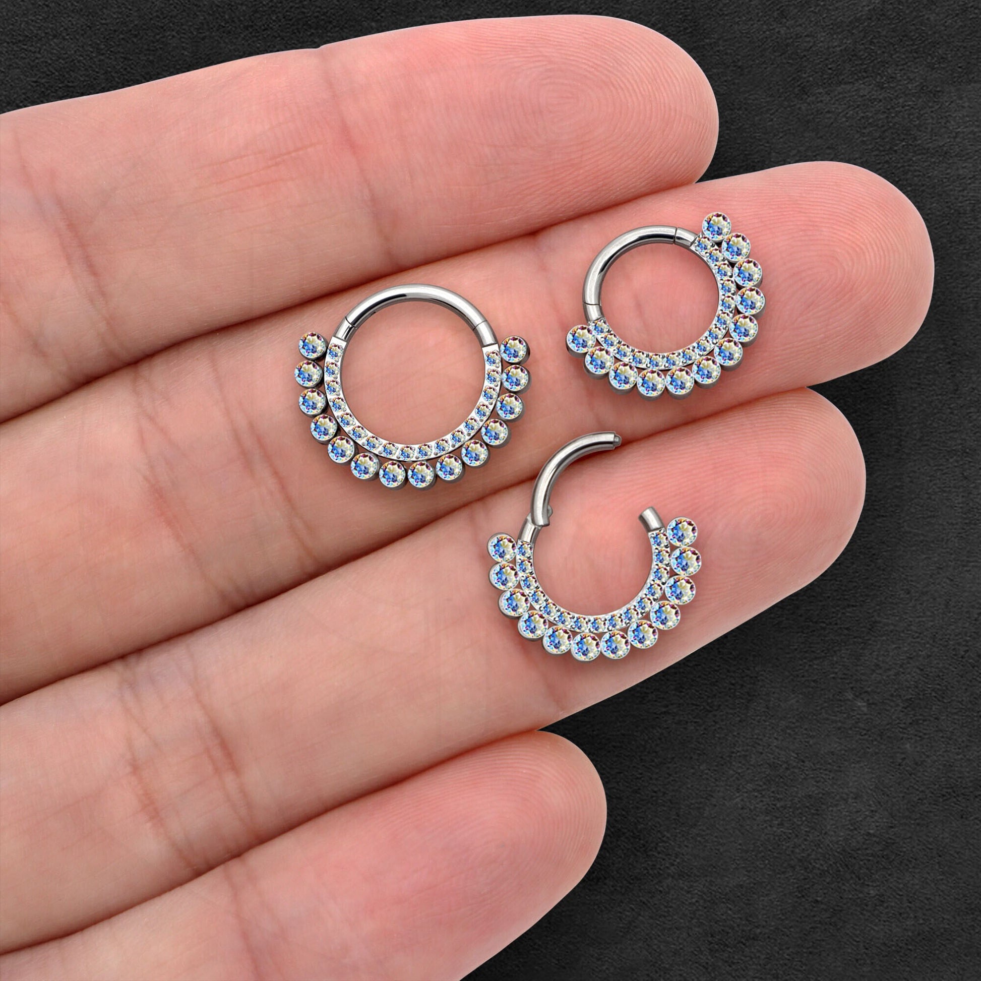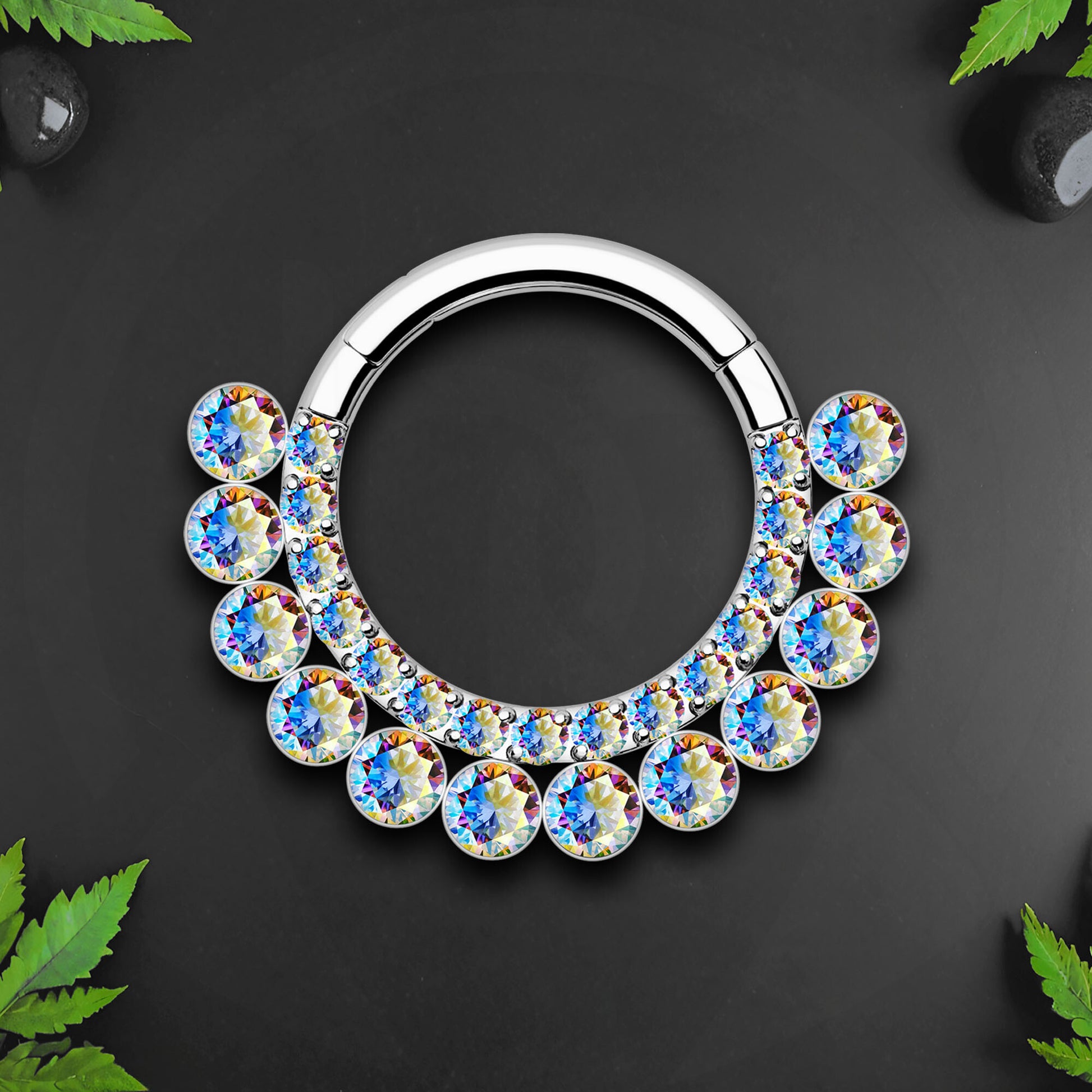 Titanium Clicker Ring with Double Raw Aurora Borealis CZ