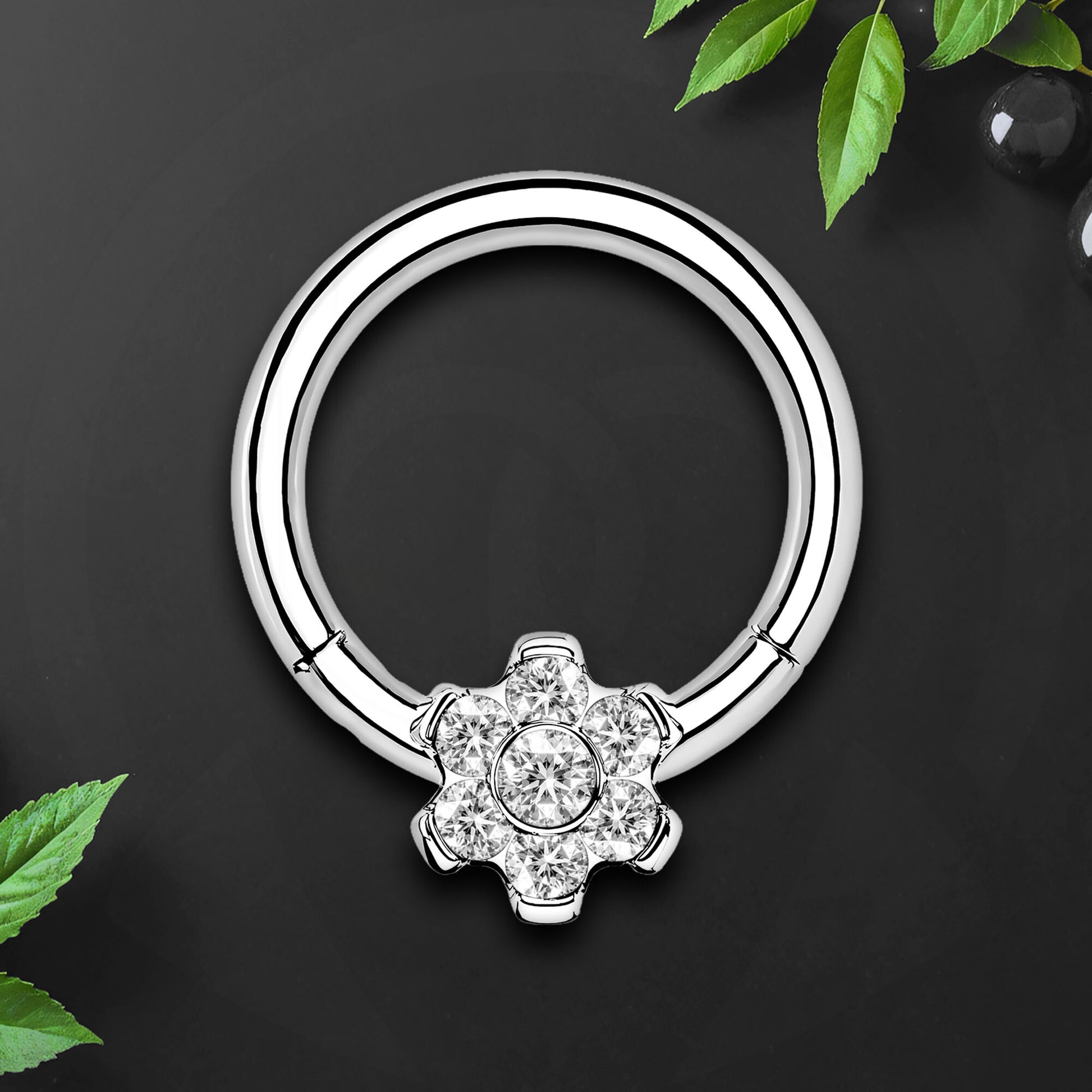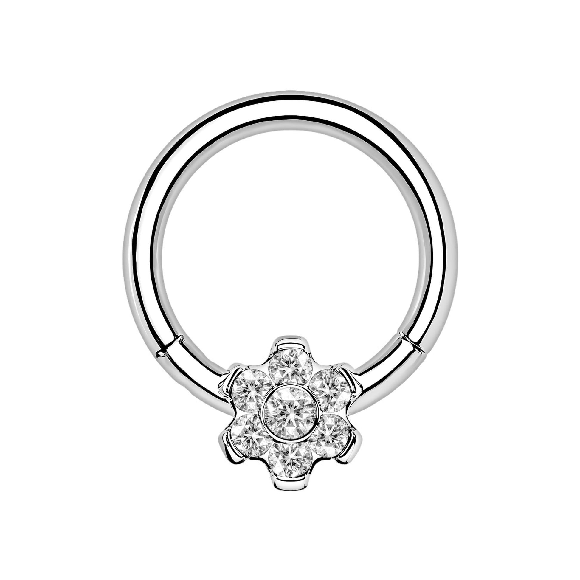 Titanium Clicker Ring with Flower Ornament