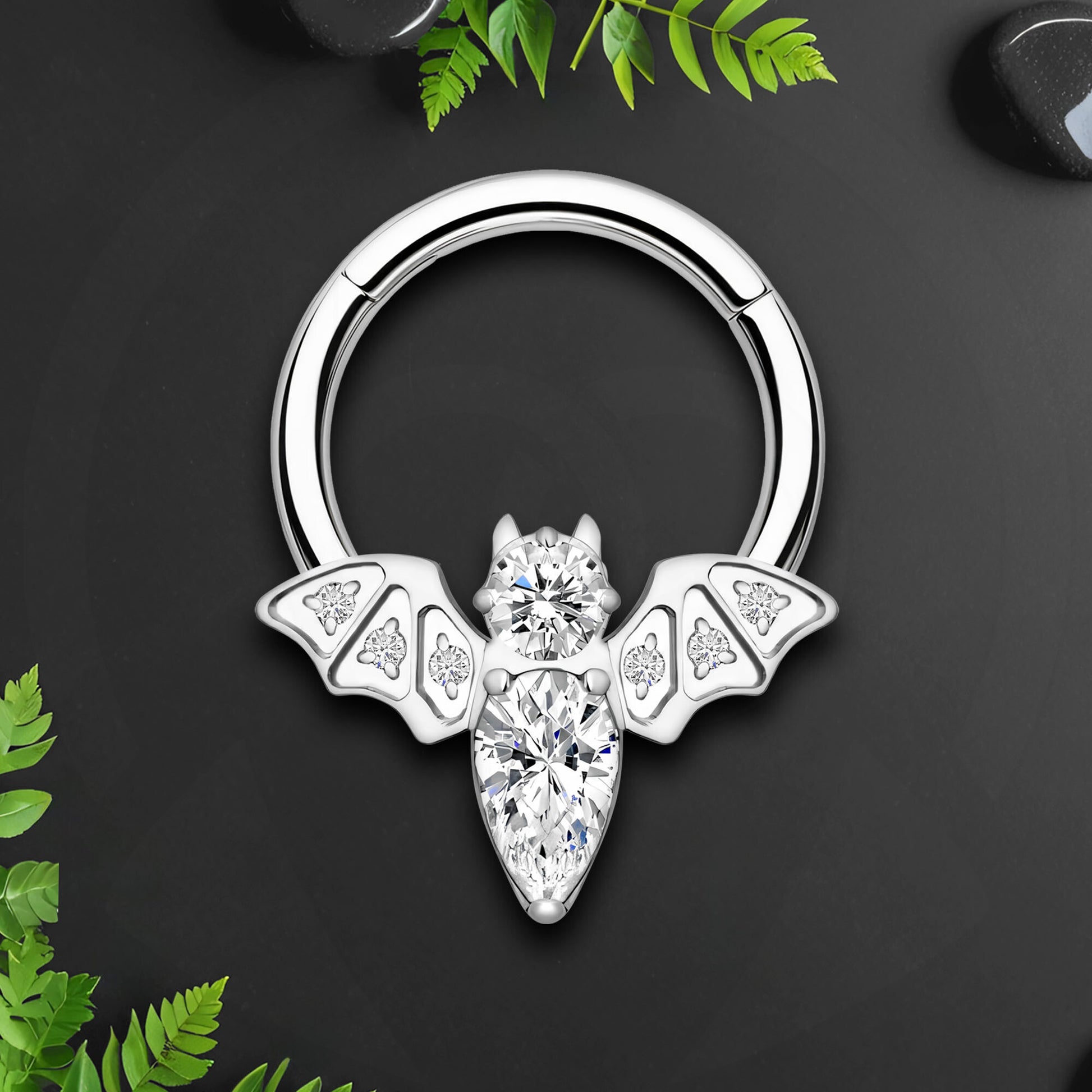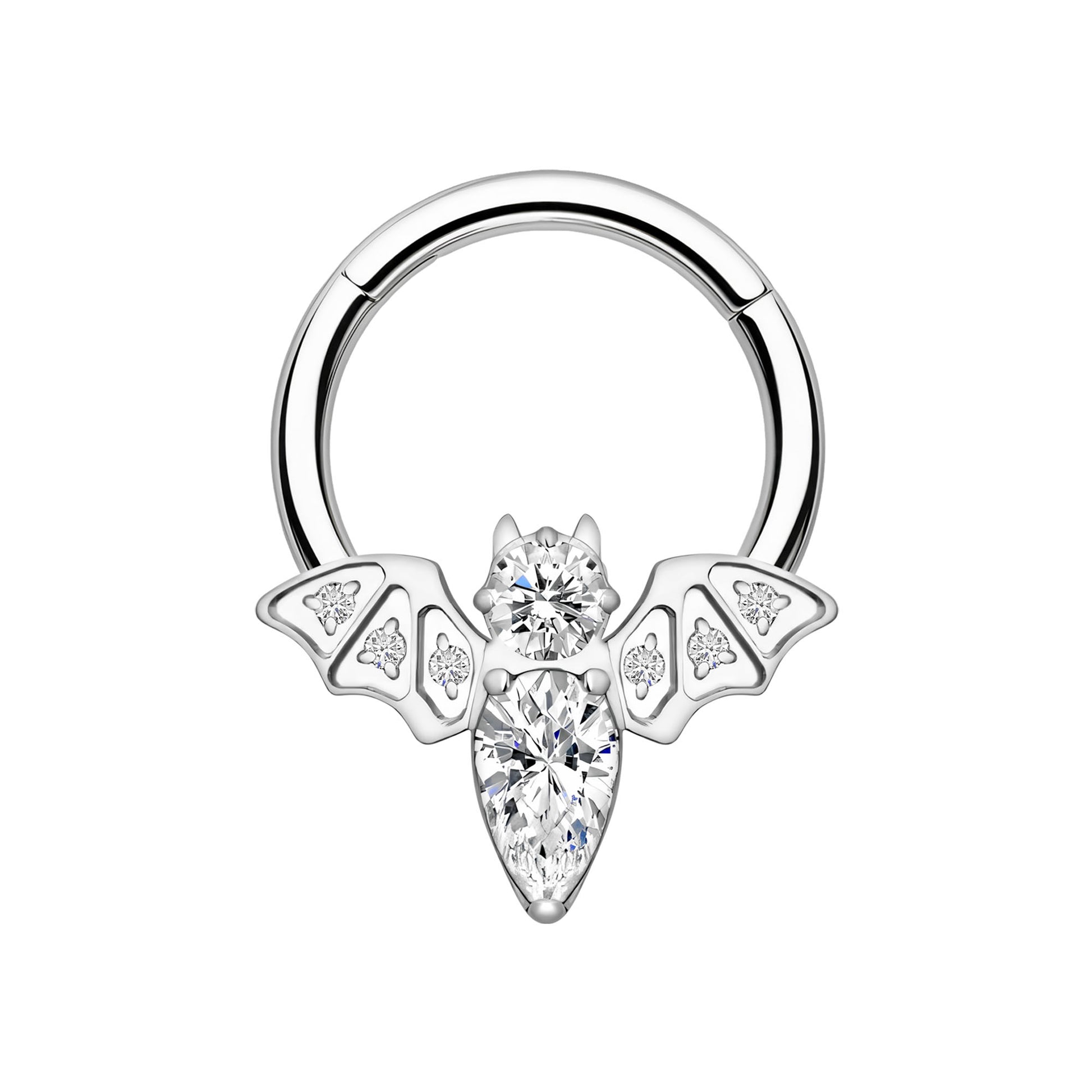 Titanium Clicker Ring with Bat Figure and Zirconia