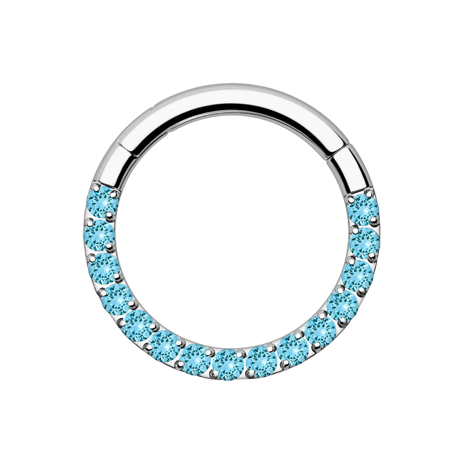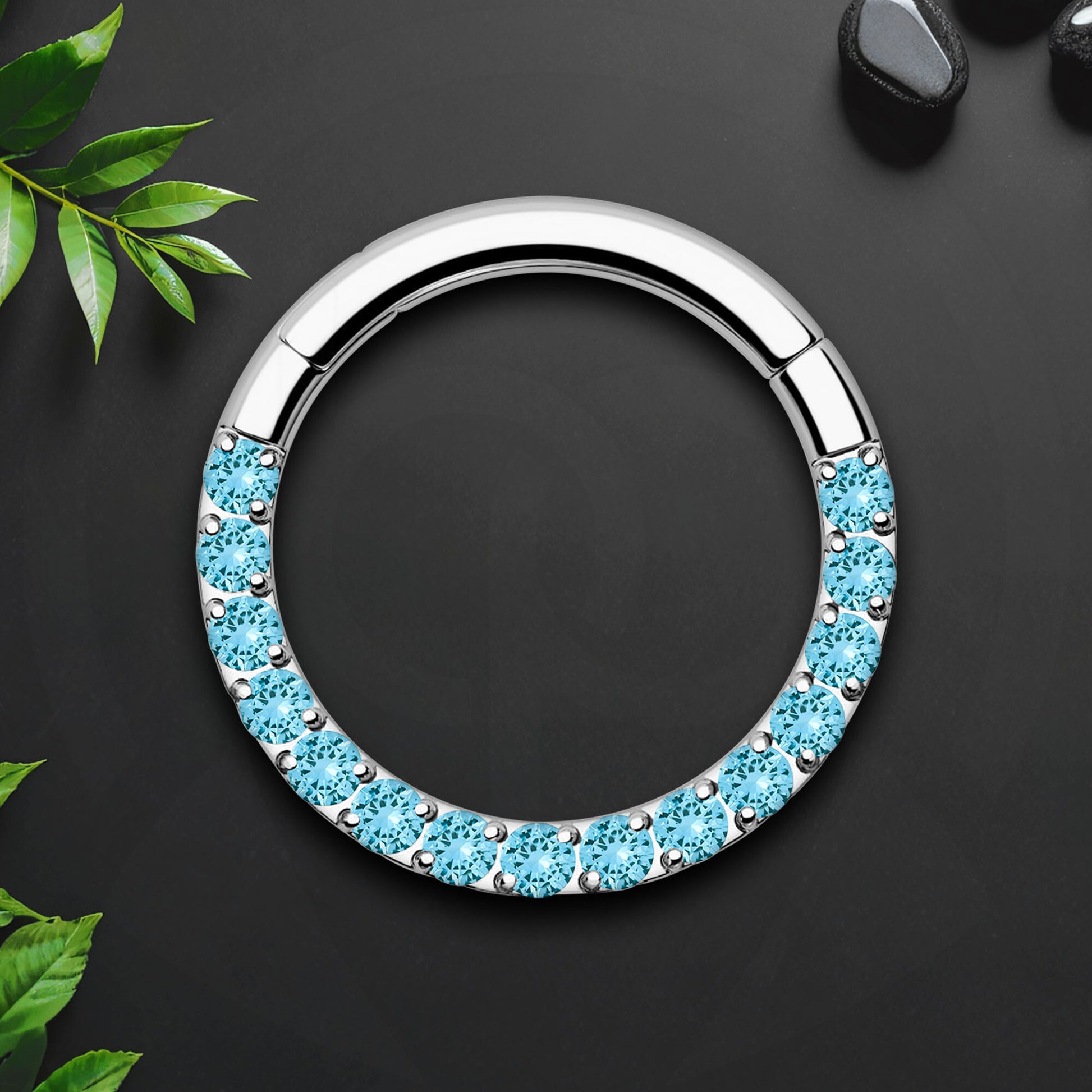 Titanium Clicker Ring in Classic Style with Aqua CZ