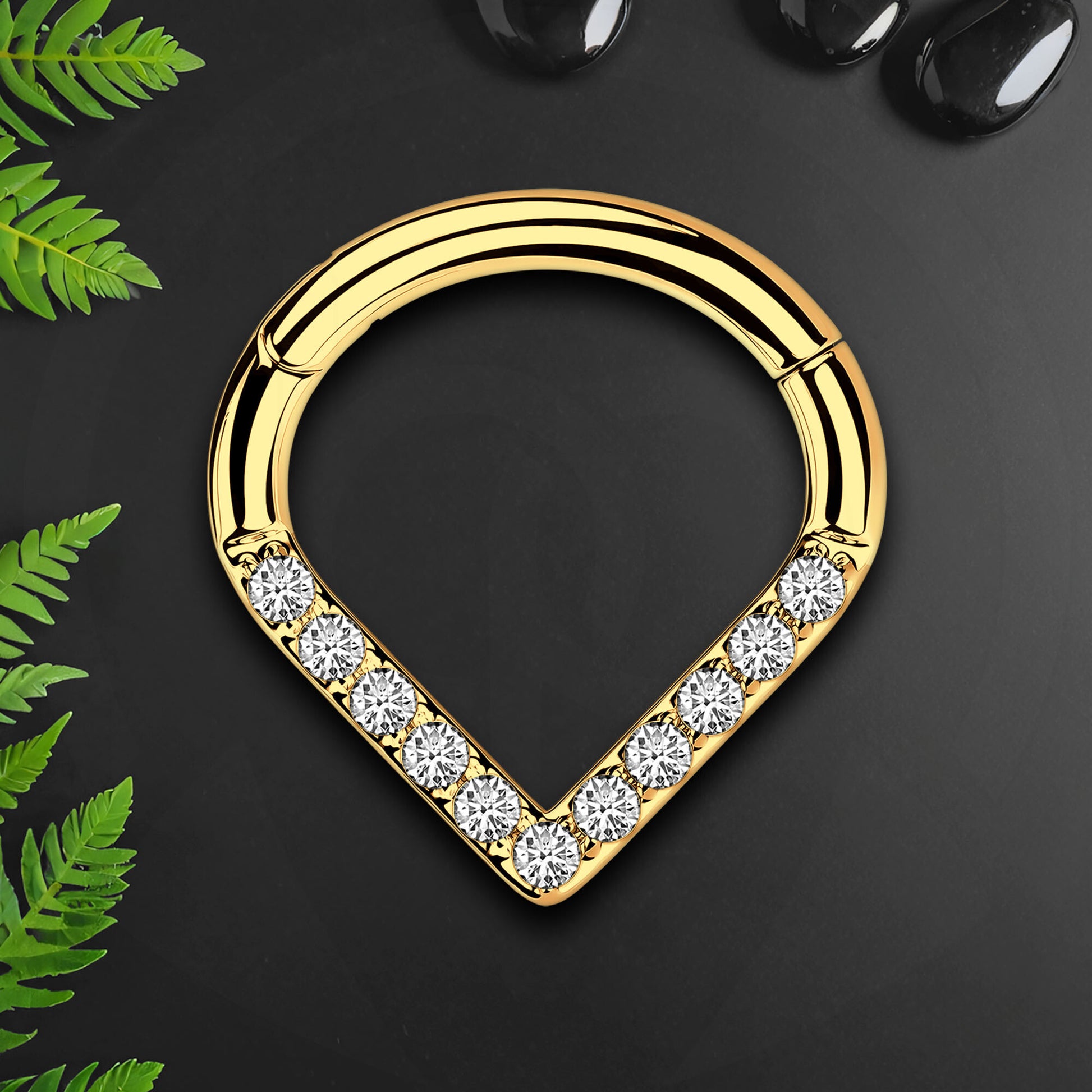 Titanium Clicker Ring in V Shape Style with CZ