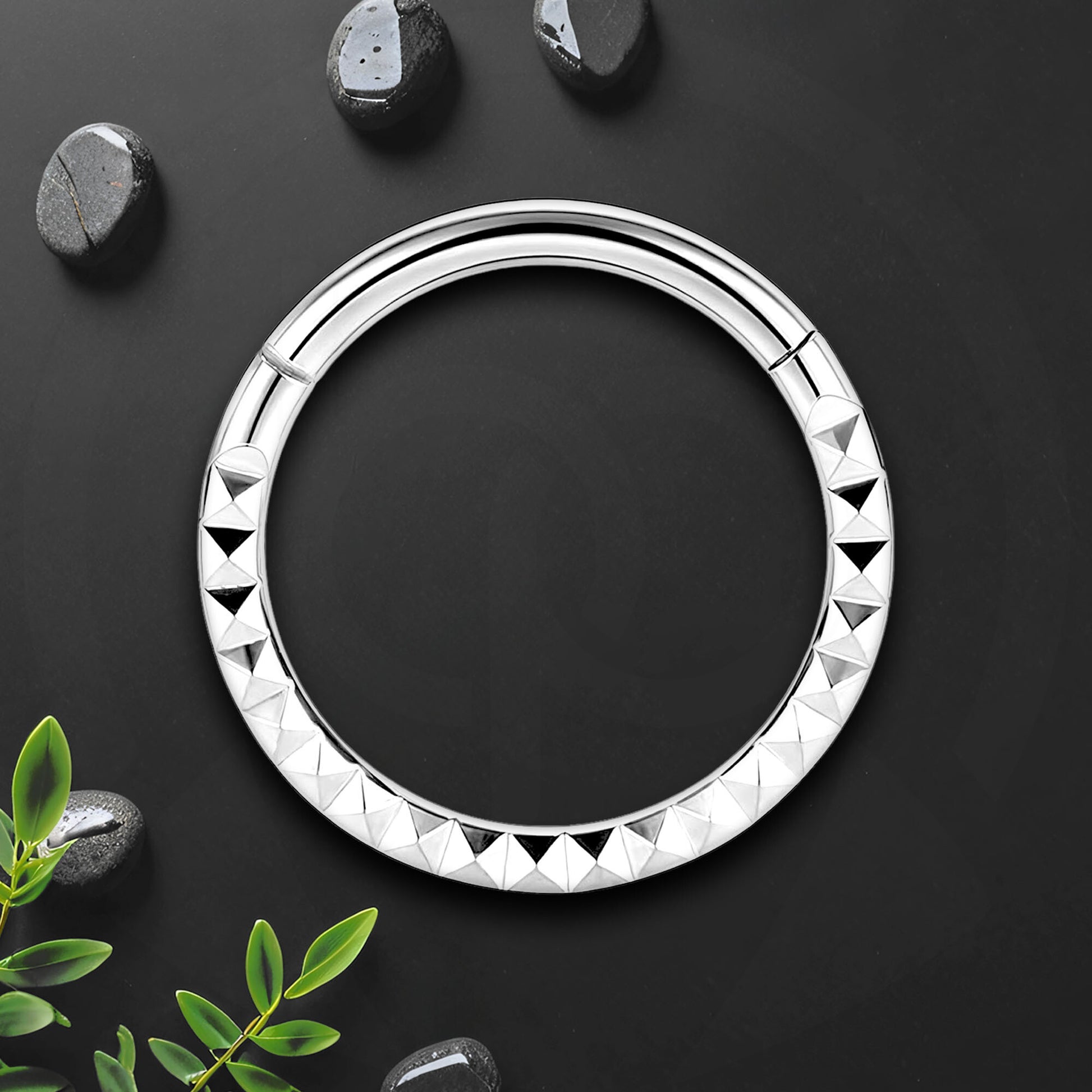 Titanium Clicker Ring with Pyramid Pattern