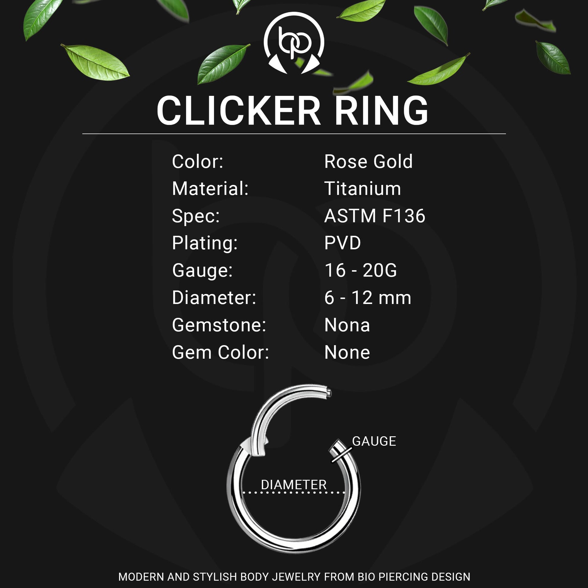 Premium materials like titanium, surgical steel, gold and platinum plating, Swarovski crystals, cubic zirconias, and natural opals.