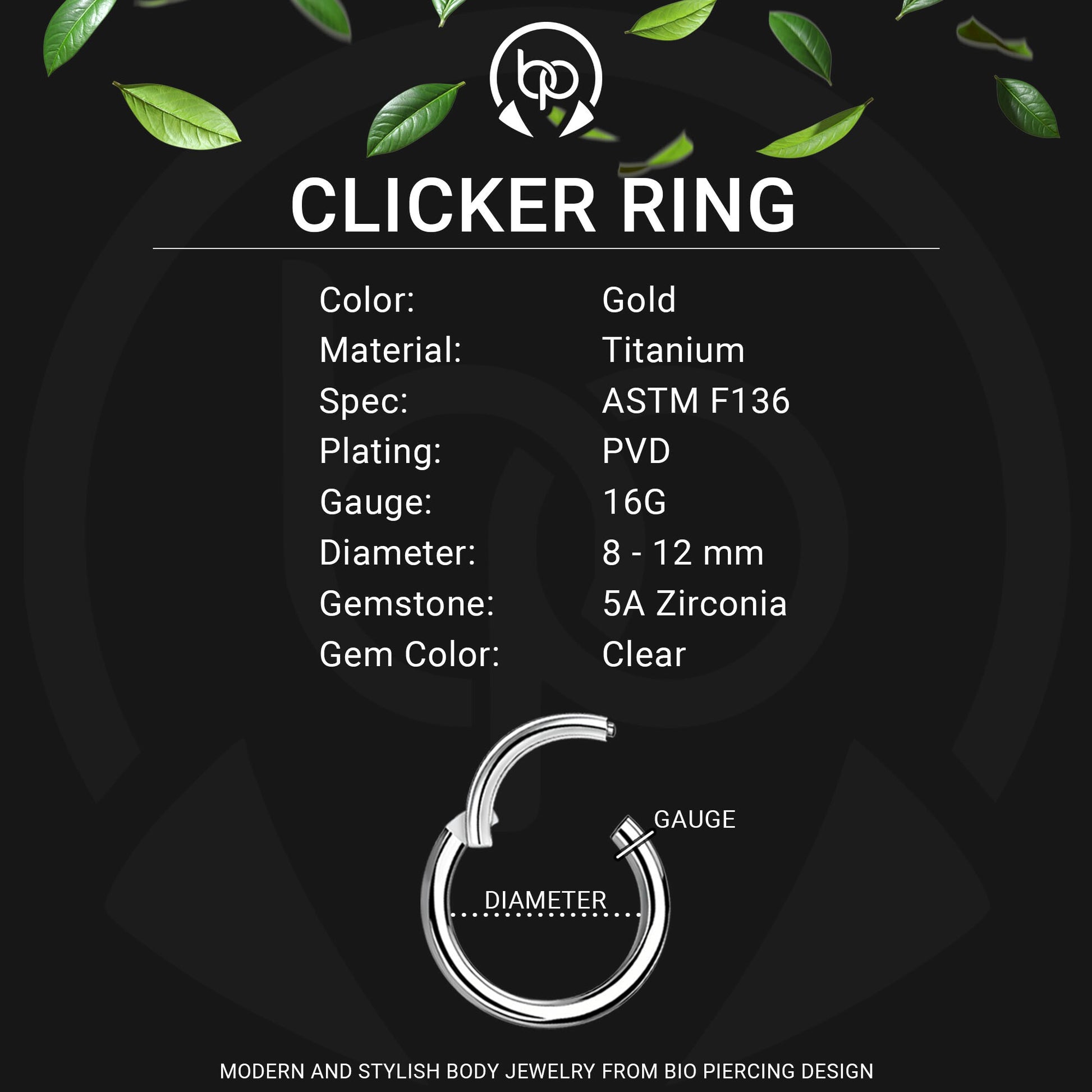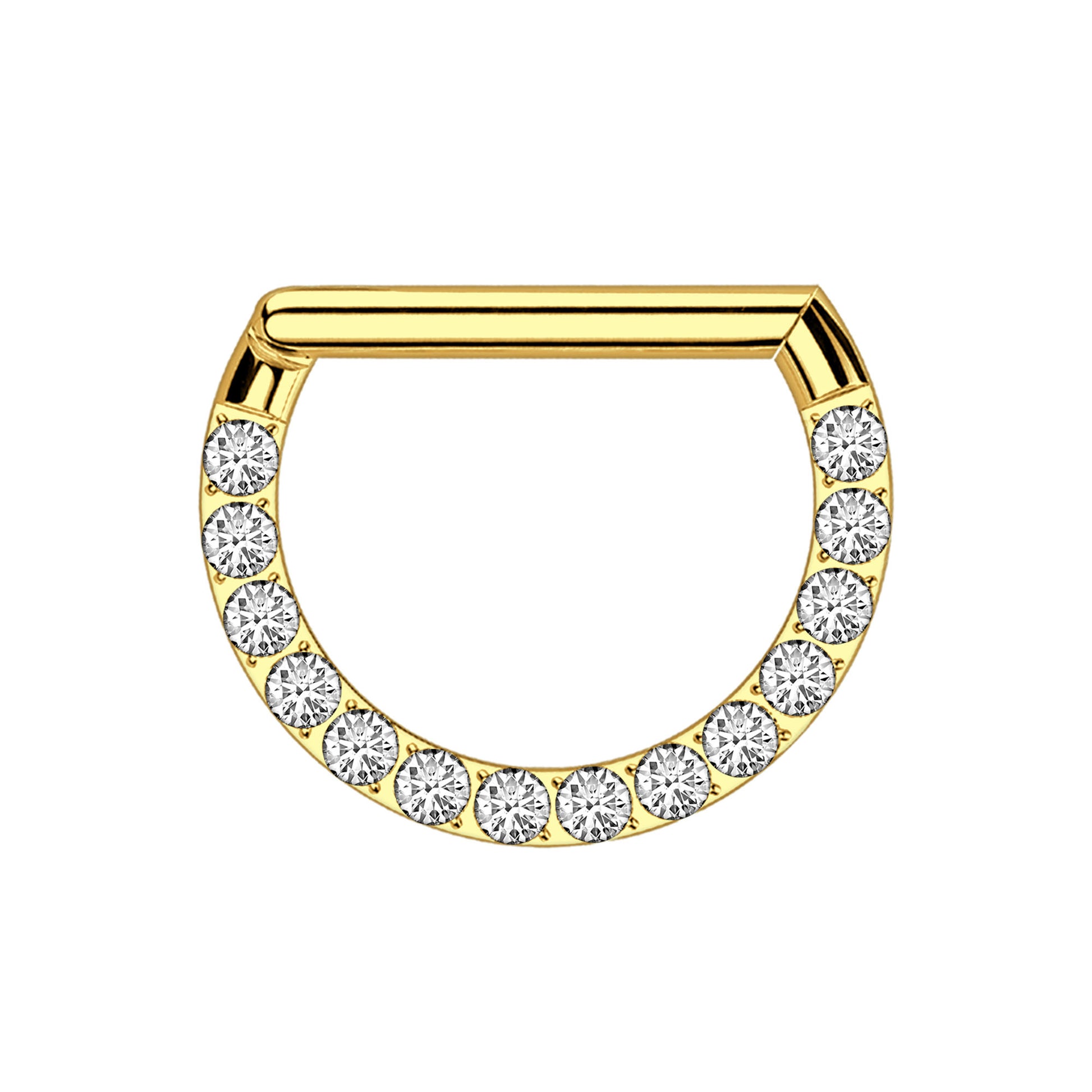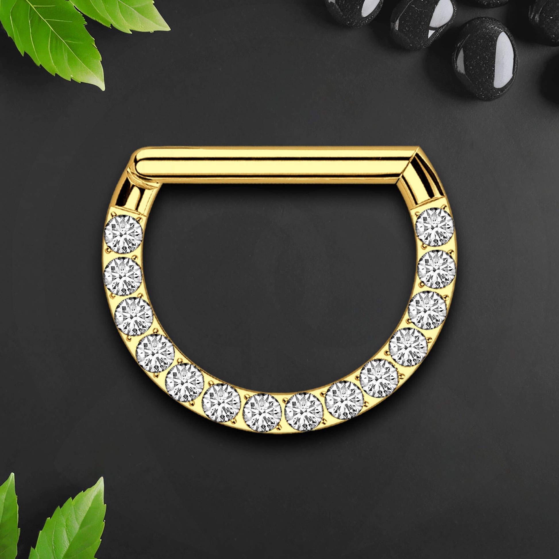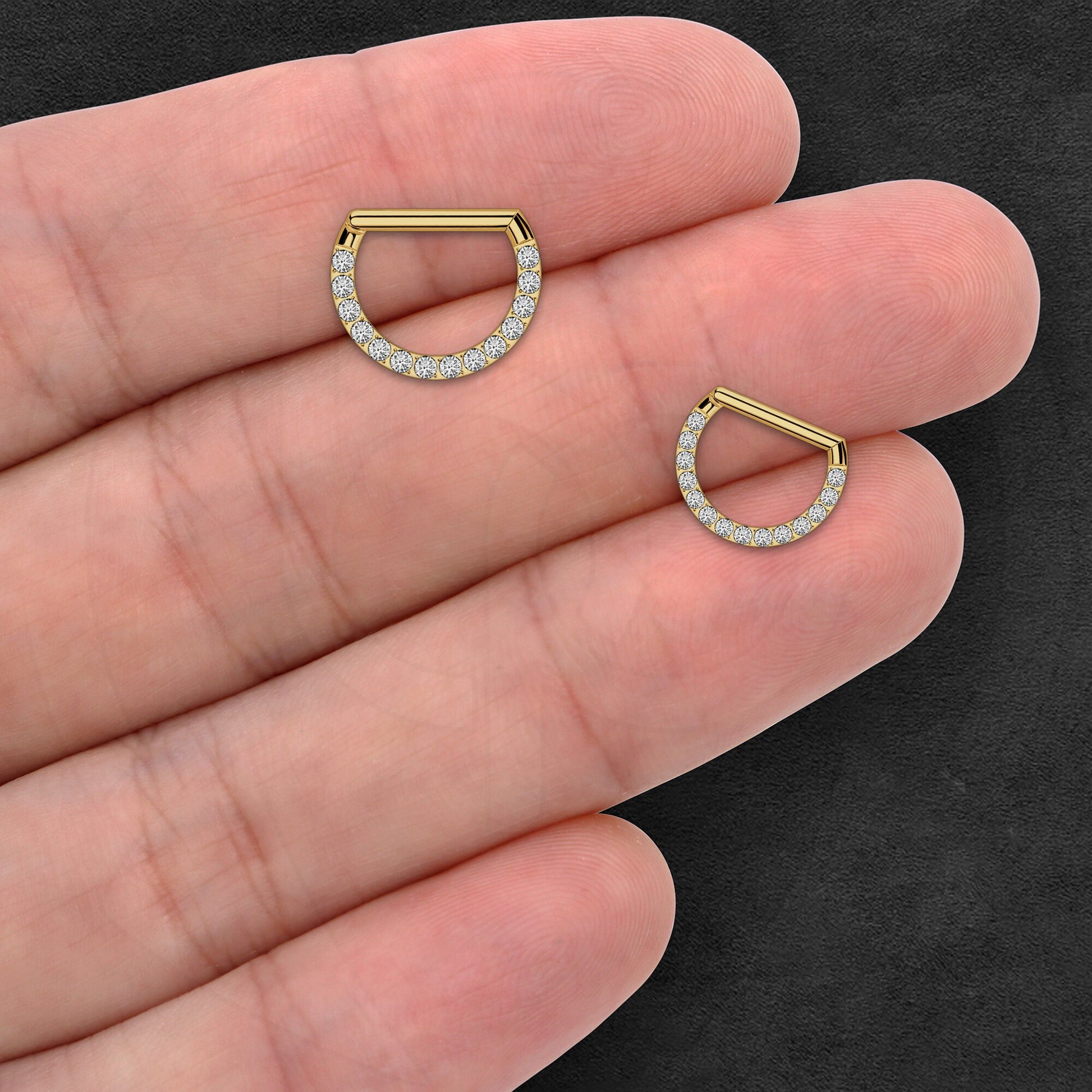 Titanium Clicker Ring in D Shape with Face Side CZ