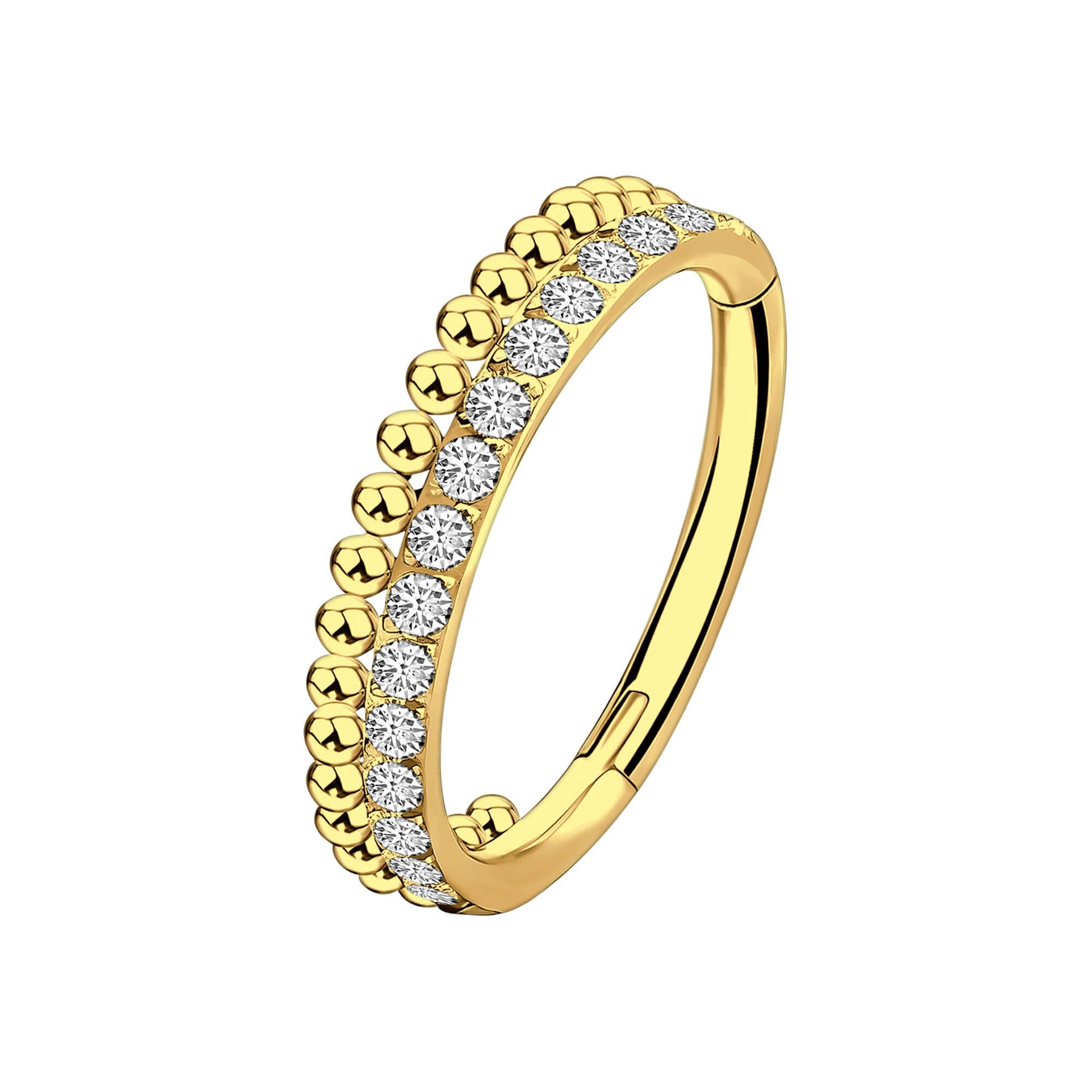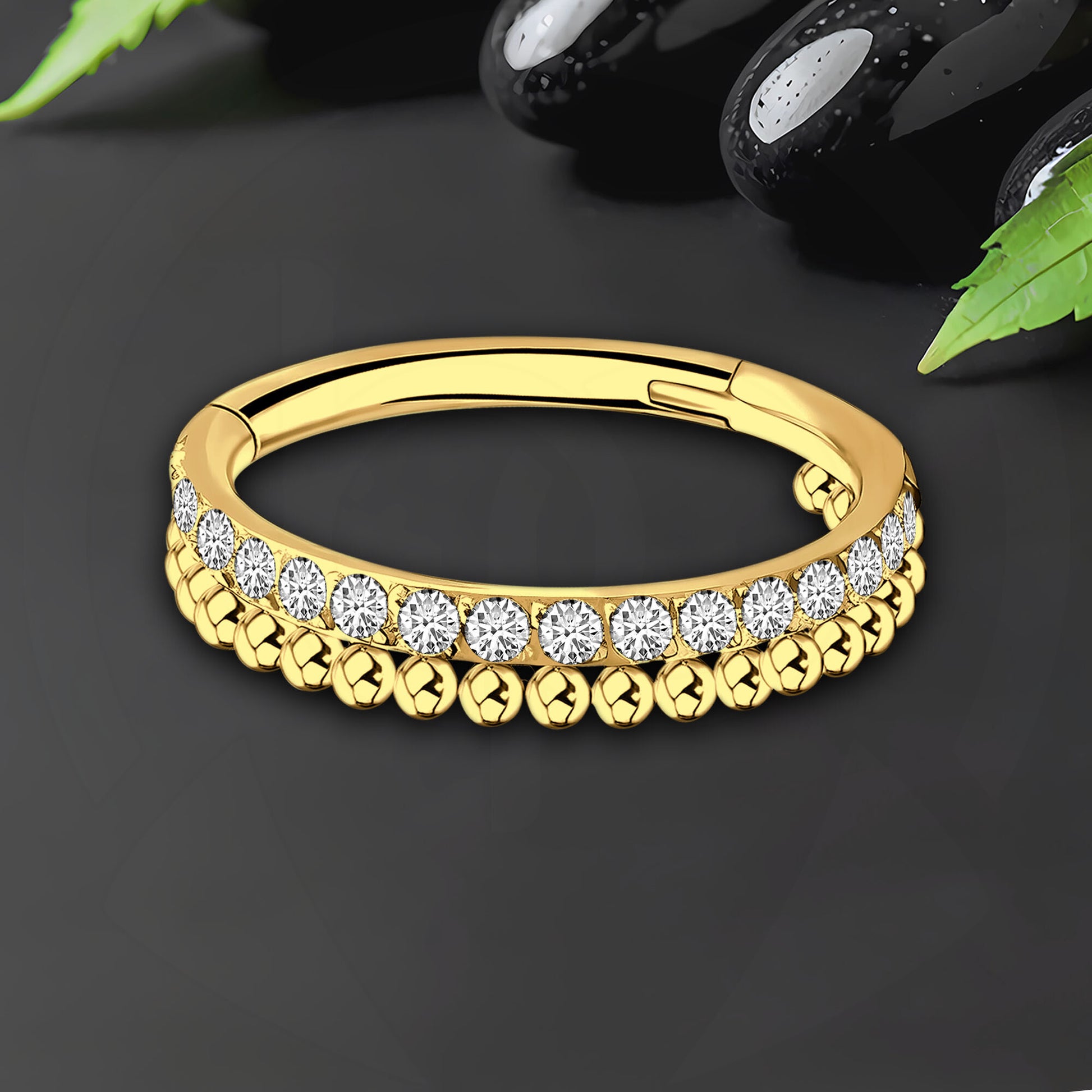 Premium materials like titanium, surgical steel, gold and platinum plating, Swarovski crystals, cubic zirconias, and natural opals.