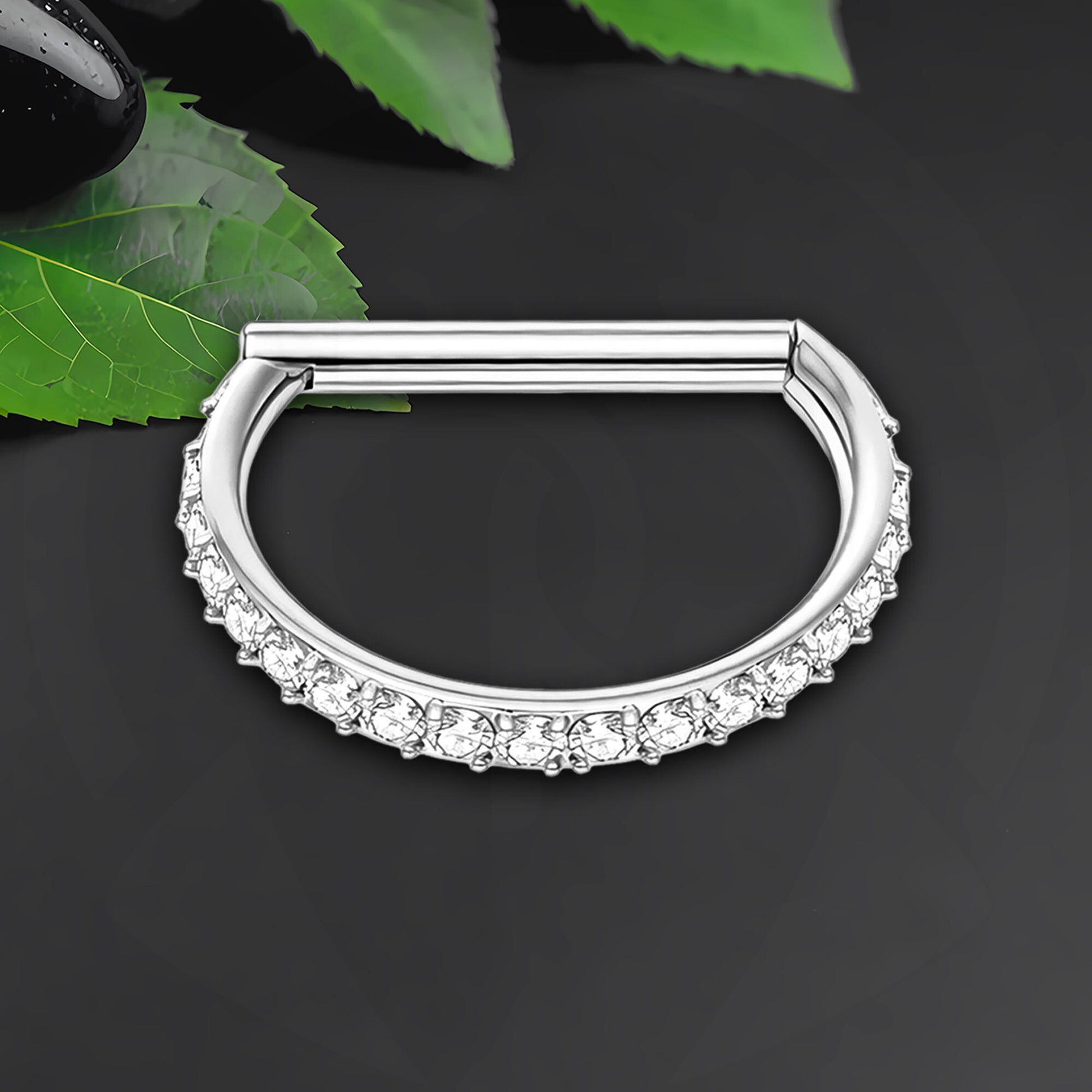 Titanium Clicker Ring in D Shape Style and Zirconia