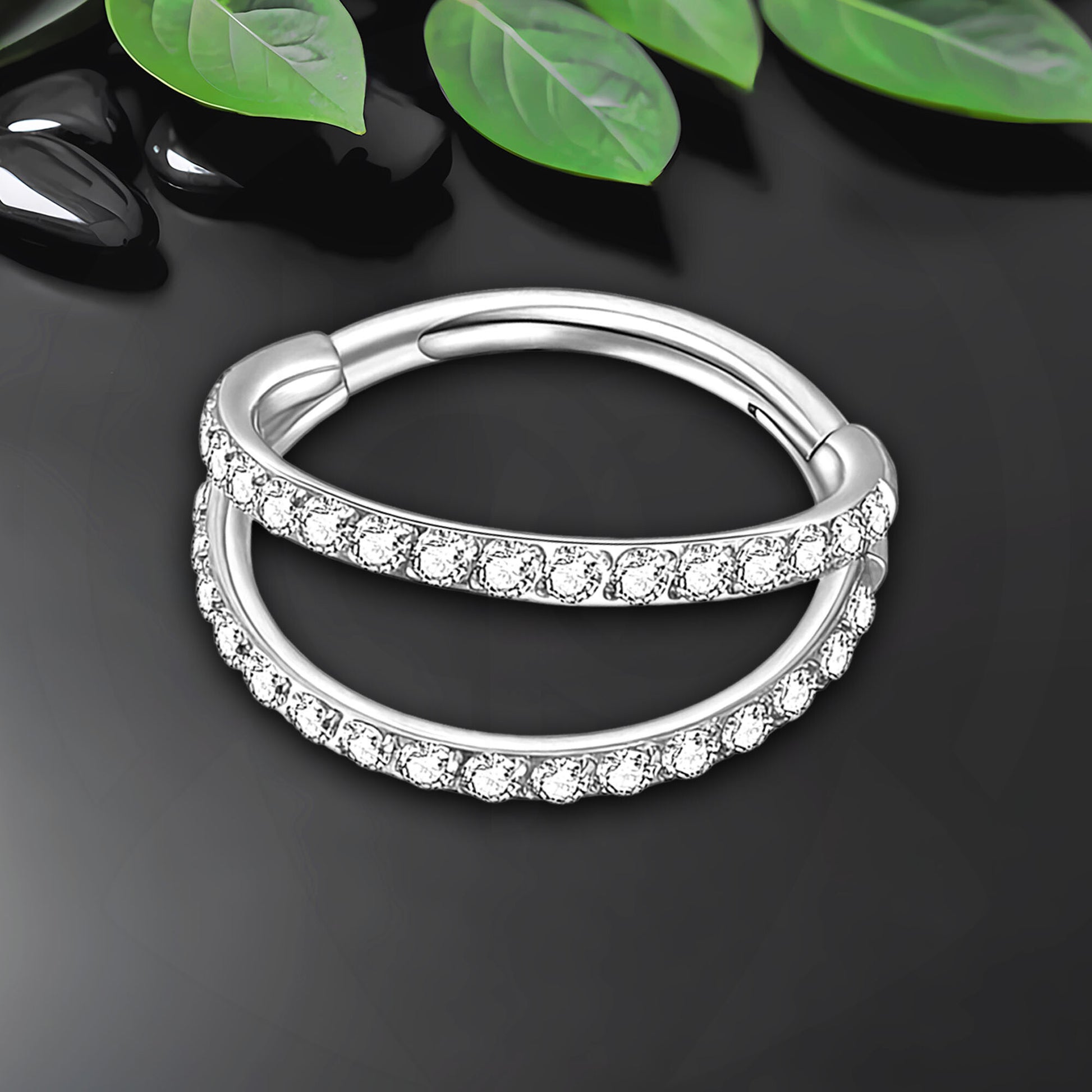 Titanium Clicker Ring in Double Hoops Style and Zirconia
