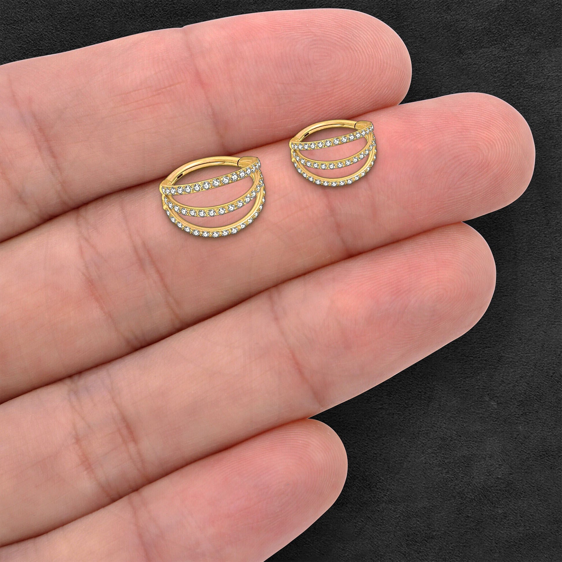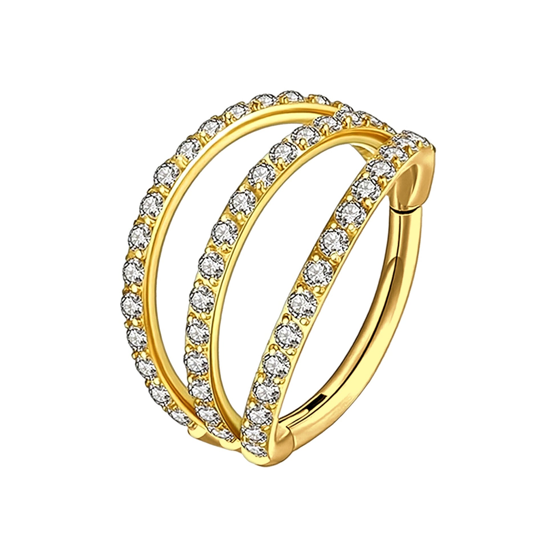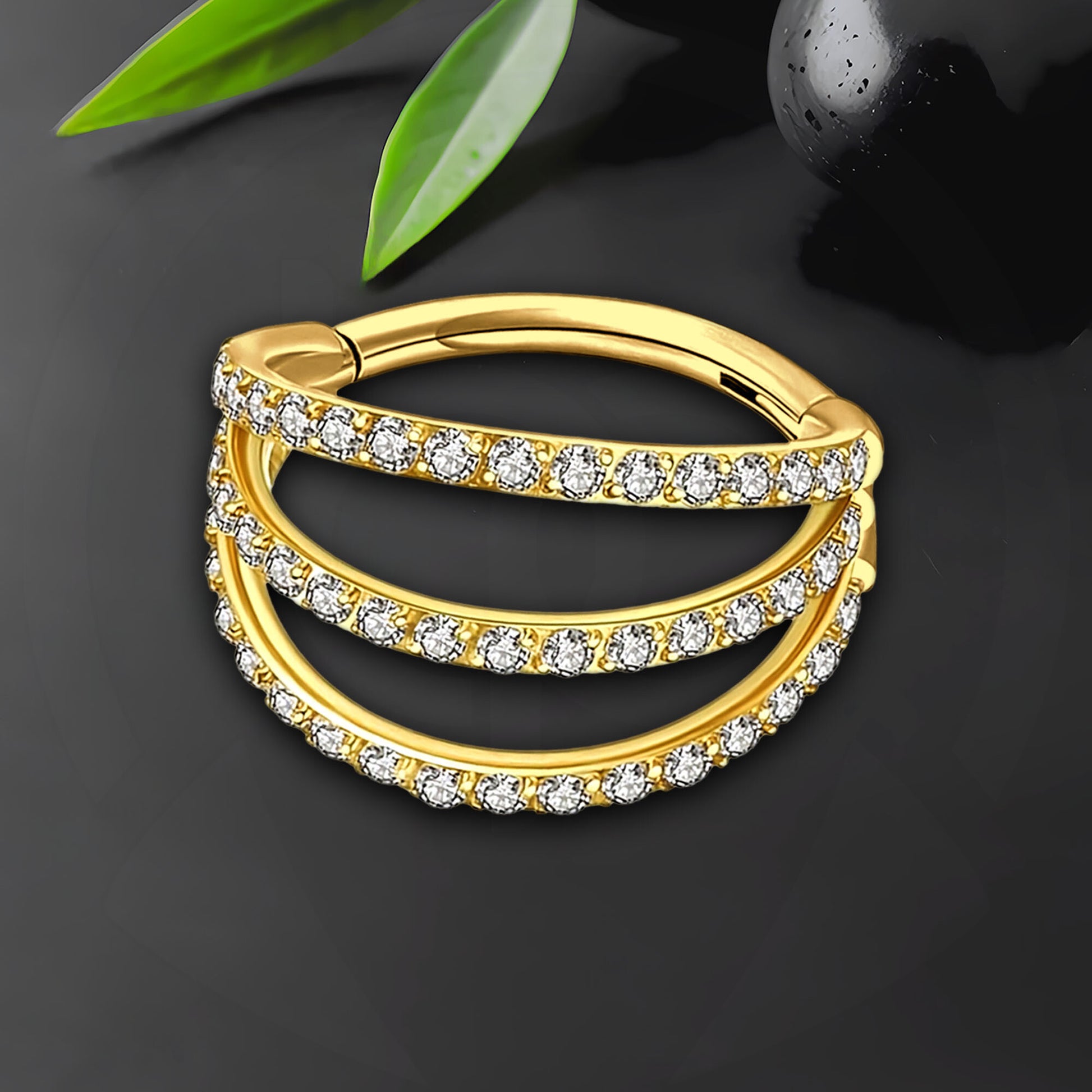 Titanium Clicker Ring in Triple Hoops Style and Zirconia
