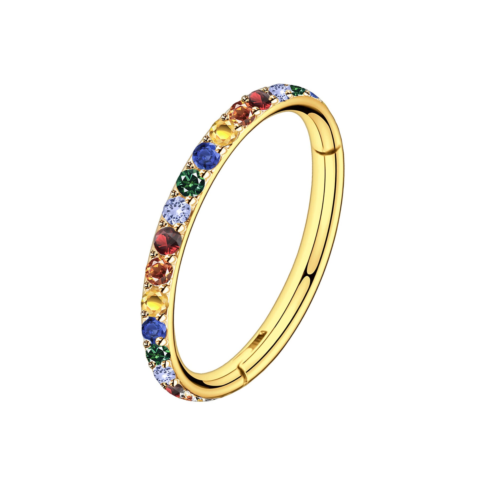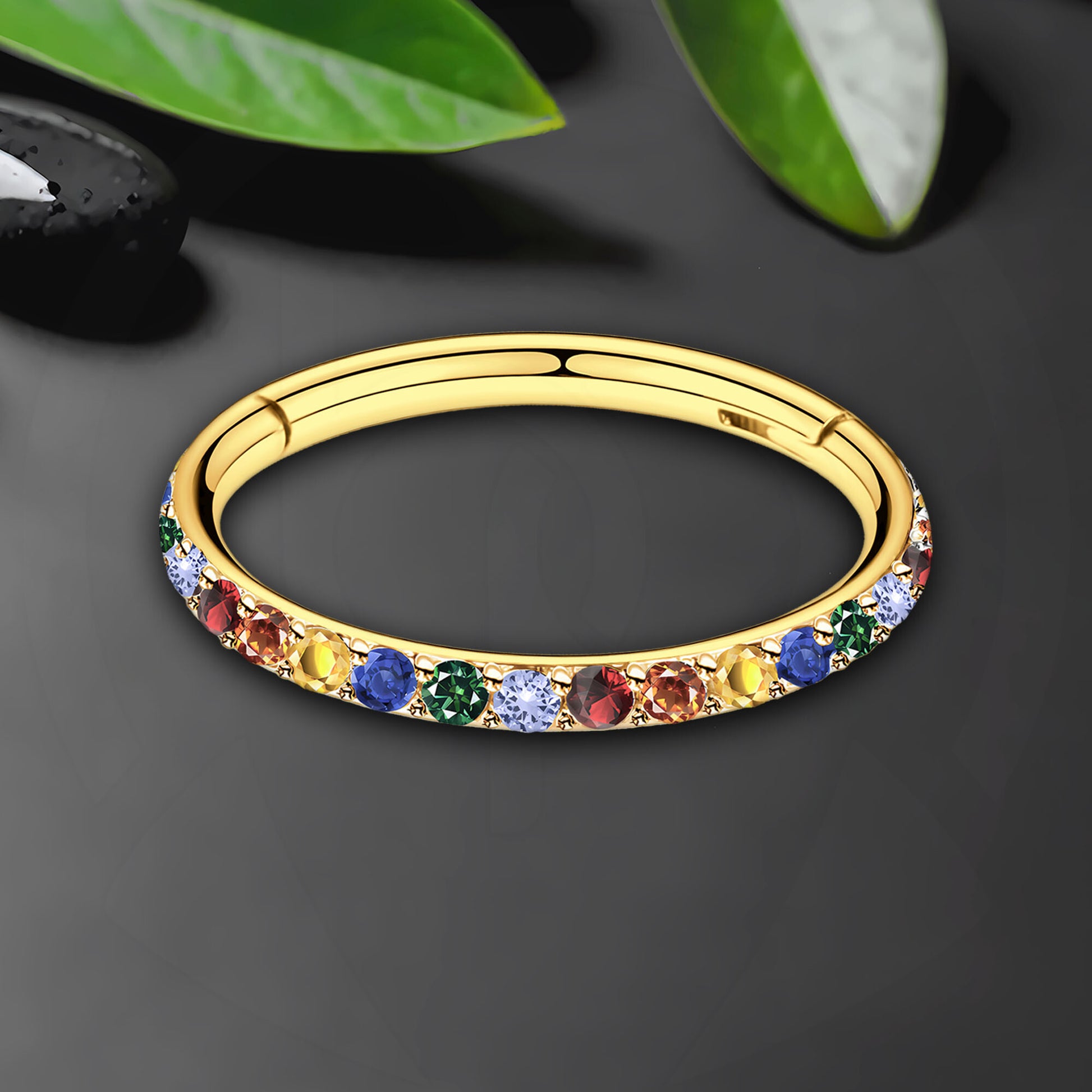 Titanium Clicker Ring in Classic Style with Rainbow Zirconia
