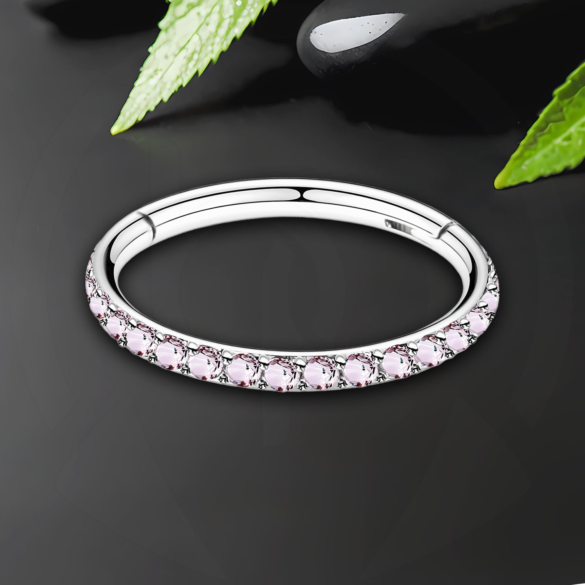 Titanium Clicker Ring in Classic Style with Pink Zirconia