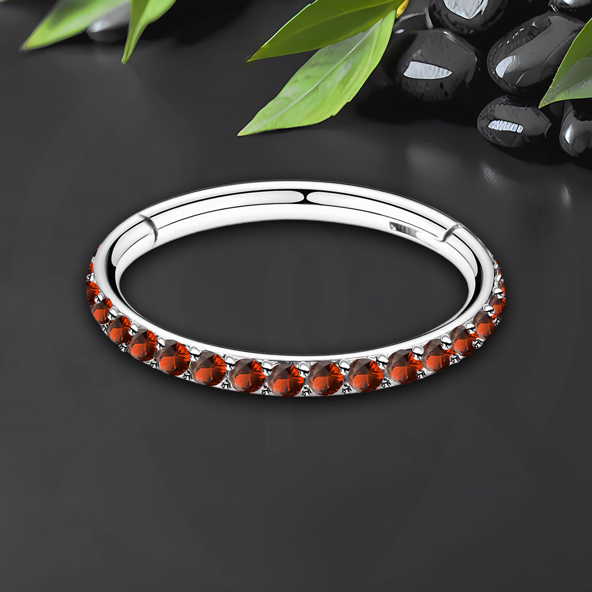 Titanium Clicker Ring in Classic Style with Red Zirconia
