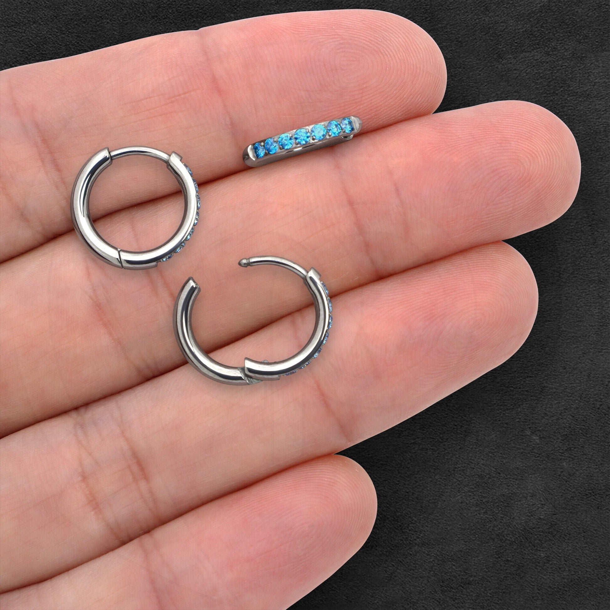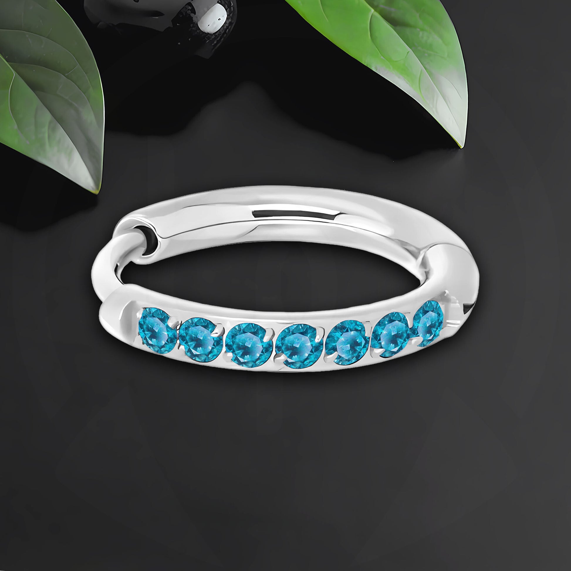 Titanium Clicker Ring in Classic Earring Style and Blue CZ