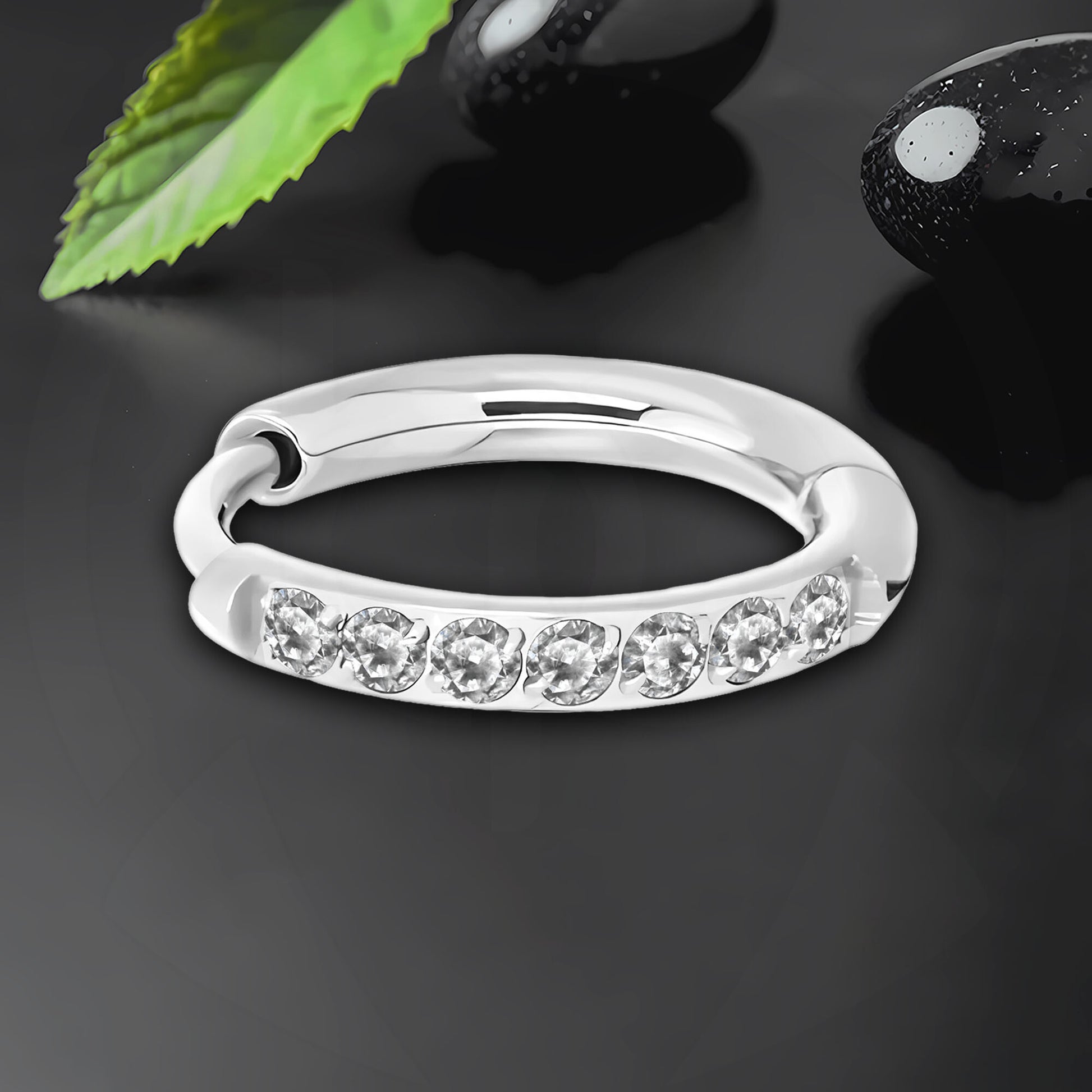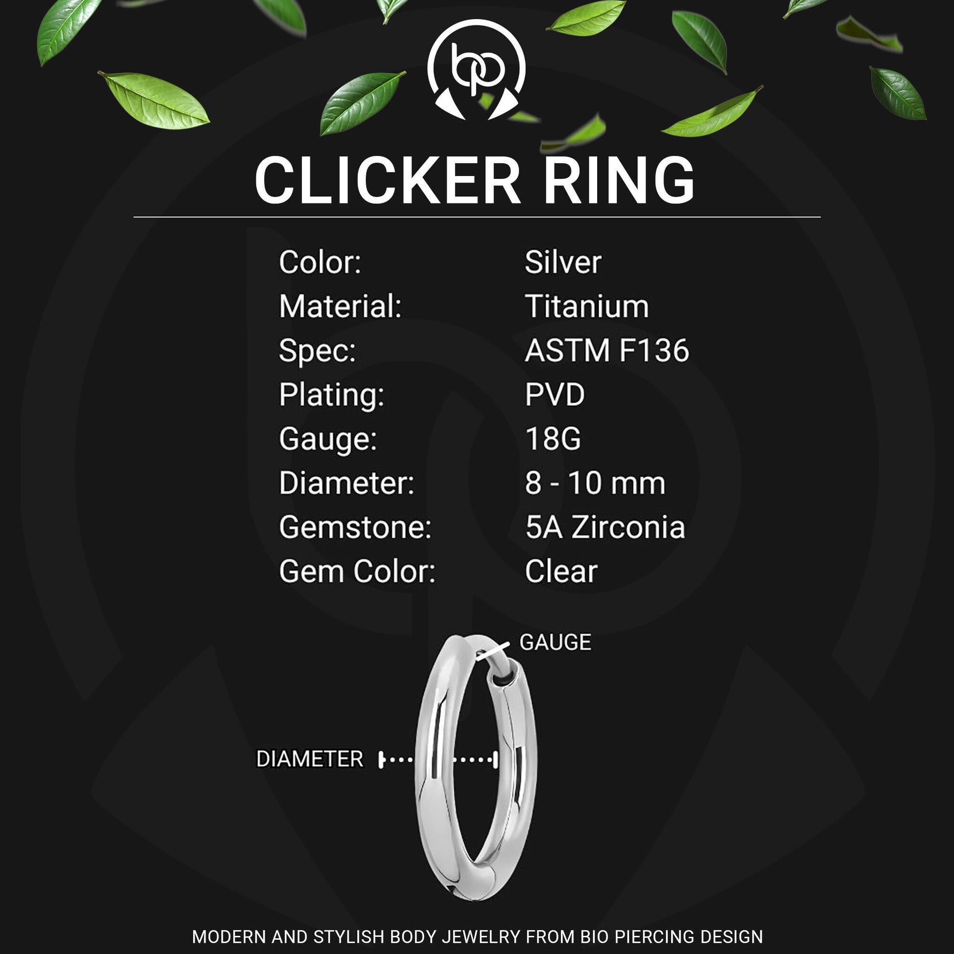 Titanium Clicker Ring in Classic Earring Style and Clear CZ