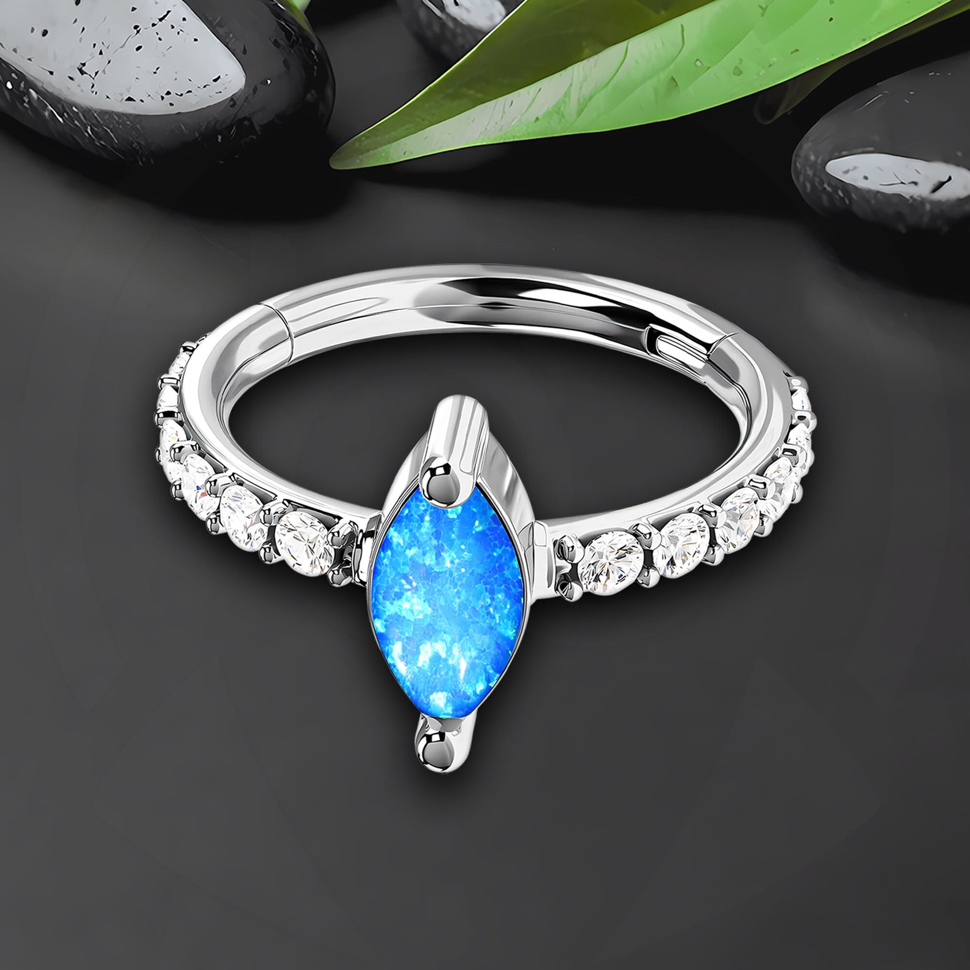 Titanium Clicker Ring with Zirconia and Marquise Blue Opal
