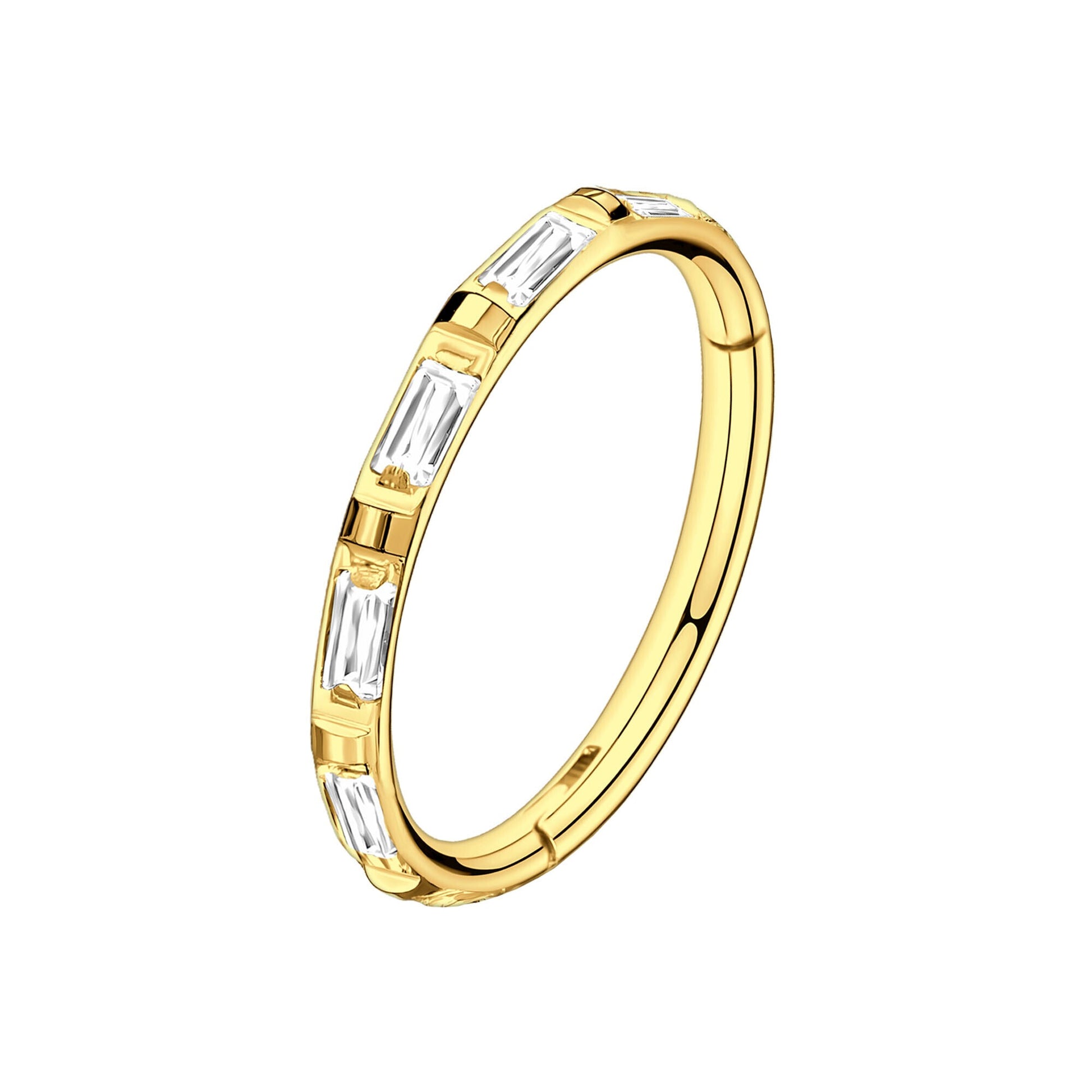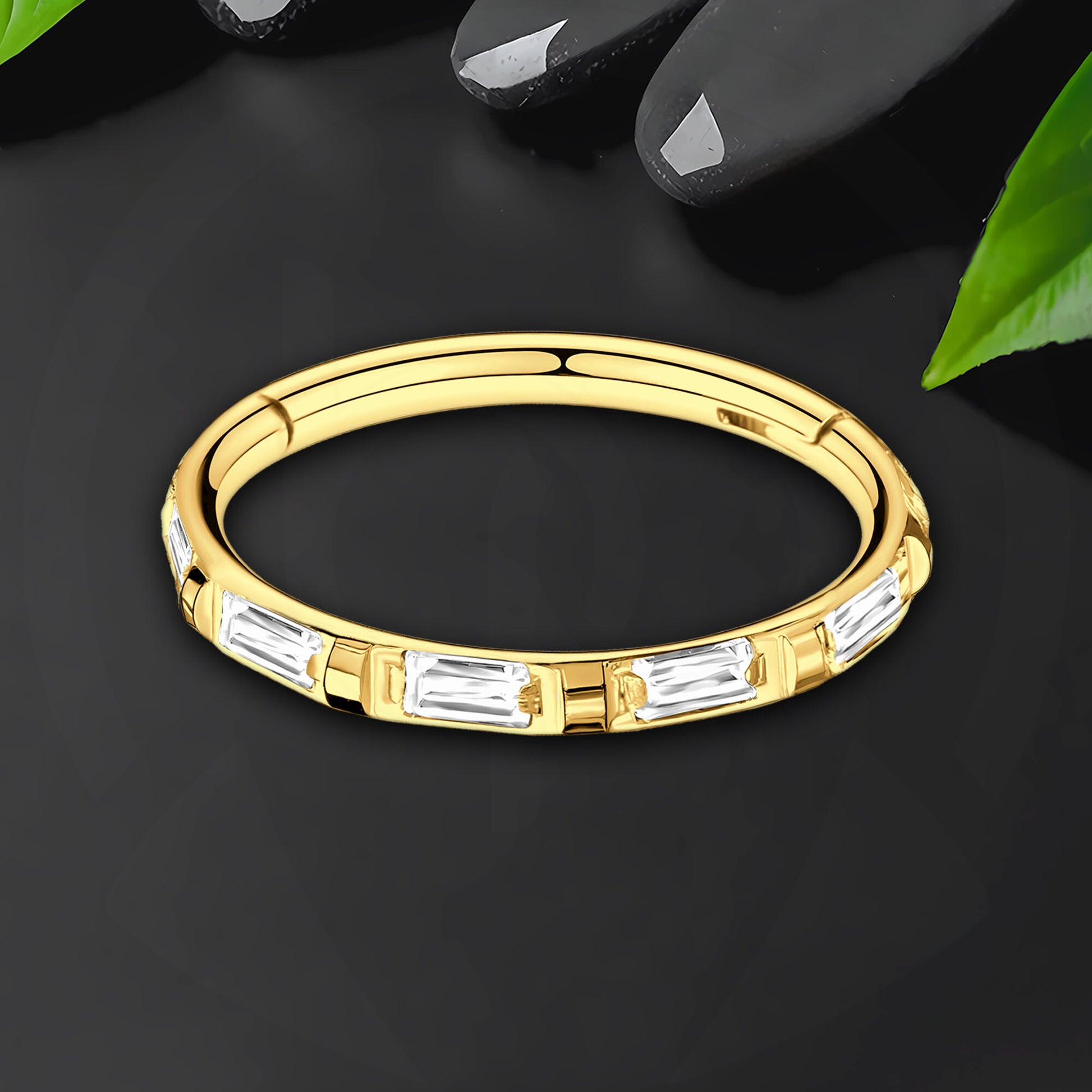 Premium materials like titanium, surgical steel, gold and platinum plating, Swarovski crystals, cubic zirconias, and natural opals.