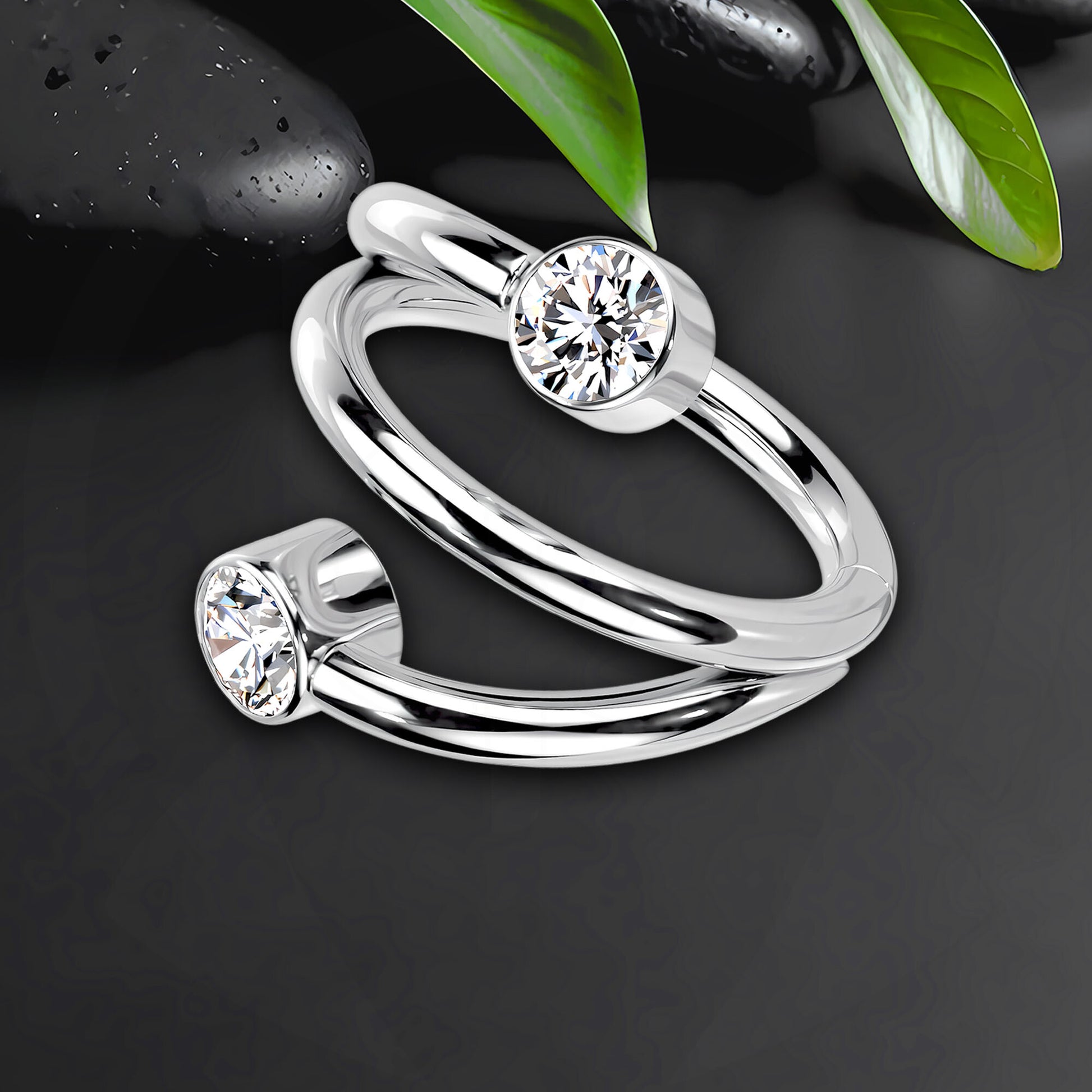 Titanium Clicker Ring in Spiral Shape and Zirconia