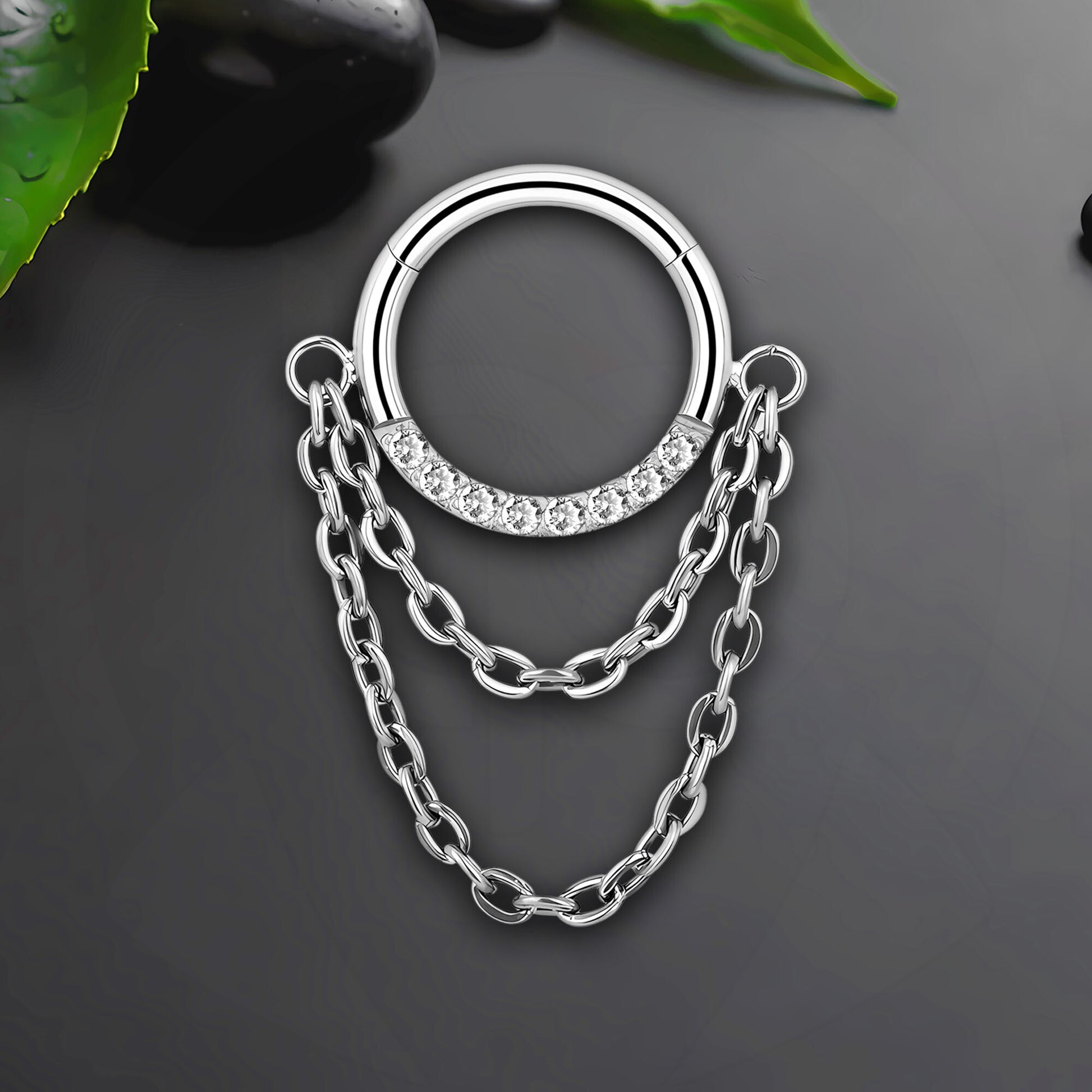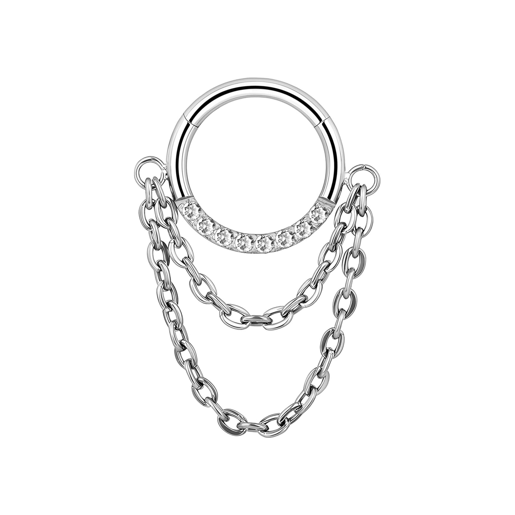 Titanium Clicker Ring with Dual Chains and Zirconia