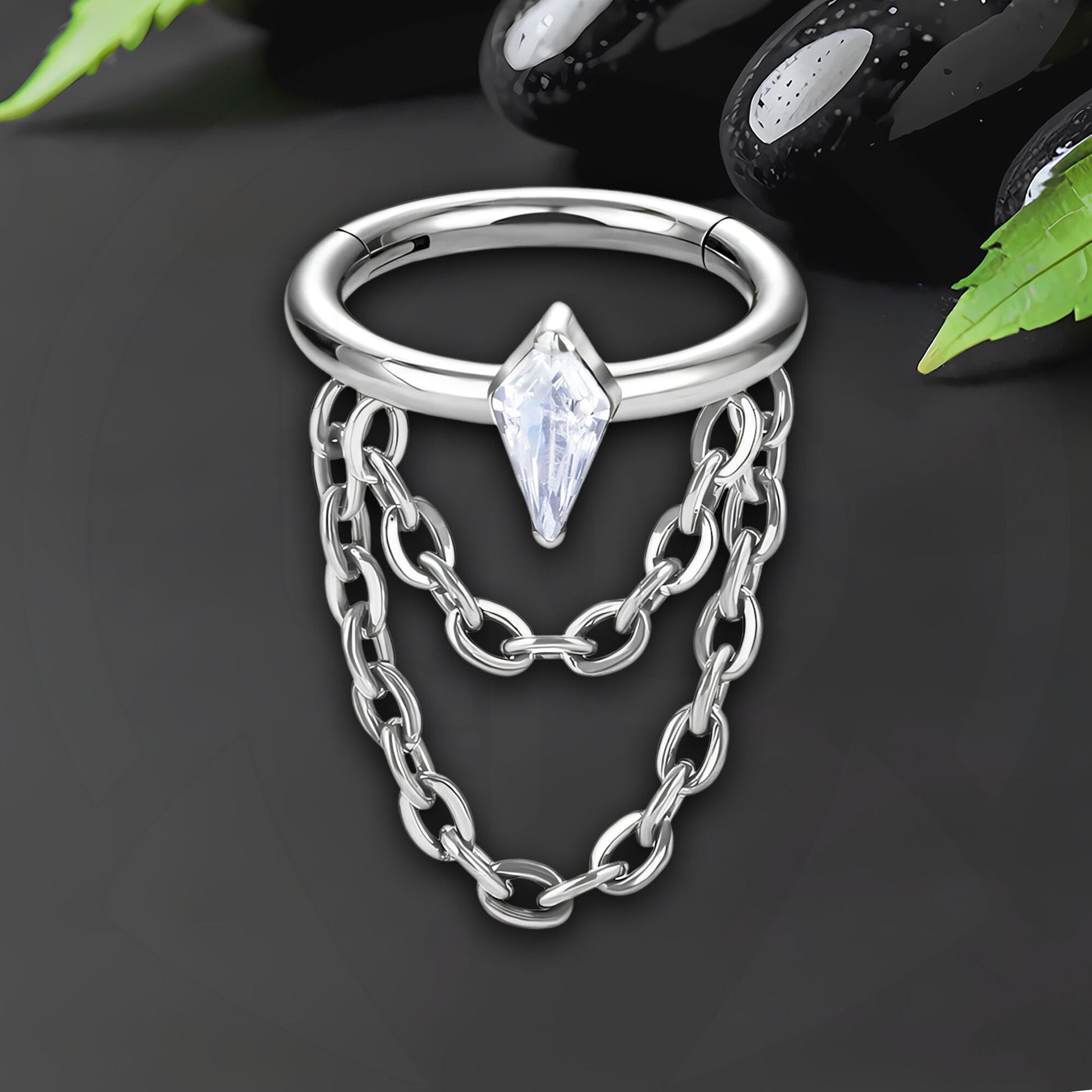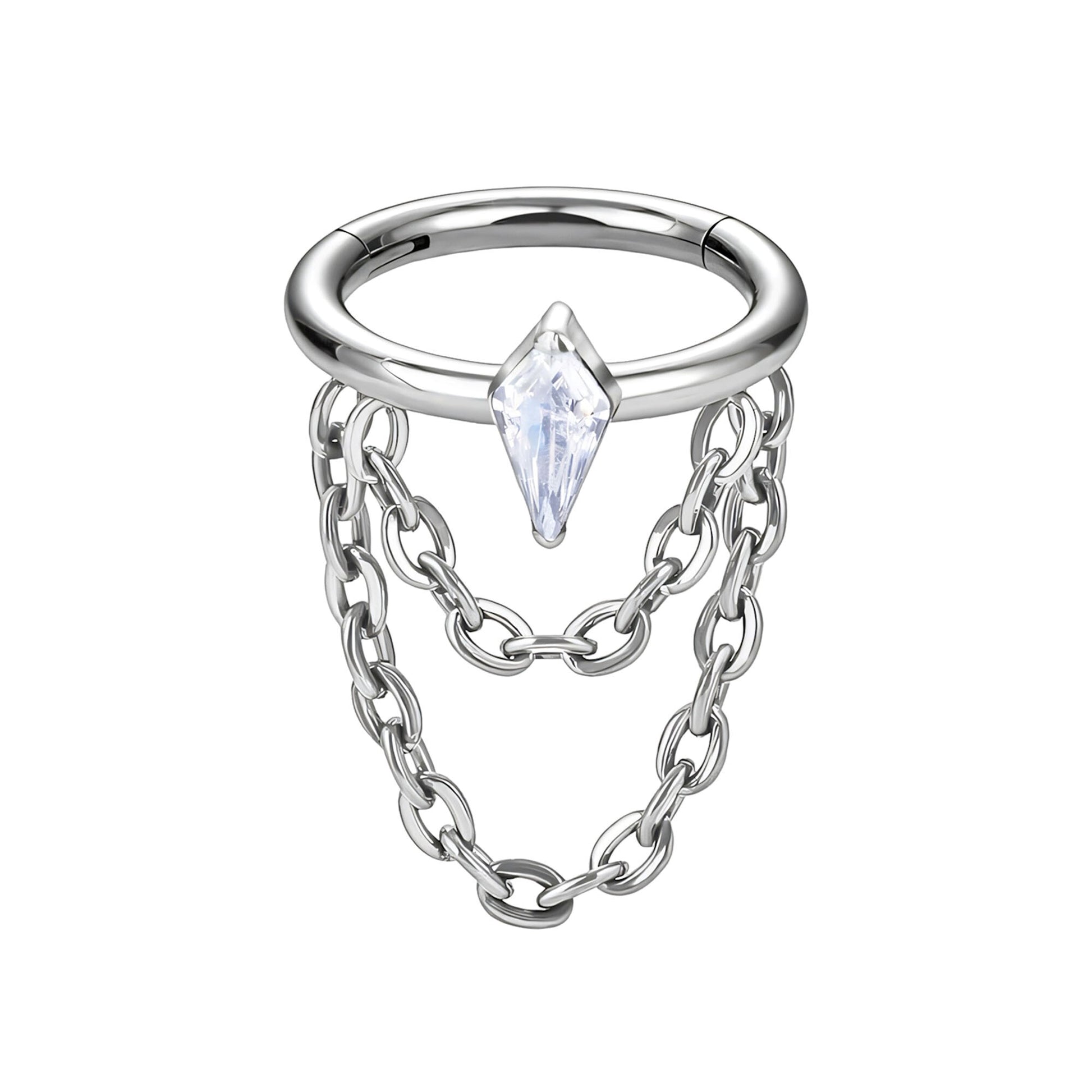 Titanium Clicker Ring with Chains and Crystal Rhombus