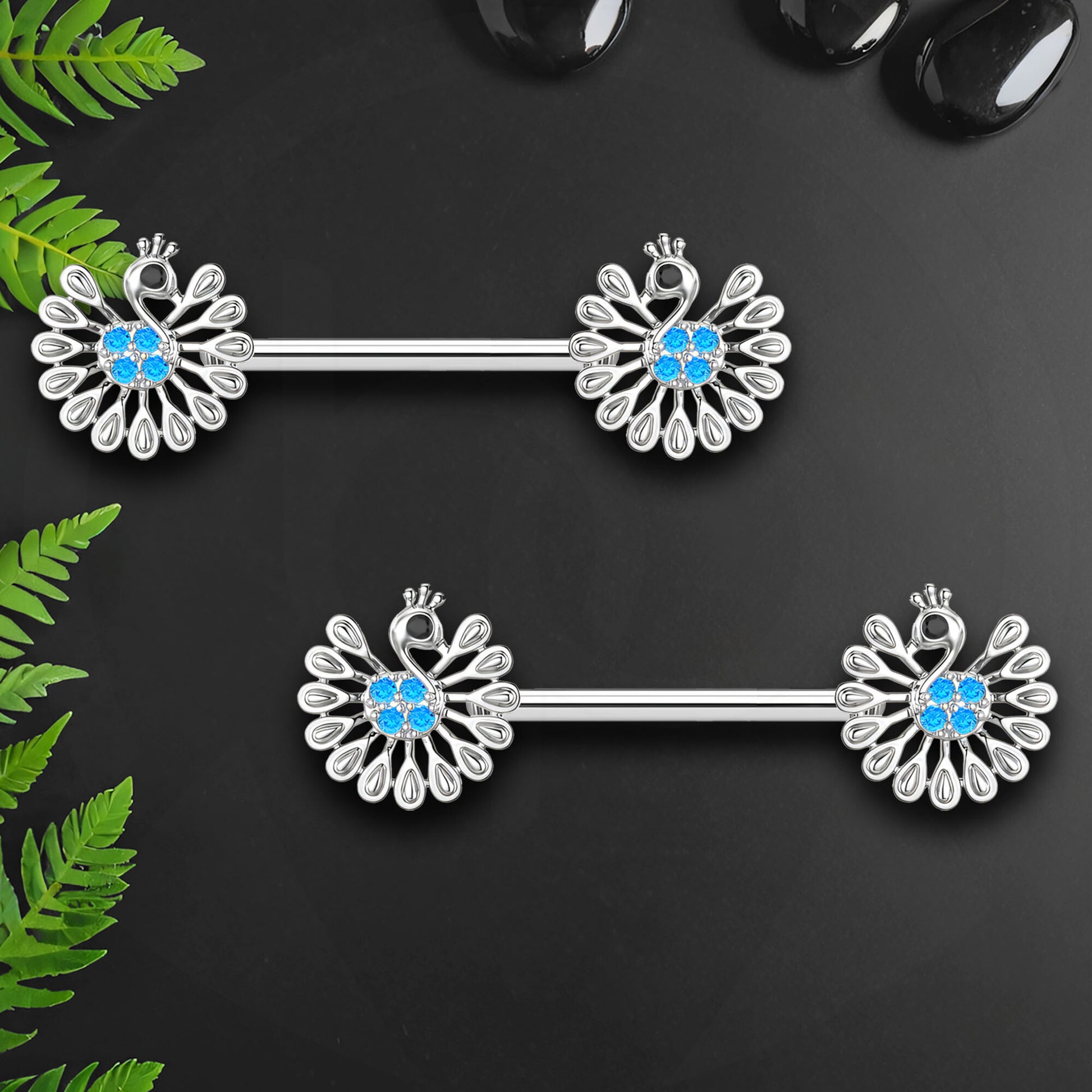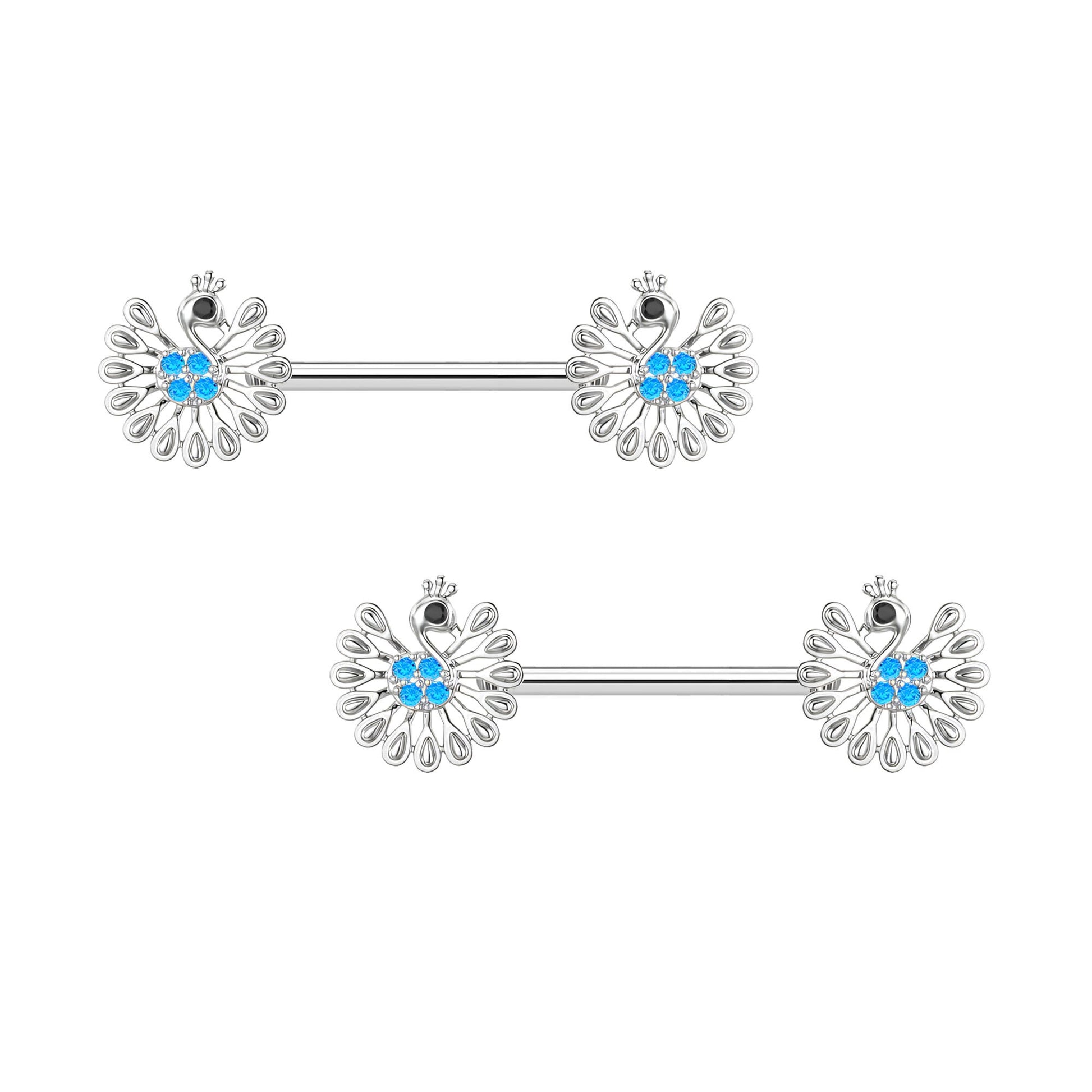 Surgical Steel Nipple Jewelry with Peacock Tail and CZ