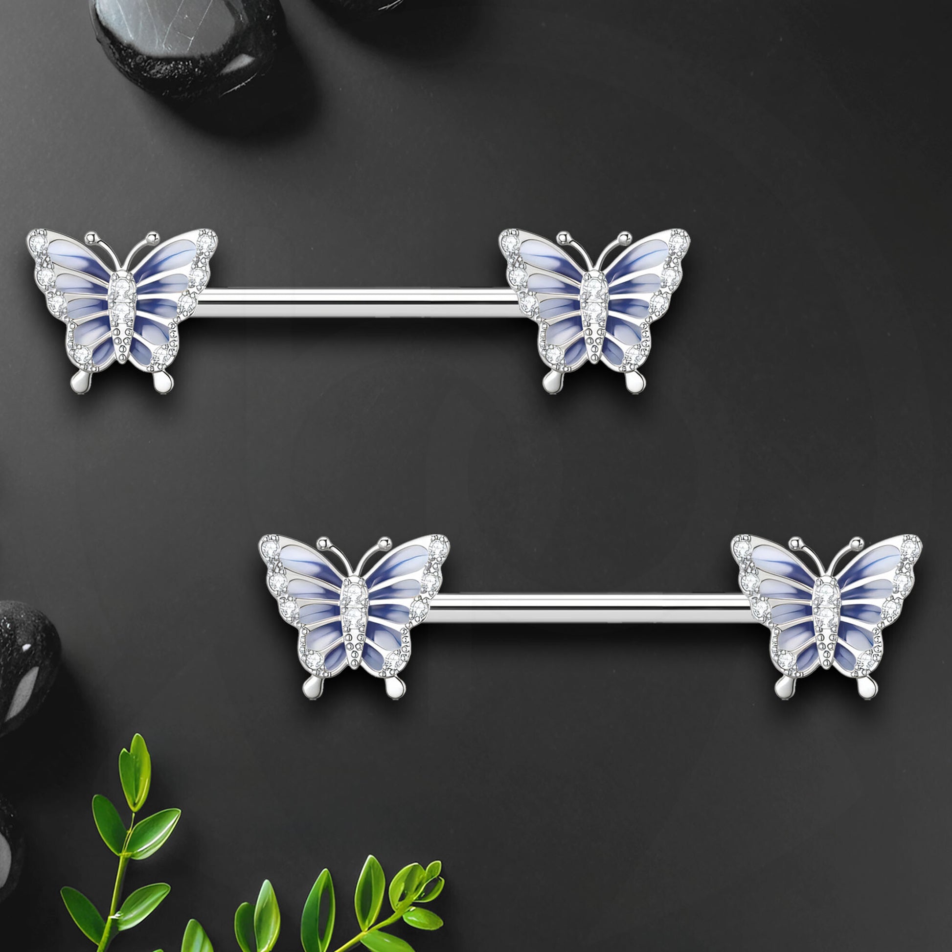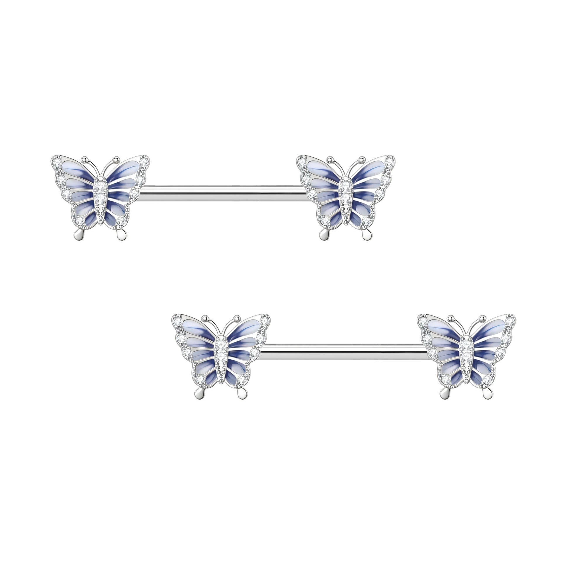 Surgical Steel Nipple Jewelry with Butterflies and Zirconia
