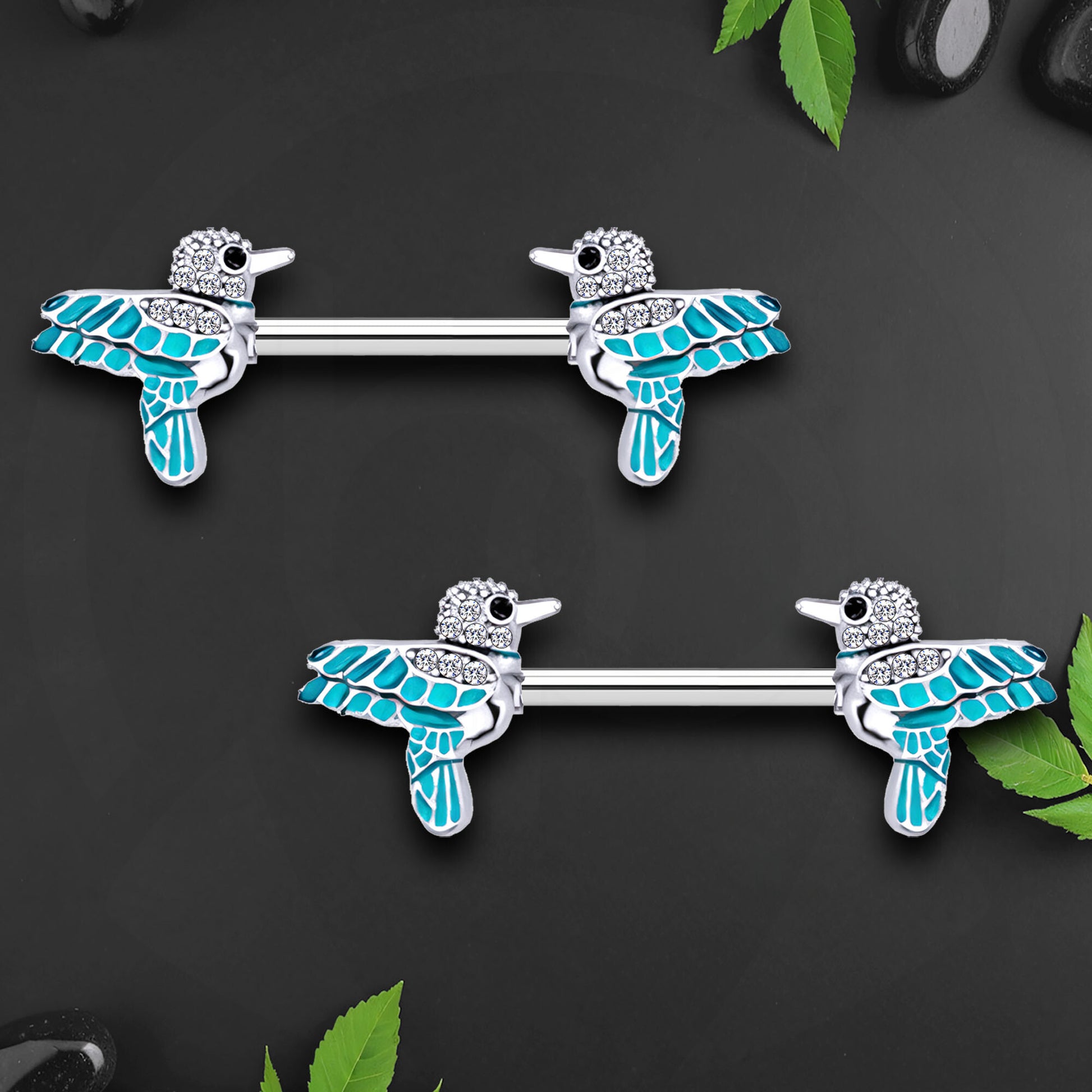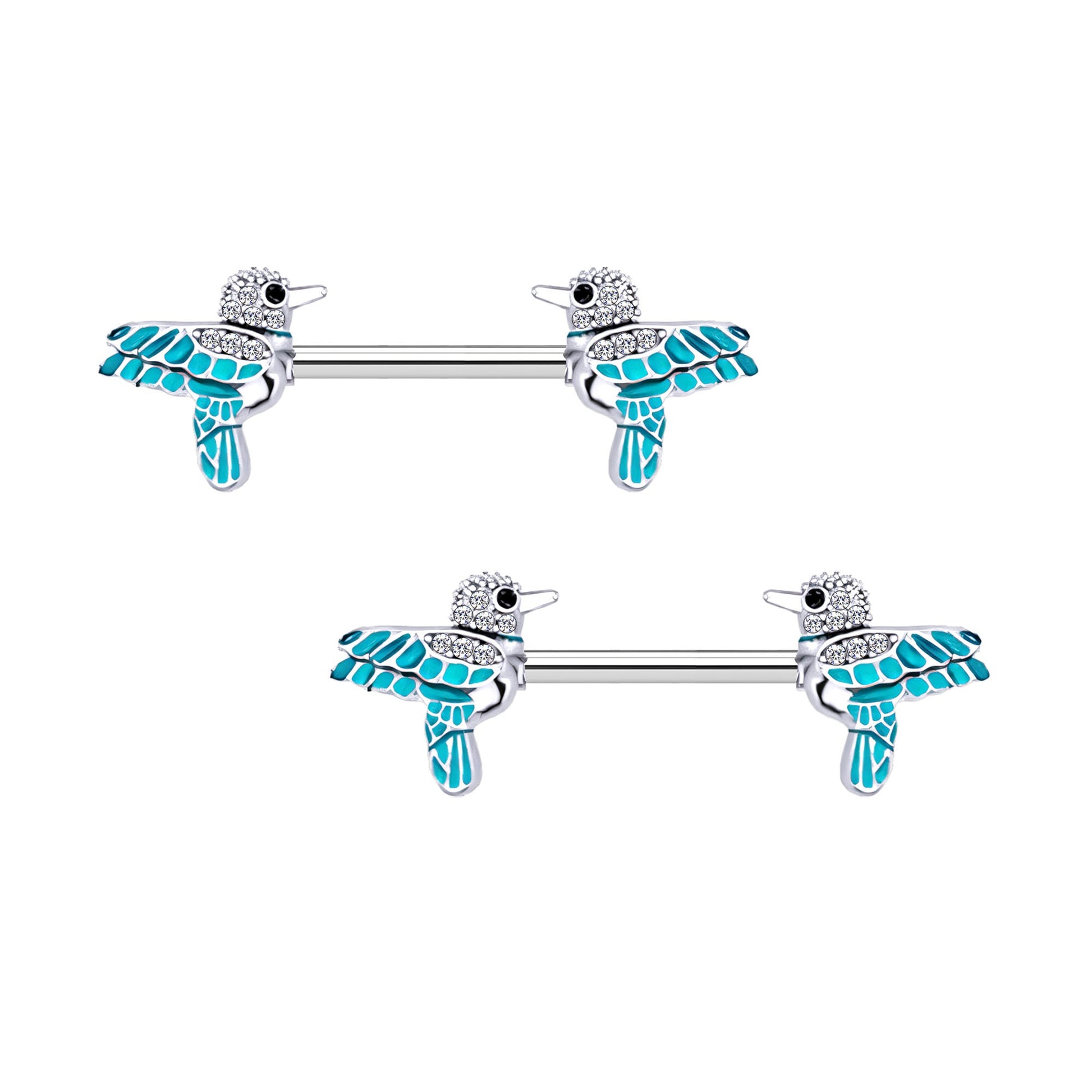 Surgical Steel Nipple Jewelry with Hummingbird and CZ