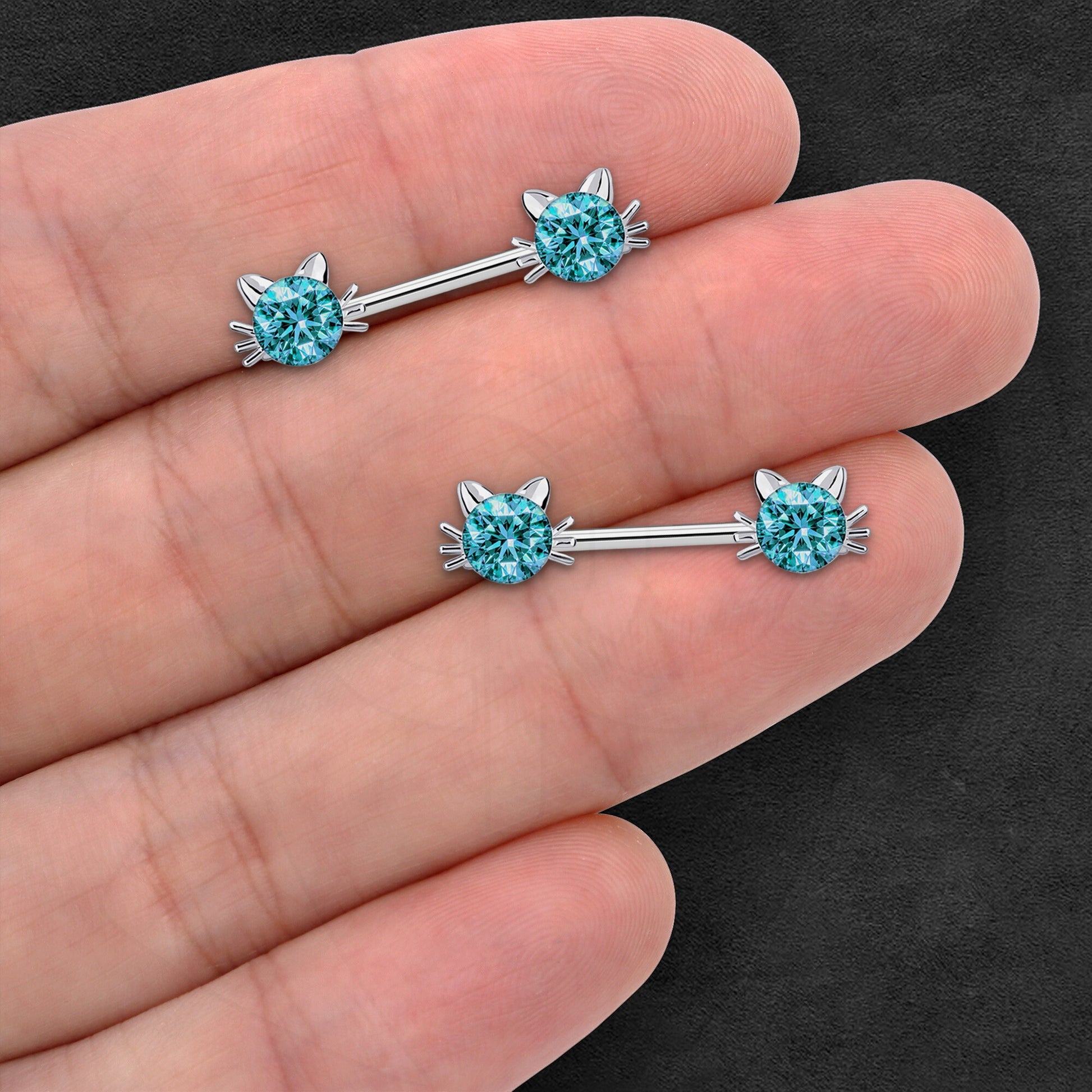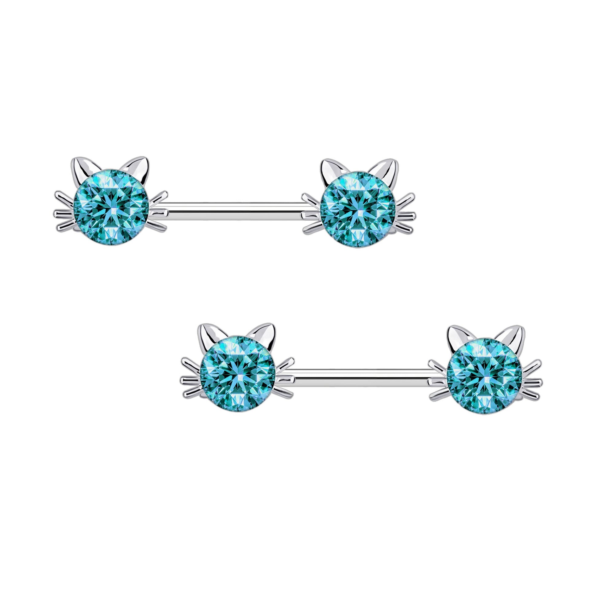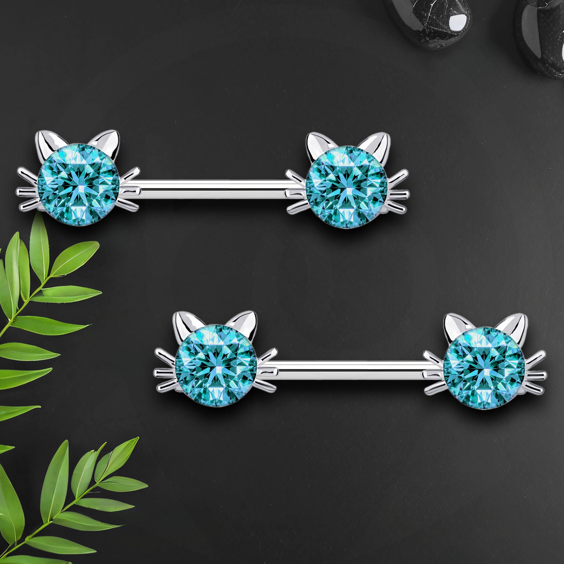 Surgical Steel Nipple Jewelry with Crystal Cat Face
